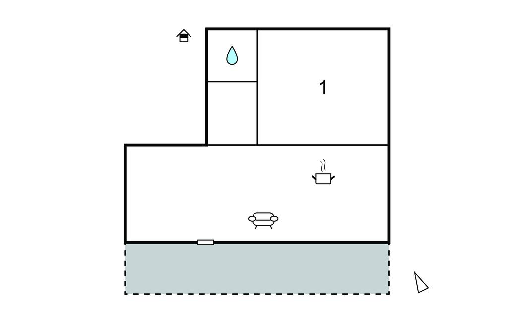 Opholdsstue/køkken 20m2 - 1 Soveplads. (Sofa, madras eller lignende).