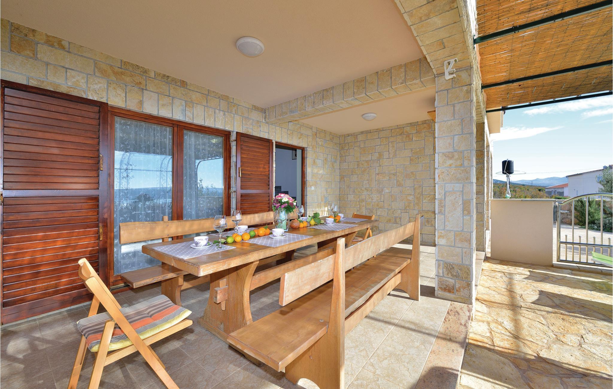 Denne moderne indrettede halvdel af et dobbelthus ligger i Maslenica. Huset strækker sig over stueplan og på første sal, hvor laveste loftshøjde er 140 cm. I stueplan ligger stuen med køkken, samt sove- og badeværelse. På første sal er der yderligere tre soveværelser, et badeværelse og en overdækket balkon med havudsigt. Tag på udflugt i denne skønne region med bl.a. nationalparken Paklenica og naturparken Velebit. Der er 300 m grusvej op til huset. Tag også på udflugt til Zadar, med en skøn havnepromenade hvor I kan se ’Havorgelet’ og ’Solhilsen’. Husets anden halvdel, CDZ763, udlejes også af os.