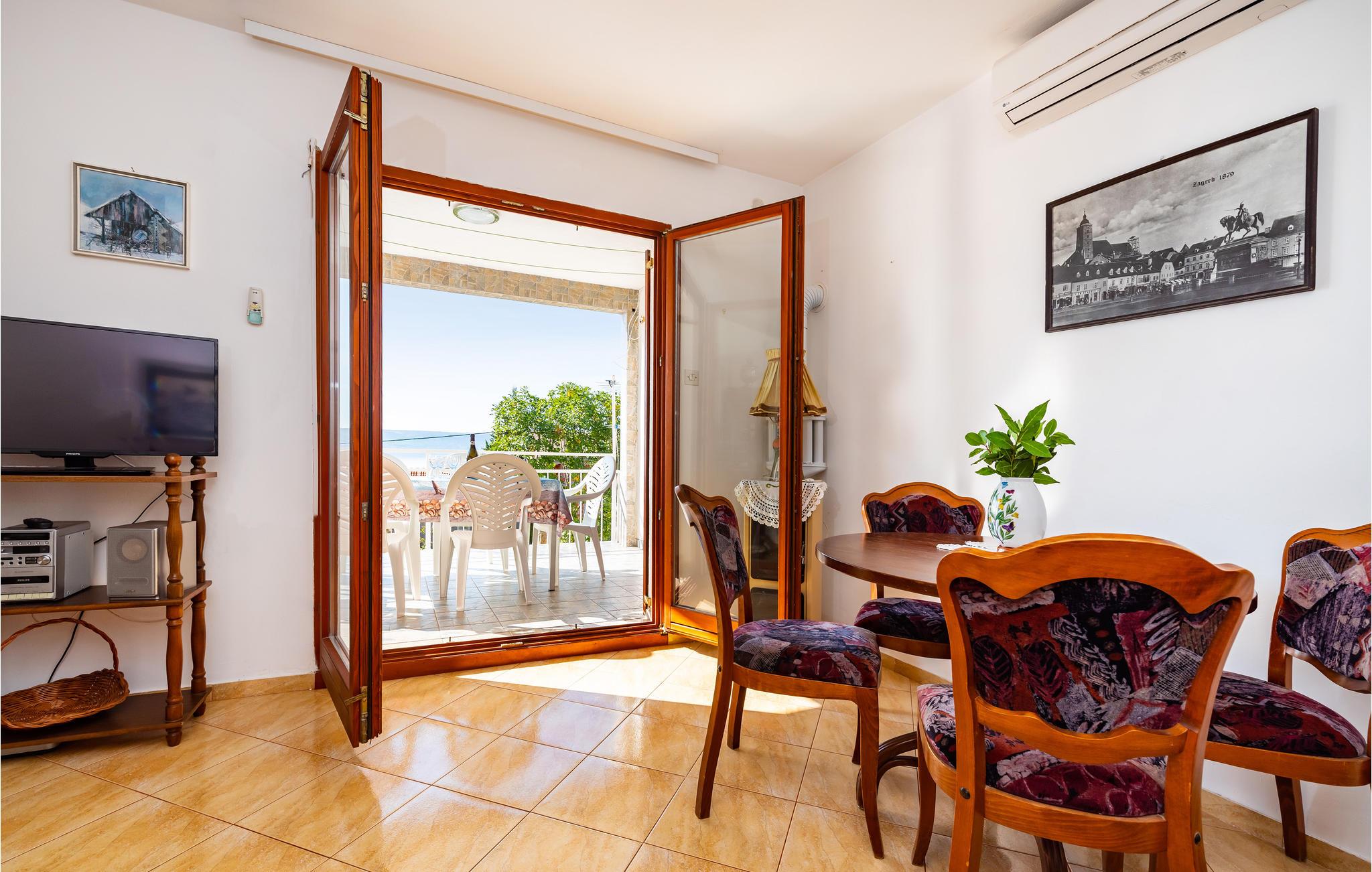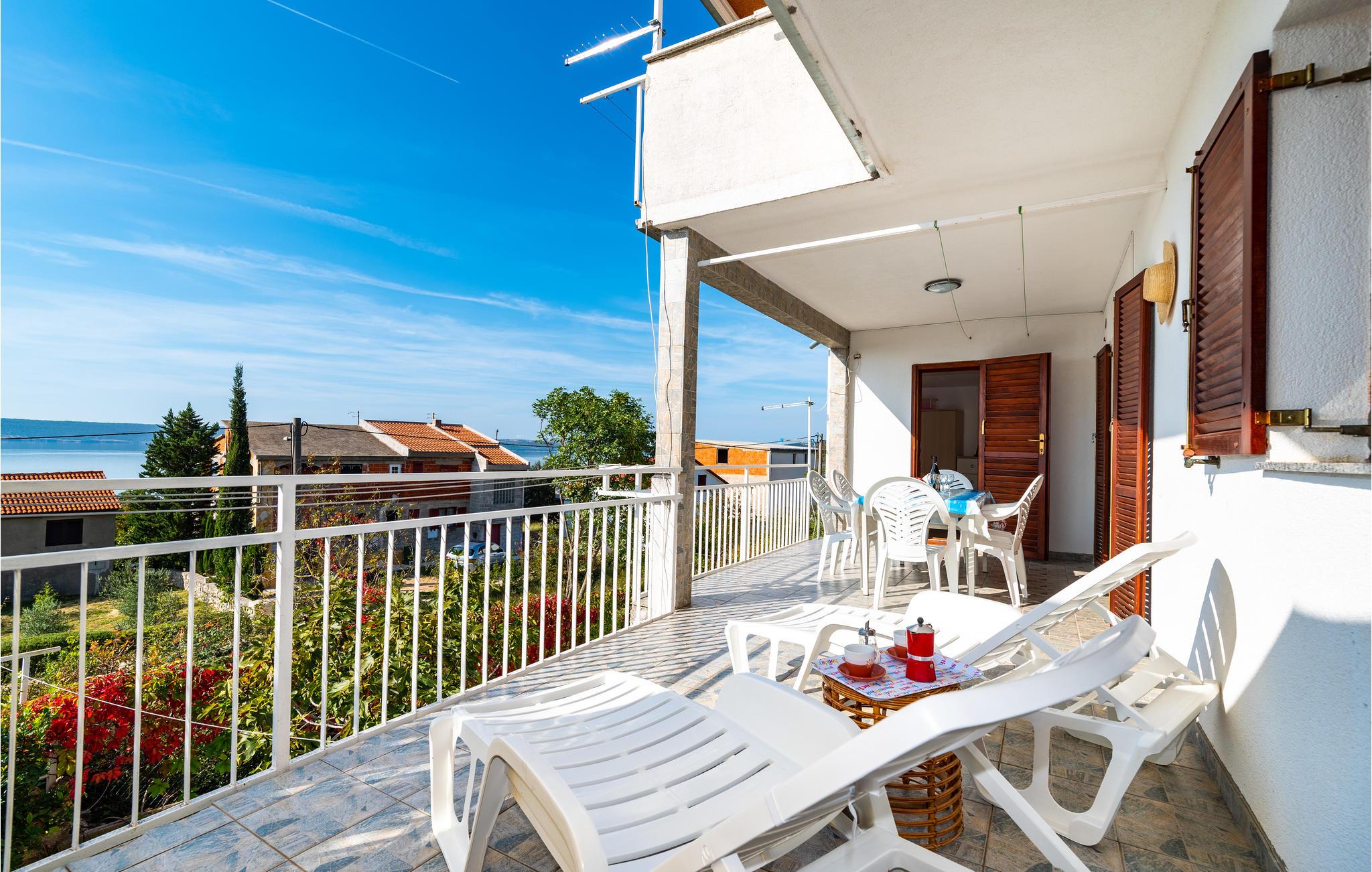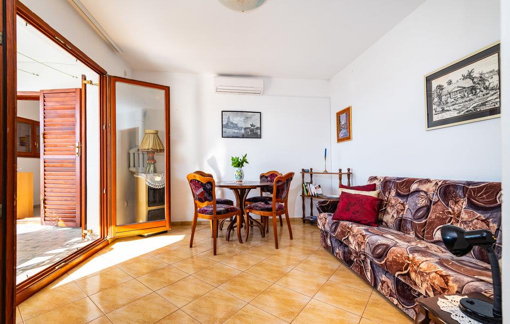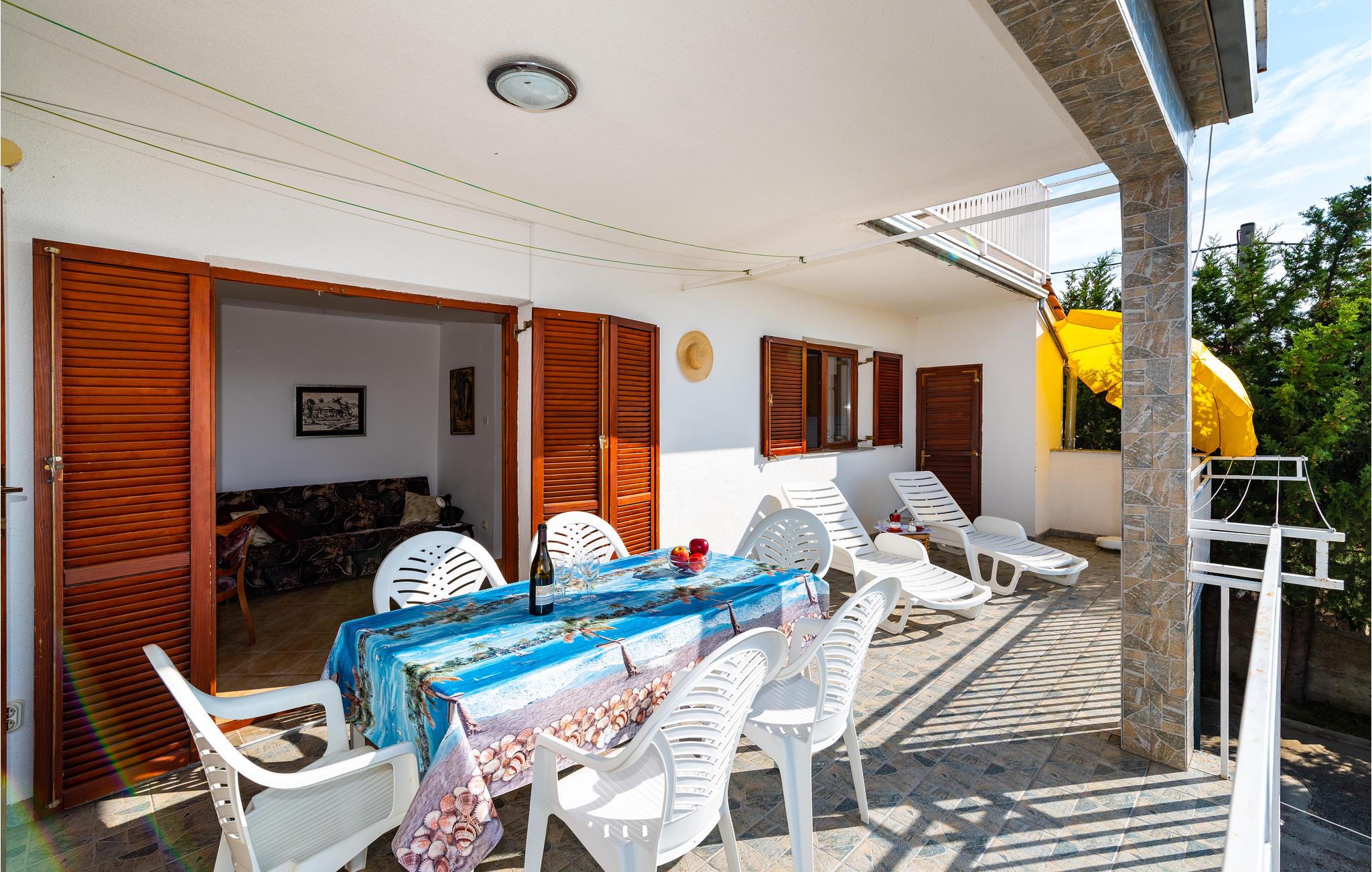 Denne ferielejlighed ligger på første sal i en familieejendom i Maslenica. Den rummer tre soveværelser, det ene har kun indgang fra terrassen. På terrassen er der et ekstra toilet. På den store overdækkede terrasse kan I nyde livet sammen om aftenen og spise maden helt frisk fra grillen der står i haven til fælles brug. Langt fra travlheden i byen kan du nyde fred og afsondrethed her.