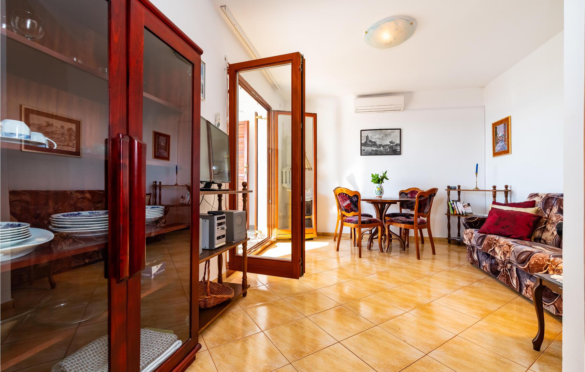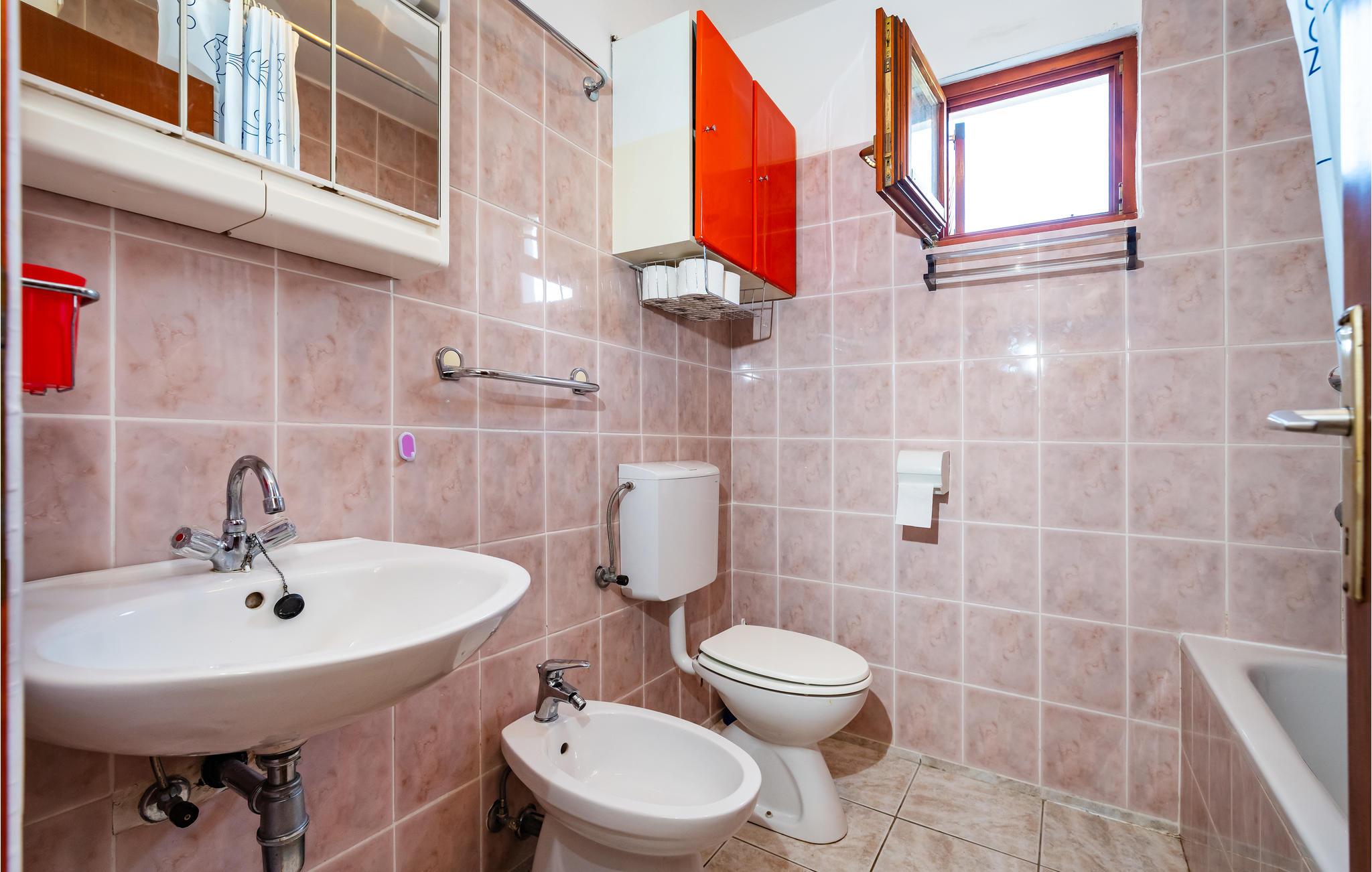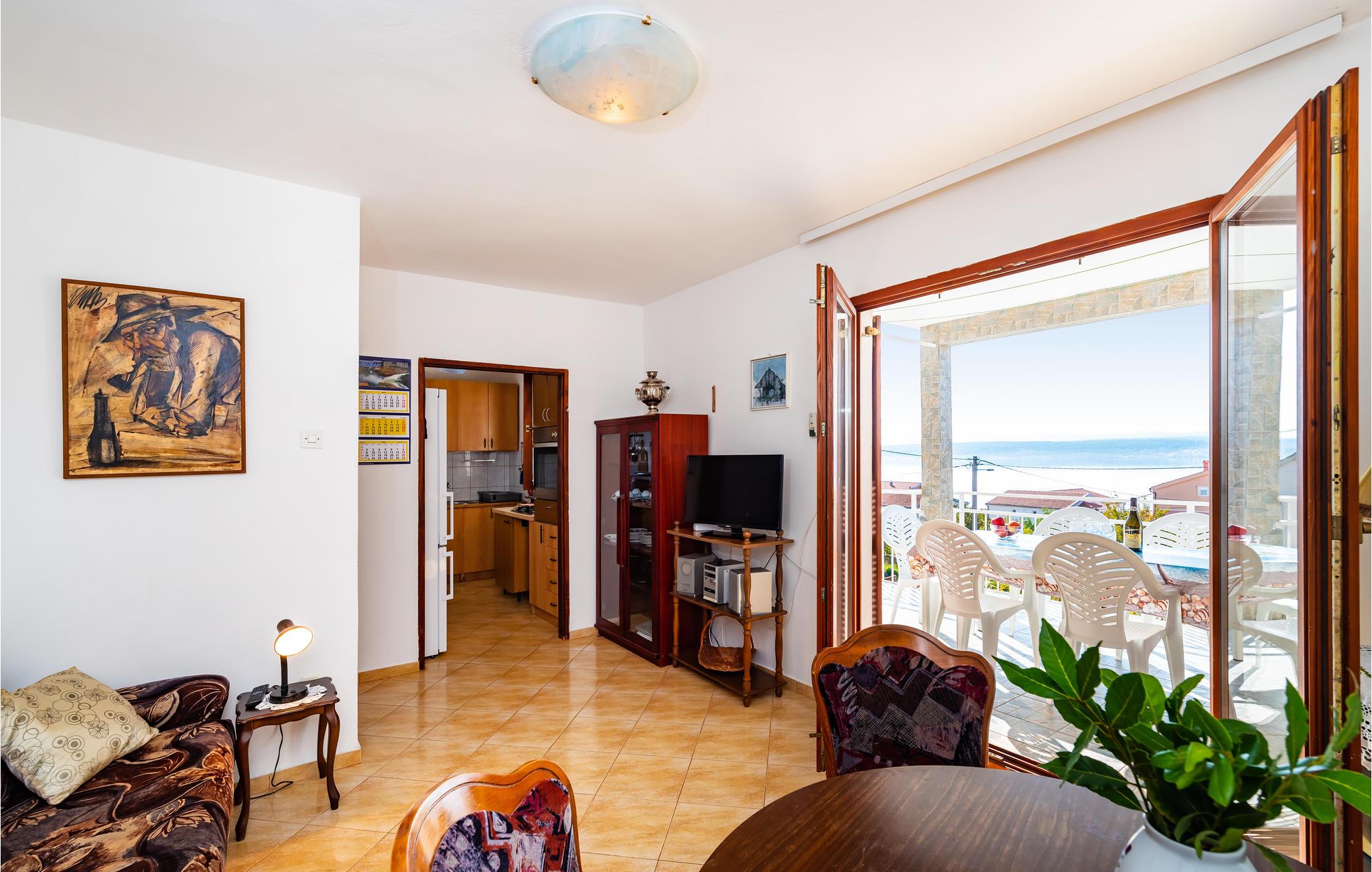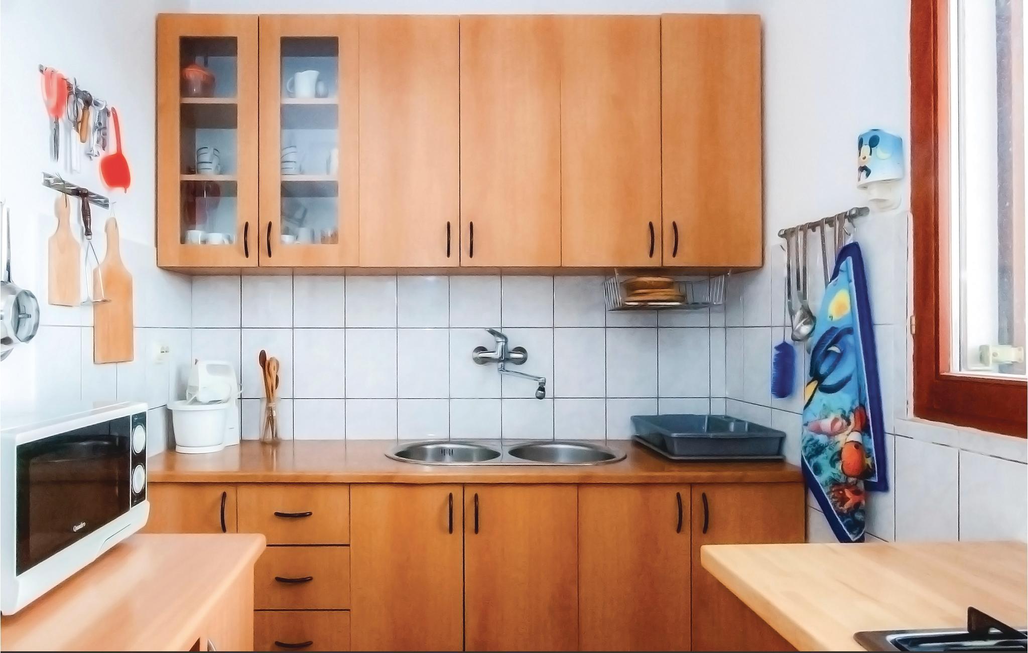Denne ferielejlighed ligger på første sal i en familieejendom i Maslenica. Den rummer tre soveværelser, det ene har kun indgang fra terrassen. På terrassen er der et ekstra toilet. På den store overdækkede terrasse kan I nyde livet sammen om aftenen og spise maden helt frisk fra grillen der står i haven til fælles brug. Langt fra travlheden i byen kan du nyde fred og afsondrethed her.