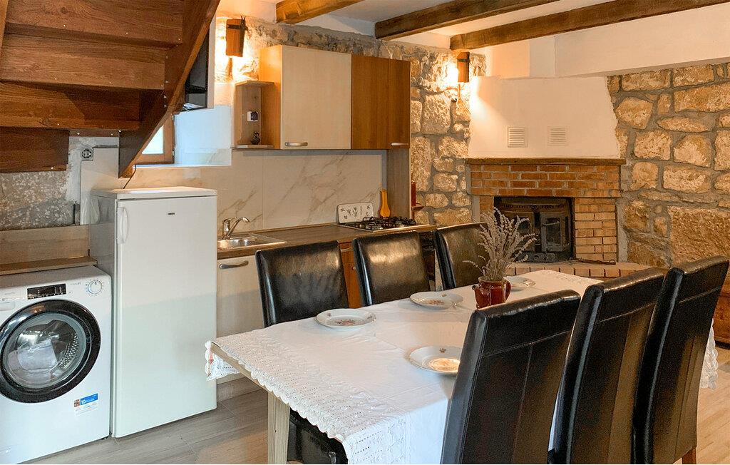 Skjult i det idylliske landskab i det nordlige Dalmatien venter dette traditionelle stenhus på jer med sine rustikke, men stilfulde møbler. Høje træbjælkelofter, åbne pejse og varme farver skaber en hyggelig atmosfære. Det åbne køkken og den indbydende opholdsstue giver de optimale rammer for afslappende aftener.