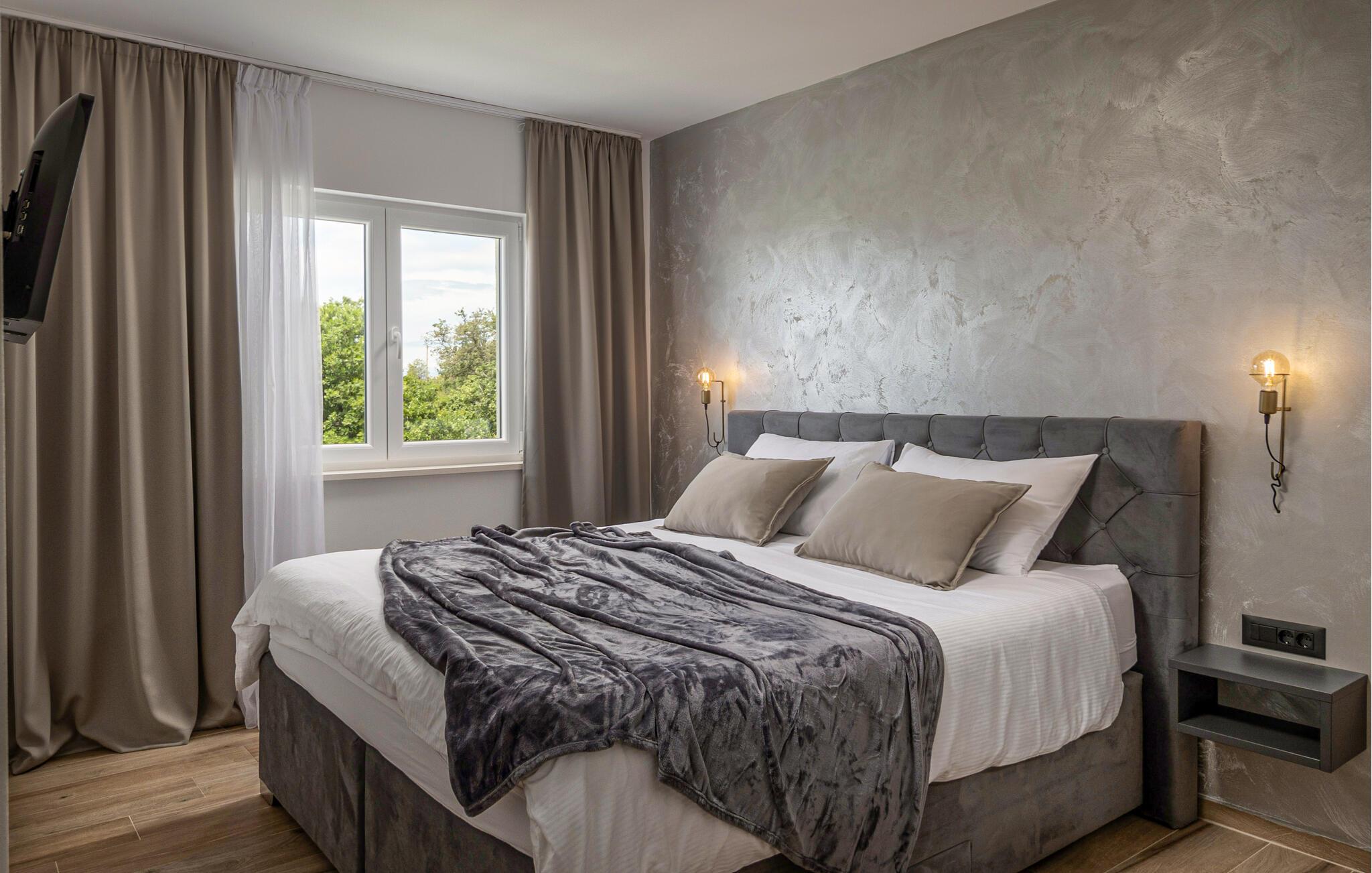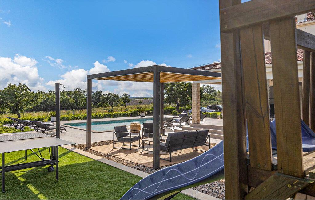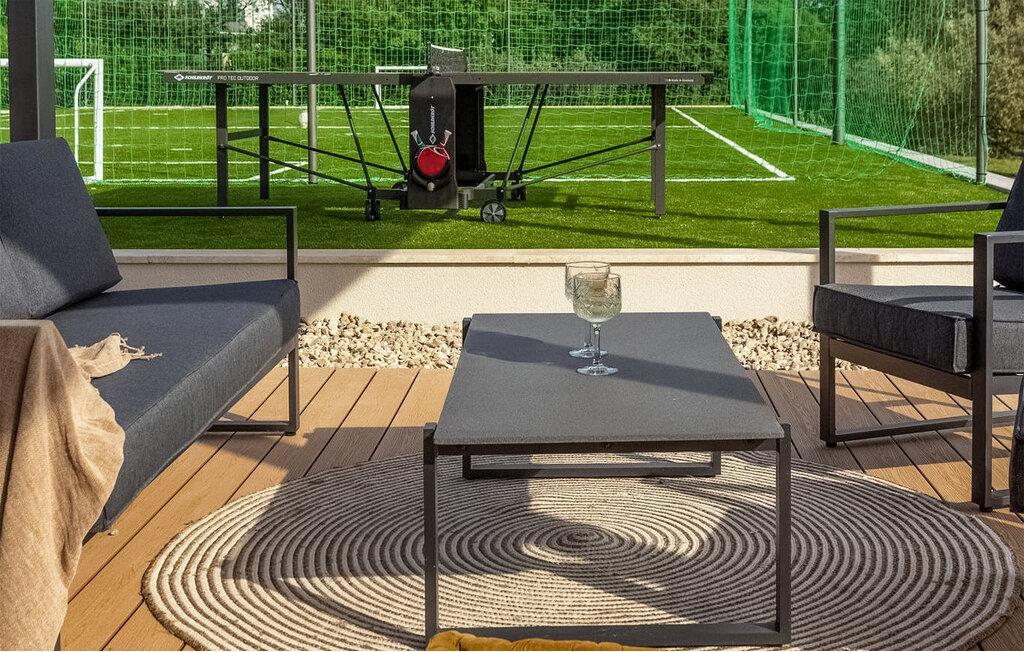 Tilbring en afslappende ferie i denne luksuriøse villa med swimmingpool og sportsplads. Den elegante Villa Lumi, kun få kilometer fra Zadar, tilbyder alt hvad I behøver for en afslappende familieferie. Den moderne designede stueetage kombinerer et fuldt udstyret køkken, en hyggelig stue og en spisestue. Kom sammen som familie for at lave mad, spise og spille spil. Et underholdningsrum med billard, bordfodbold, dart og videospil sikrer sjov for alle aldre. De rummelige soveværelser ovenpå lægger op til at slappe af. Det rummelige udendørsområde har en opvarmet pool omgivet af liggestole, en fodboldbane, et bordtennisbord og en legeplads. Forkæl jer selv med nogle afslappende timer eller brænd noget energi af med et spil. Aftenerne kan dejligt tilbringes på terrassen med en kulgrill. Murvica er ideelt placeret til udflugter til nationalparkerne Paklenica, Kornati og Plitvicesøerne. Oplev kulturelle højdepunkter i Zadar og nyd mad af høj kvalitet. Den nærliggende by Nin tilbyder sandstrande, helende mudder og et windsurfingcenter. Villa Lumi kombinerer fred og privatliv med nærhed til imponerende seværdigheder og strande. Bemærk venligst: Ejendommen accepterer ikke ungdomsgrupper under 30 år eller polterabender. Bookinger fra sådanne grupper vil blive afvist, selv ved ankomst eller under opholdet, uden refusion.