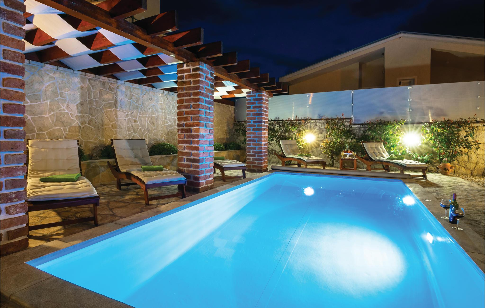 Dette feriehus med havudsigt i den maleriske kystby Novigrad er blevet indrettet med meget kærlighed for detaljer. Huset er inddelt i tre etager med indertrappe. Soveværelse 1 kommer I kun til udefra, og det er adskilt fra de resterende værelser. Hop i den forfriskende pool, der sørger for afkøling på varme sommerdage, og det overdækkede udendørsområde lægger op til fælles måltider i det fri. Besøg den historiske by Zadar (ca. 30 km) eller oplev spænding under en rafting-tur på floden Zrmanja. Tilbring en uforglemmelig tid i Dalmatien.