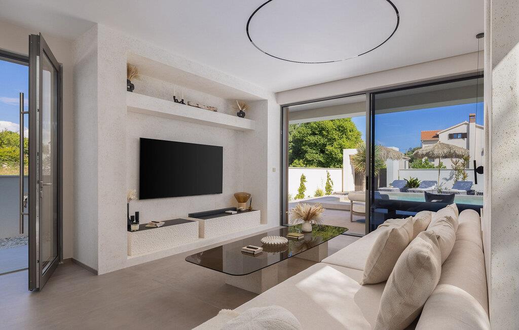 Tilbring jeres velfortjente ferie i dette stilfulde feriehus med privat pool. Rene linjer og tidløs elegance mødes i dette hus. Hyg jer sammen i de behagelige sofaer, nyd et glas vin, eller slap af med jeres yndlings-tv-program. At lave mad sammen i det moderne designerkøkken er dobbelt så sjovt, perfekt til hyggelige aftener med familie eller venner. For motion og velvære er der et fitnessrum og en sauna til rådighed. Start dagen med en kop kaffe på den solrige terrasse og nyd omgivelsernes ro. En dukkert i den forfriskende pool vil genoplade jeres batterier. Bagefter inviterer de komfortable liggestole jer til at læse, døse eller drømme. Afslut dagen med at slappe af med en grill og lav planer for de kommende feriedage. Den nærliggende strand er ideel til svømning, solbadning og afslapning. Oplev den fantastiske kystlinje på en kajak- eller bådtur og find skjulte bugter. Besøg den nærliggende gamle bydel i Zadar med højdepunkter som Havorglet og lysshowet "Hilsen til solen". Naturelskere vil få valuta for pengene med udflugter til nationalparkerne Plitvice, Kornati eller Paklenica.