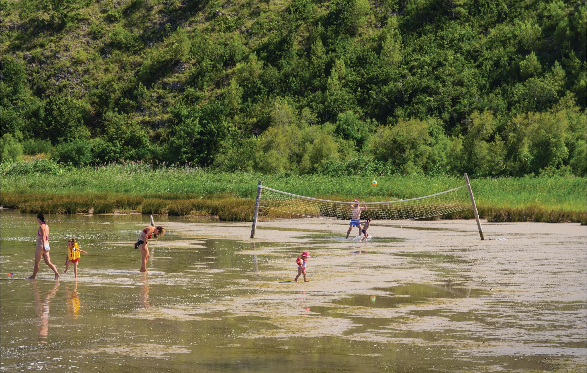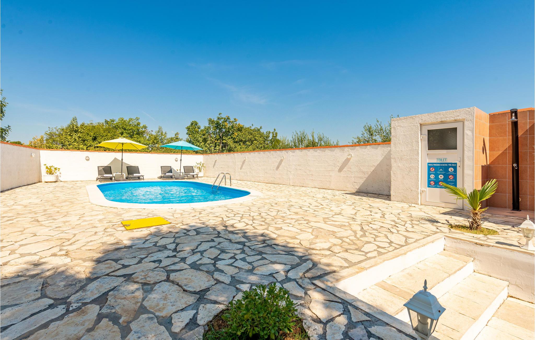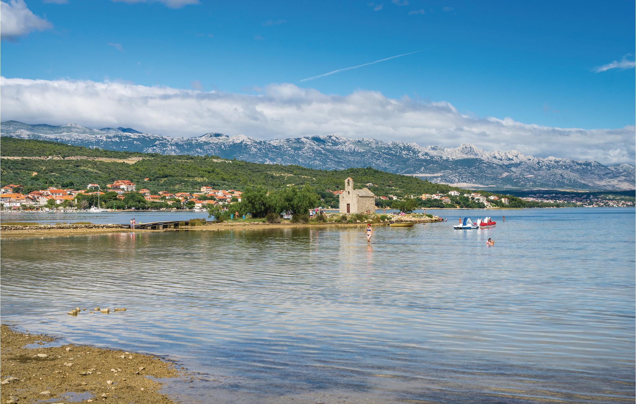 I dette feriehus er der en et-værelses og en to-værelses lejlighed med forbindelser udenfor. På grunden er der god plads til børnenes leg og boldspil, og der er en dejlig pool til rådighed. Ved den nærliggende kiesstrand er der også et område med helende mudder. Besøg også Zadar, med en smuk gammel bydel og ved promenaden to eksempler på moderne kunst, der er meget populære. Når bølgerne slår mod Havorgelet opstår en særegen musik og når solen går ned så er der et betagende spil af lys i Solhilsen. Besøg også den nærliggende nationalpark med betagende natur: Paklenica, eller tag på en safaritur i Velebitbjergene.