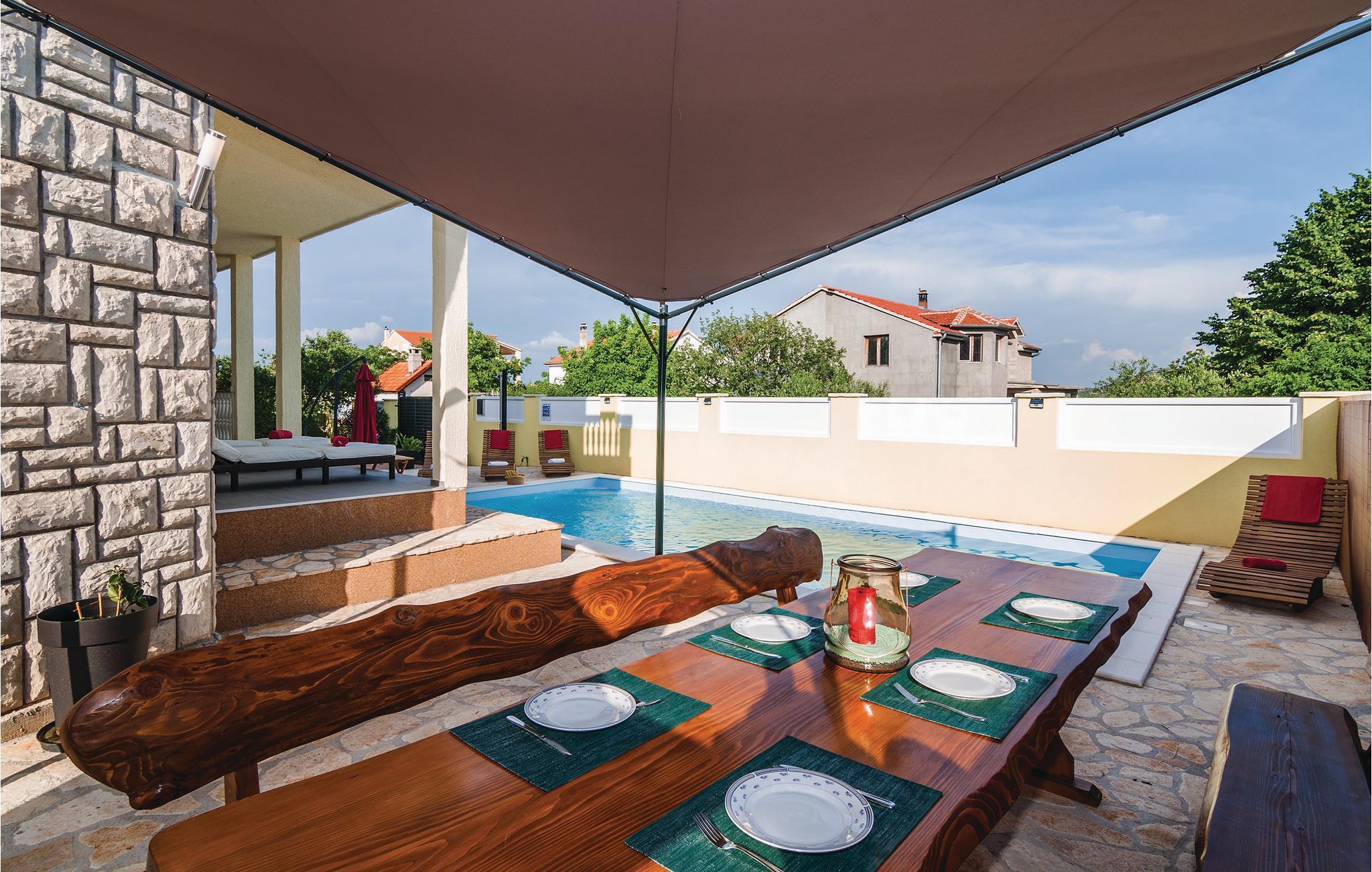 Omgivet af natur og en mediterran atmosfære i et lanskab, der bliver forkælet med meget sol, ligger dette smukke feirehus med pool og velholdt have. I den lille landsby Polaca er I tæt på byerne Benkovac og Biograd. Den nærmeste sandstrand finder I ca. 8 km herfra. De flot indrettede værelser er fordelt på stueetagen og 1. sal. En spillekonsol, pikado, fussball og en trampolin sørger for underholdning. Besøg Vrana søen i nærheden med fuglereservatet, Maškovica Han, en sær osmansk bygning samt fritidsparken med emneområderne piratbyen, det vilde west og universum.