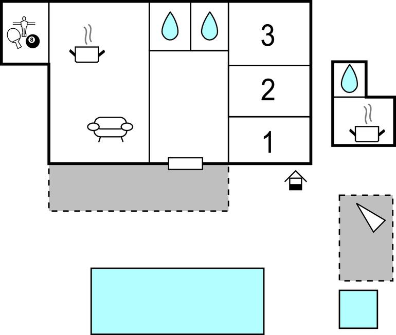 Huset er komfortabelt indrettet og skaber perfekte rammer om en suveræn ferie. Den private udendørspool er et tydeligt højdepunkt og indbyder til masser af badesjov og solbadning på liggestolene ved poolen. Til børnenes underholdning er der også trampolin, rutschebane, sandkasse og gynge, og gæster af alle aldre kan spille basketball på den private basketballbane. På de store terrasser kan I nyde skønne feriemåltider sammen og afslutte dagen med et glas vin. I har naturligvis også mulighed for at grille. Om aftenen kan I trække ind i huset og flade ud i sofaen foran fladskærmen.