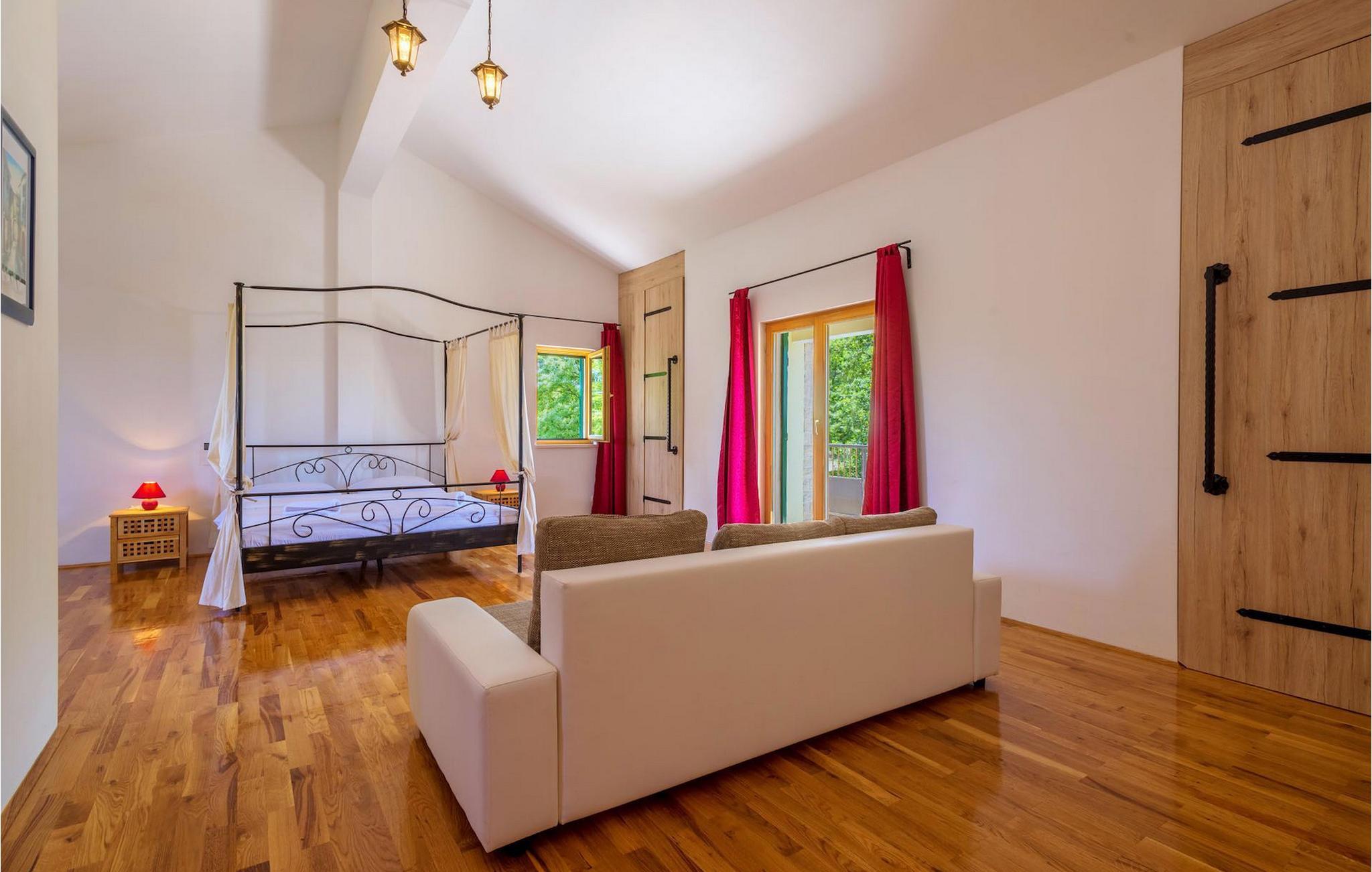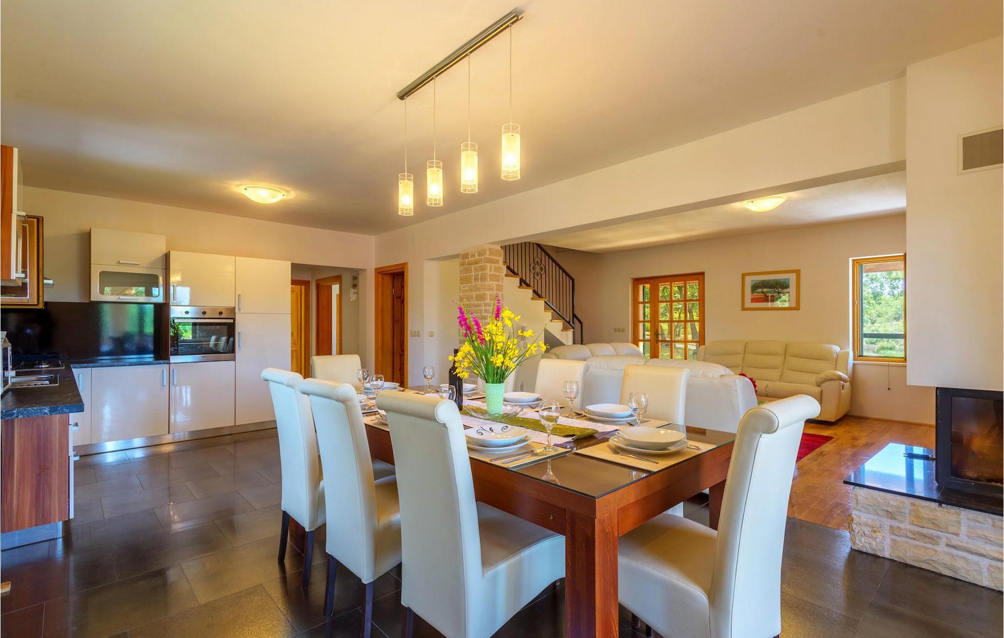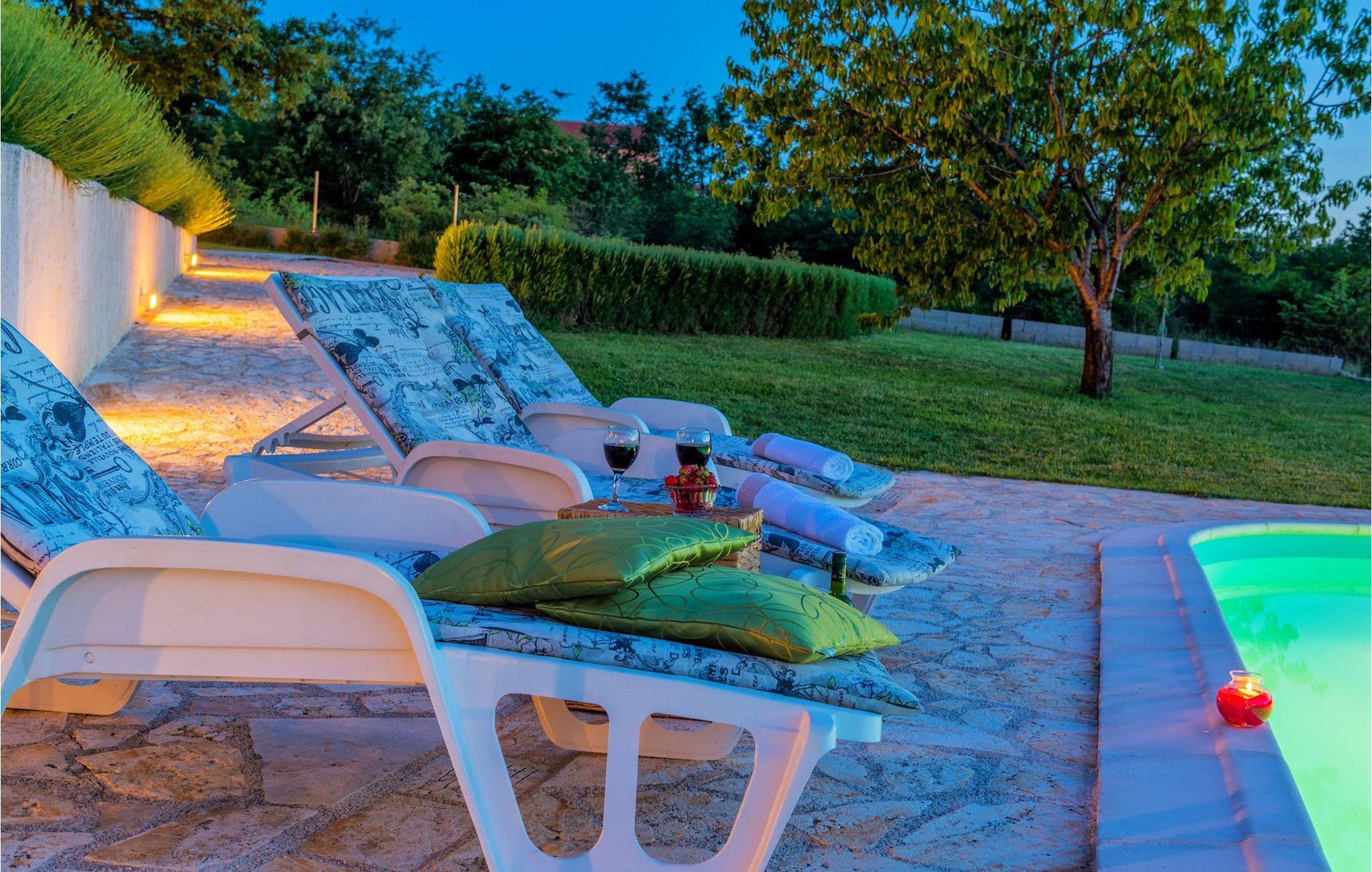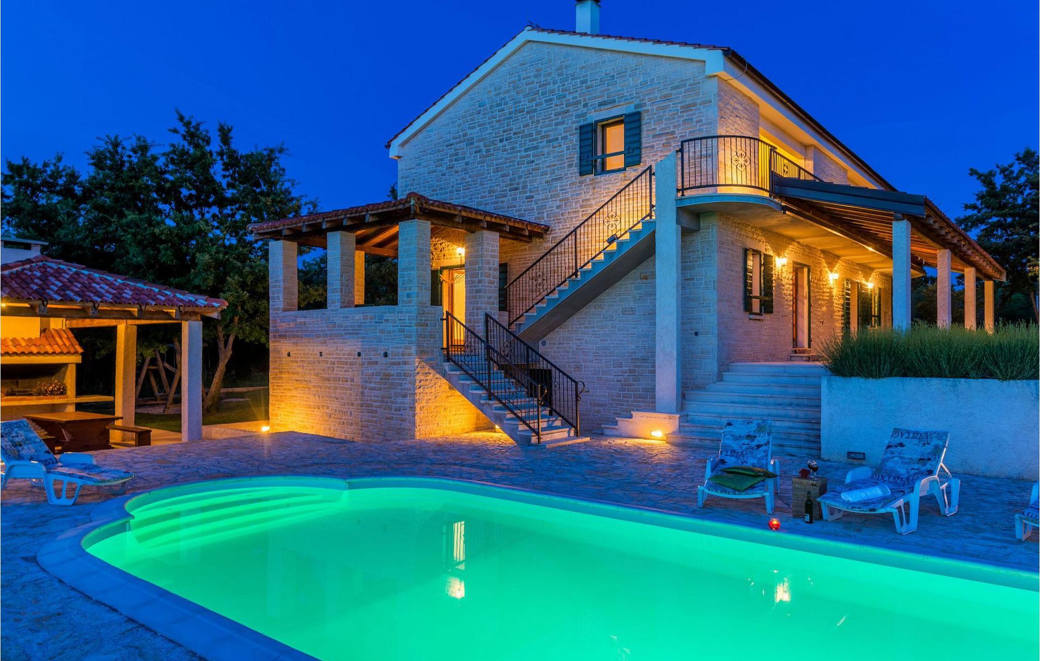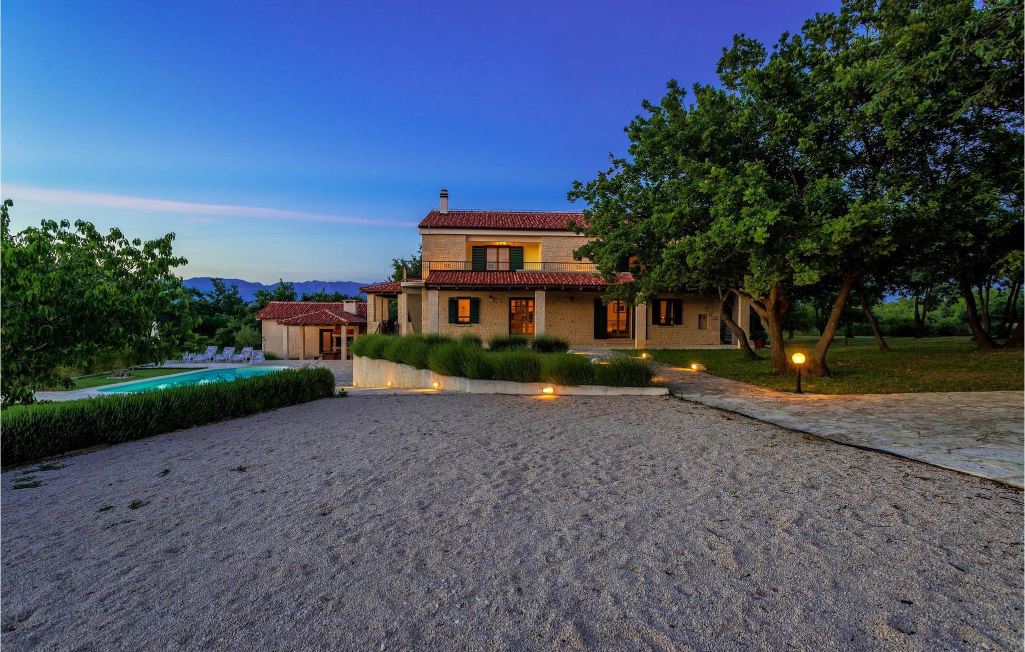 Villa Paradiso er velegnet til op til 10 gæster. Det ligger i baglandet af den smukke by Zadar. Mens byen har travlt i sommermånederne, er Villa Paradiso, som navnet siger, et ægte grønt og fredeligt paradis, der vil tilbyde dig den stilhed, du har brug for. Omgivet af talrige træer i sin store have skinner villaen som en diamant ud af det grønne. Foran det, vil du finde en god størrelse pool med liggestole og al-fresco spiseplads. Indvendigt er der 4 rummelige soveværelser, hver med eget badeværelse og dobbeltseng. To soveværelser er placeret på første sal, mens de to andre er i stueetagen, sammen med køkken, spiseplads og stue. Villaen har aircondition og vil tilbyde dig en vidunderlig ferieoplevelse i Dalmatien. Villa Paradiso er beliggende i en rolig landsby Lovinac, kort køretur fra Zadar, nær nationalparkerne Plitvice-søerne, Paklenica, Kornati-øerne og Krka.