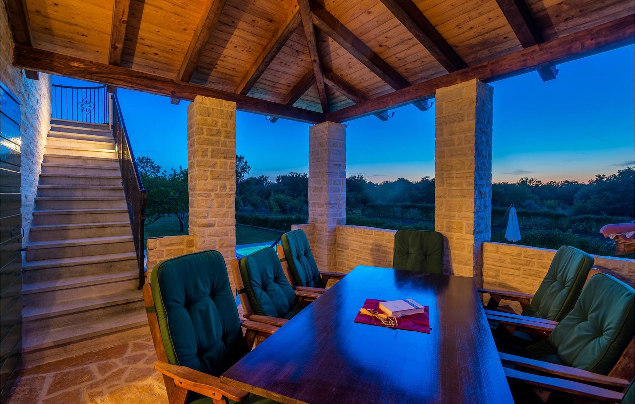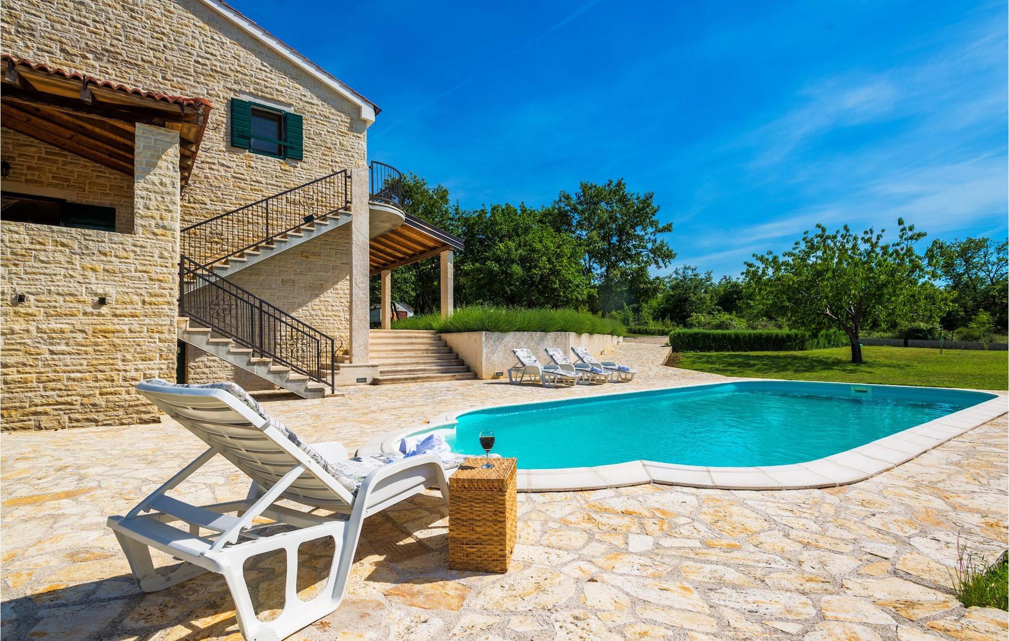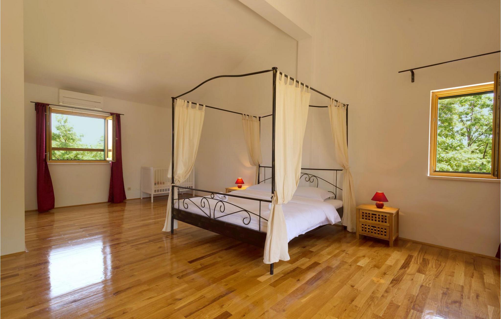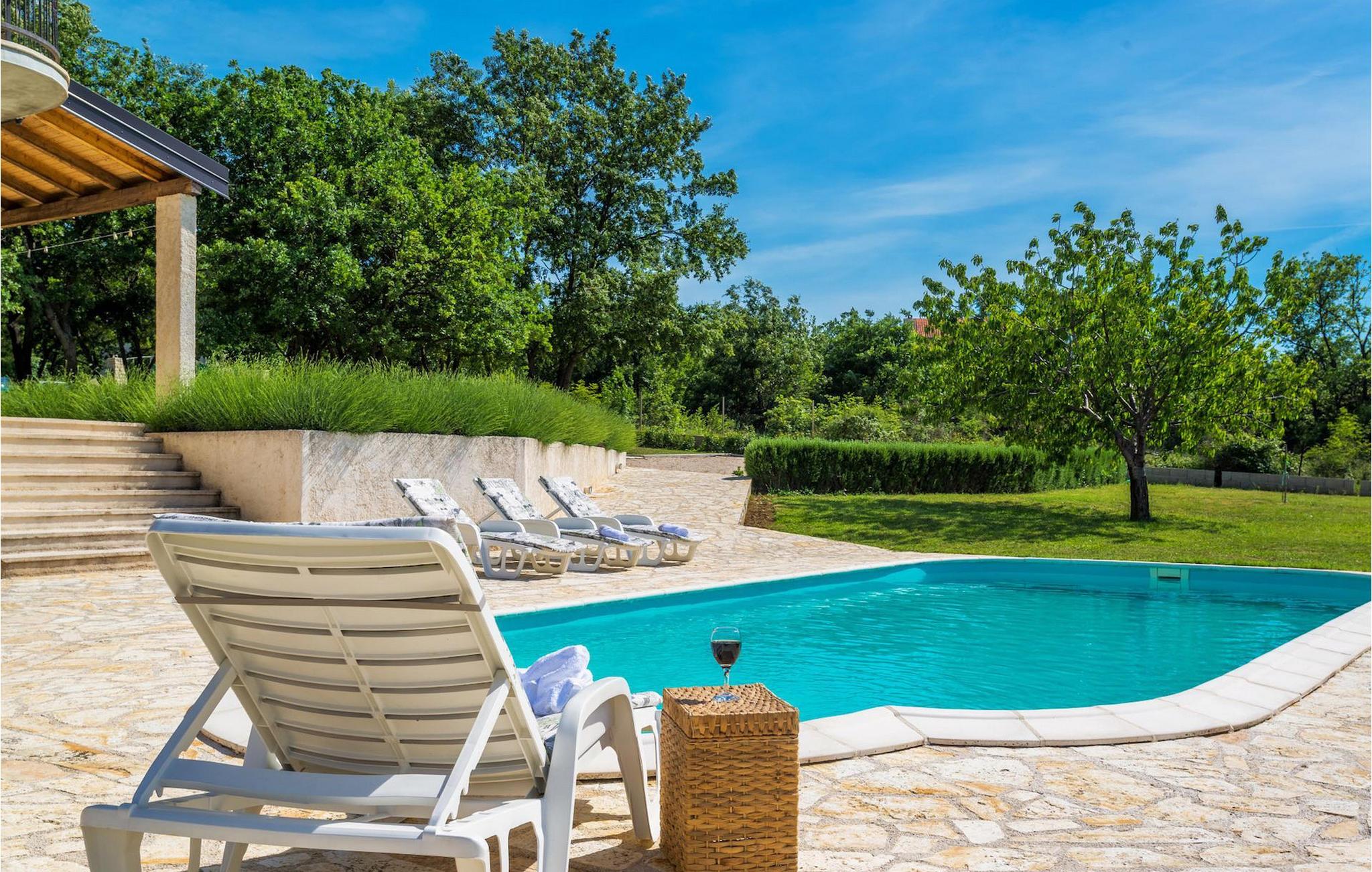 Villa Paradiso er velegnet til op til 10 gæster. Det ligger i baglandet af den smukke by Zadar. Mens byen har travlt i sommermånederne, er Villa Paradiso, som navnet siger, et ægte grønt og fredeligt paradis, der vil tilbyde dig den stilhed, du har brug for. Omgivet af talrige træer i sin store have skinner villaen som en diamant ud af det grønne. Foran det, vil du finde en god størrelse pool med liggestole og al-fresco spiseplads. Indvendigt er der 4 rummelige soveværelser, hver med eget badeværelse og dobbeltseng. To soveværelser er placeret på første sal, mens de to andre er i stueetagen, sammen med køkken, spiseplads og stue. Villaen har aircondition og vil tilbyde dig en vidunderlig ferieoplevelse i Dalmatien. Villa Paradiso er beliggende i en rolig landsby Lovinac, kort køretur fra Zadar, nær nationalparkerne Plitvice-søerne, Paklenica, Kornati-øerne og Krka.