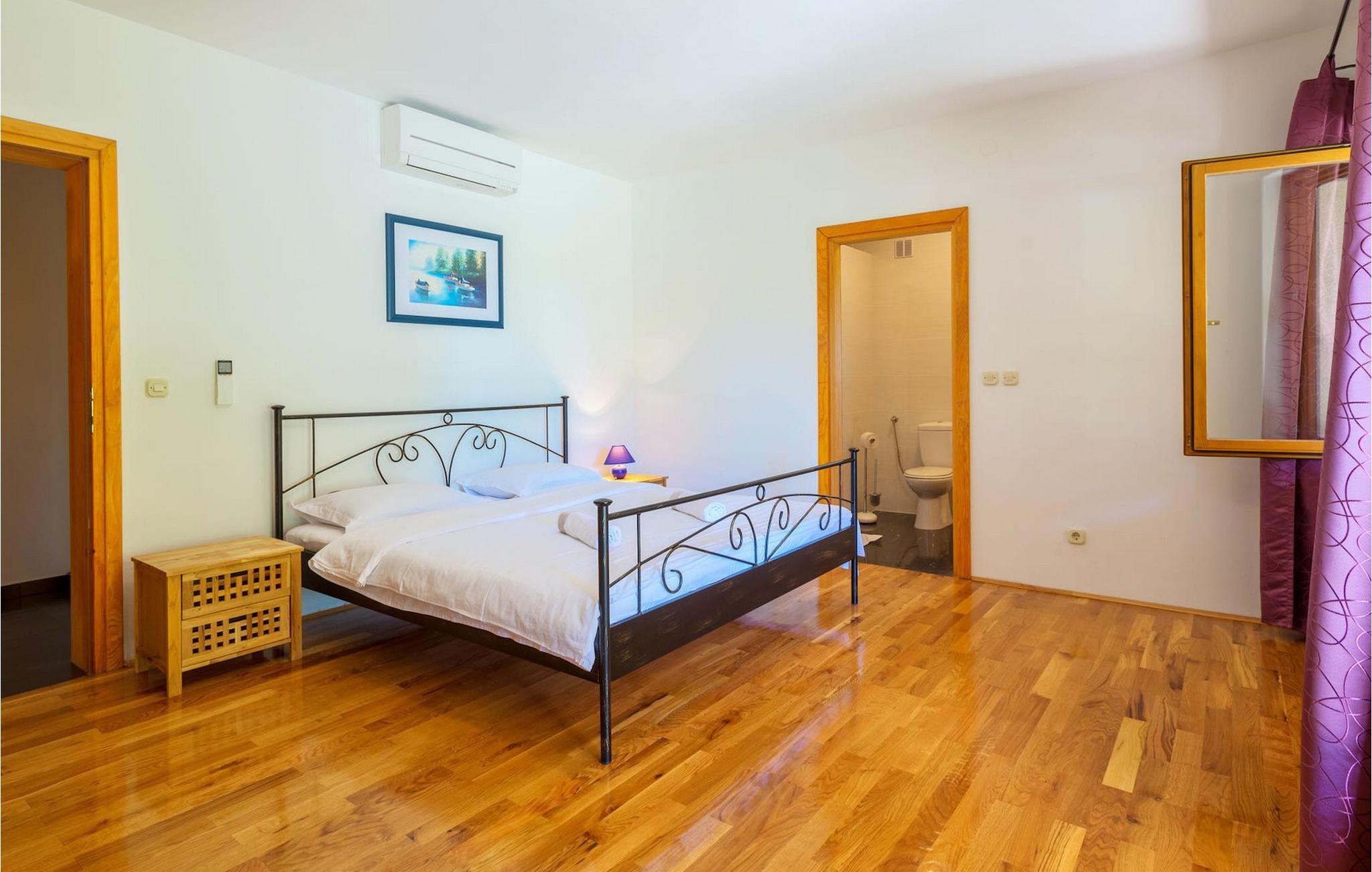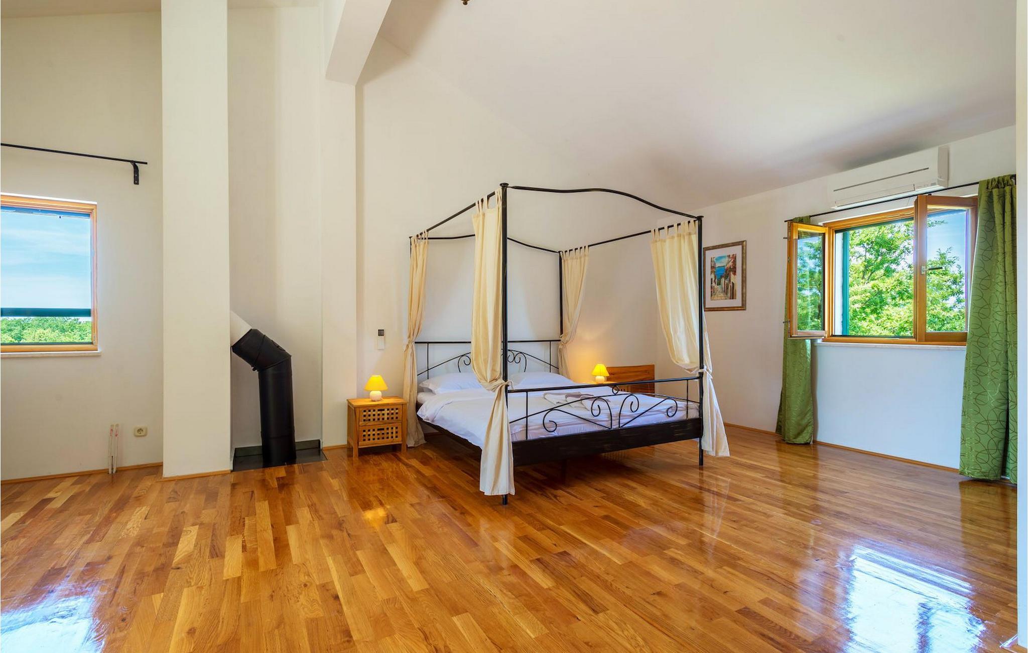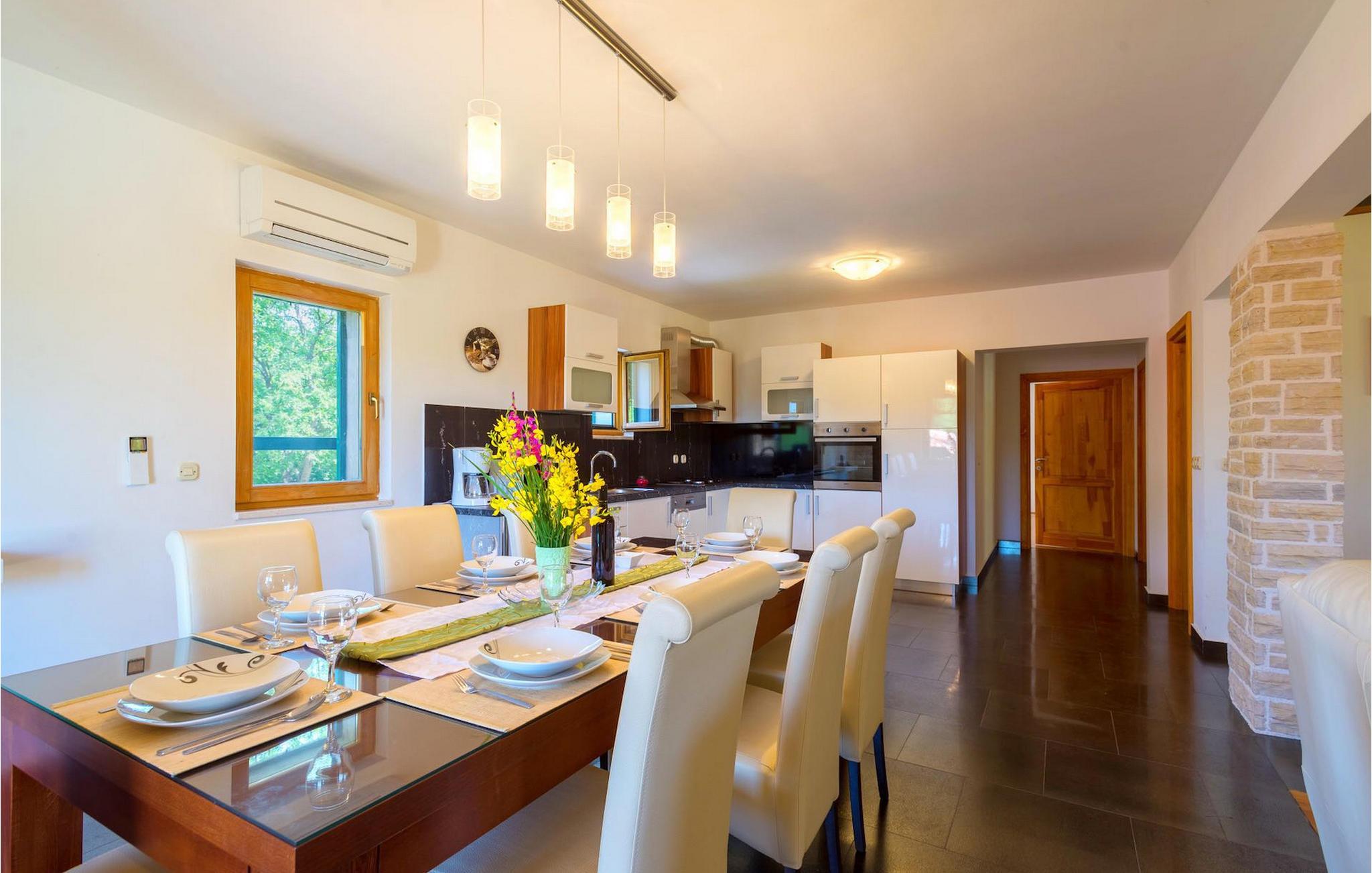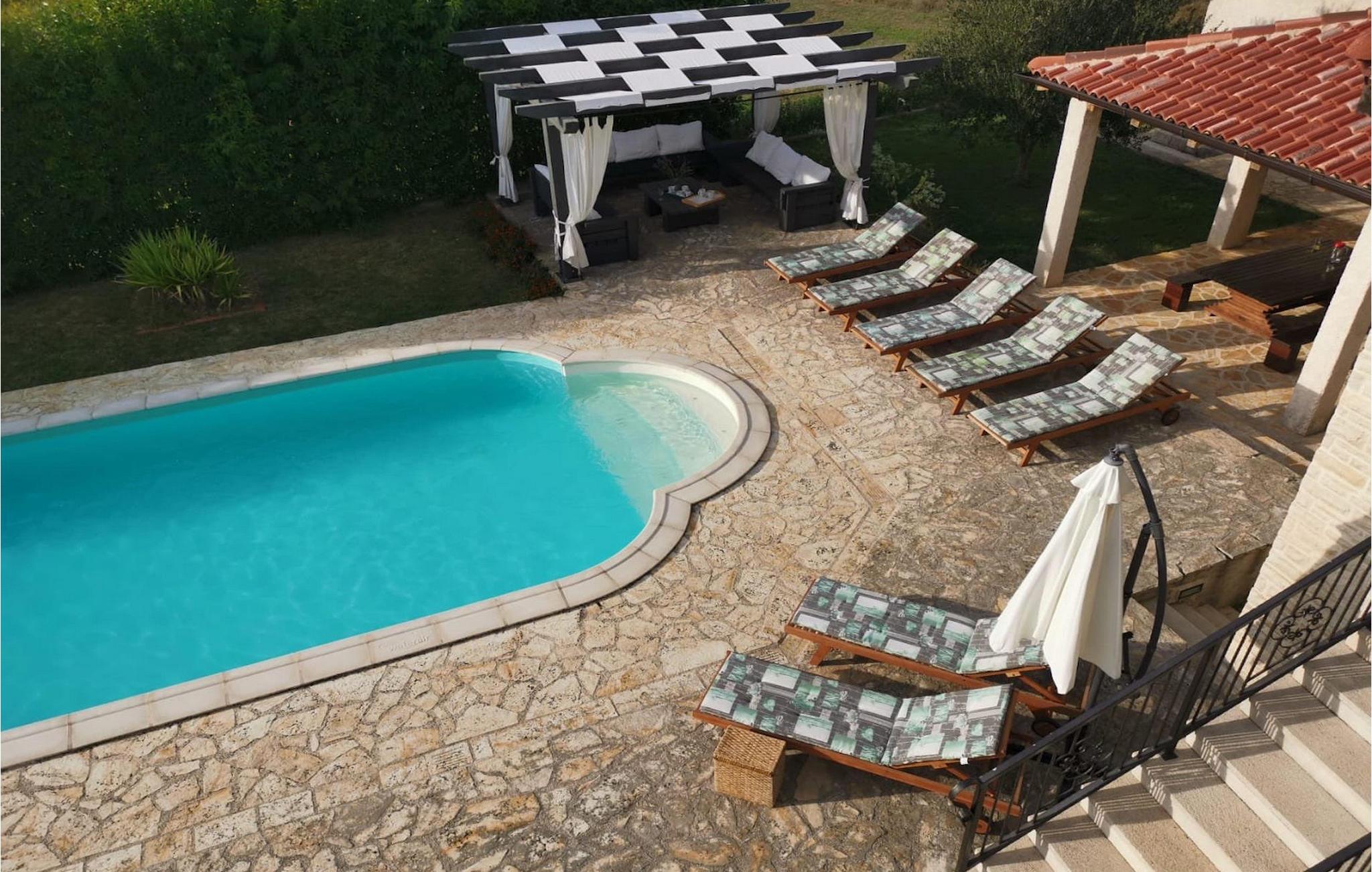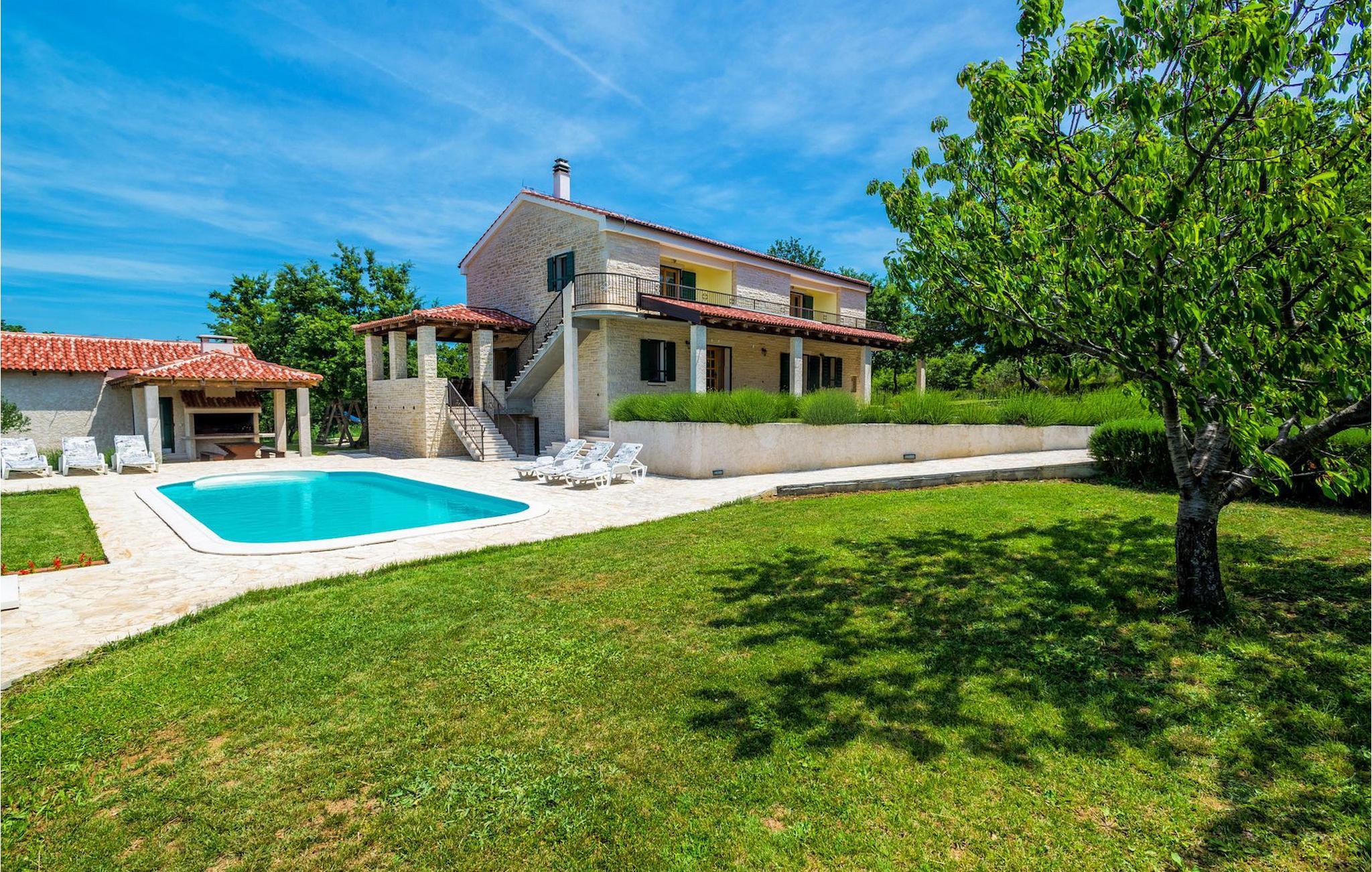 Villa Paradiso er velegnet til op til 10 gæster. Det ligger i baglandet af den smukke by Zadar. Mens byen har travlt i sommermånederne, er Villa Paradiso, som navnet siger, et ægte grønt og fredeligt paradis, der vil tilbyde dig den stilhed, du har brug for. Omgivet af talrige træer i sin store have skinner villaen som en diamant ud af det grønne. Foran det, vil du finde en god størrelse pool med liggestole og al-fresco spiseplads. Indvendigt er der 4 rummelige soveværelser, hver med eget badeværelse og dobbeltseng. To soveværelser er placeret på første sal, mens de to andre er i stueetagen, sammen med køkken, spiseplads og stue. Villaen har aircondition og vil tilbyde dig en vidunderlig ferieoplevelse i Dalmatien. Villa Paradiso er beliggende i en rolig landsby Lovinac, kort køretur fra Zadar, nær nationalparkerne Plitvice-søerne, Paklenica, Kornati-øerne og Krka.