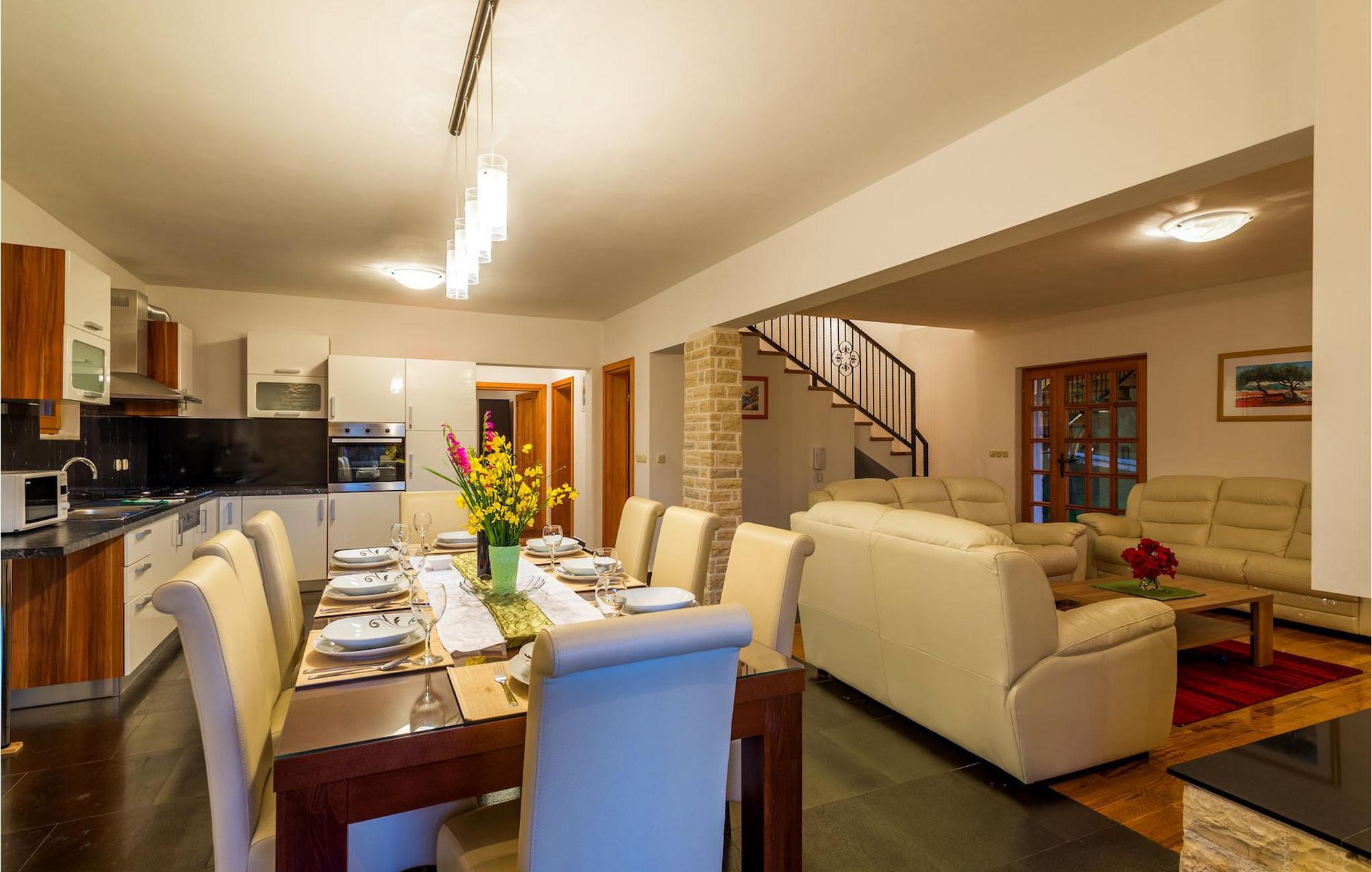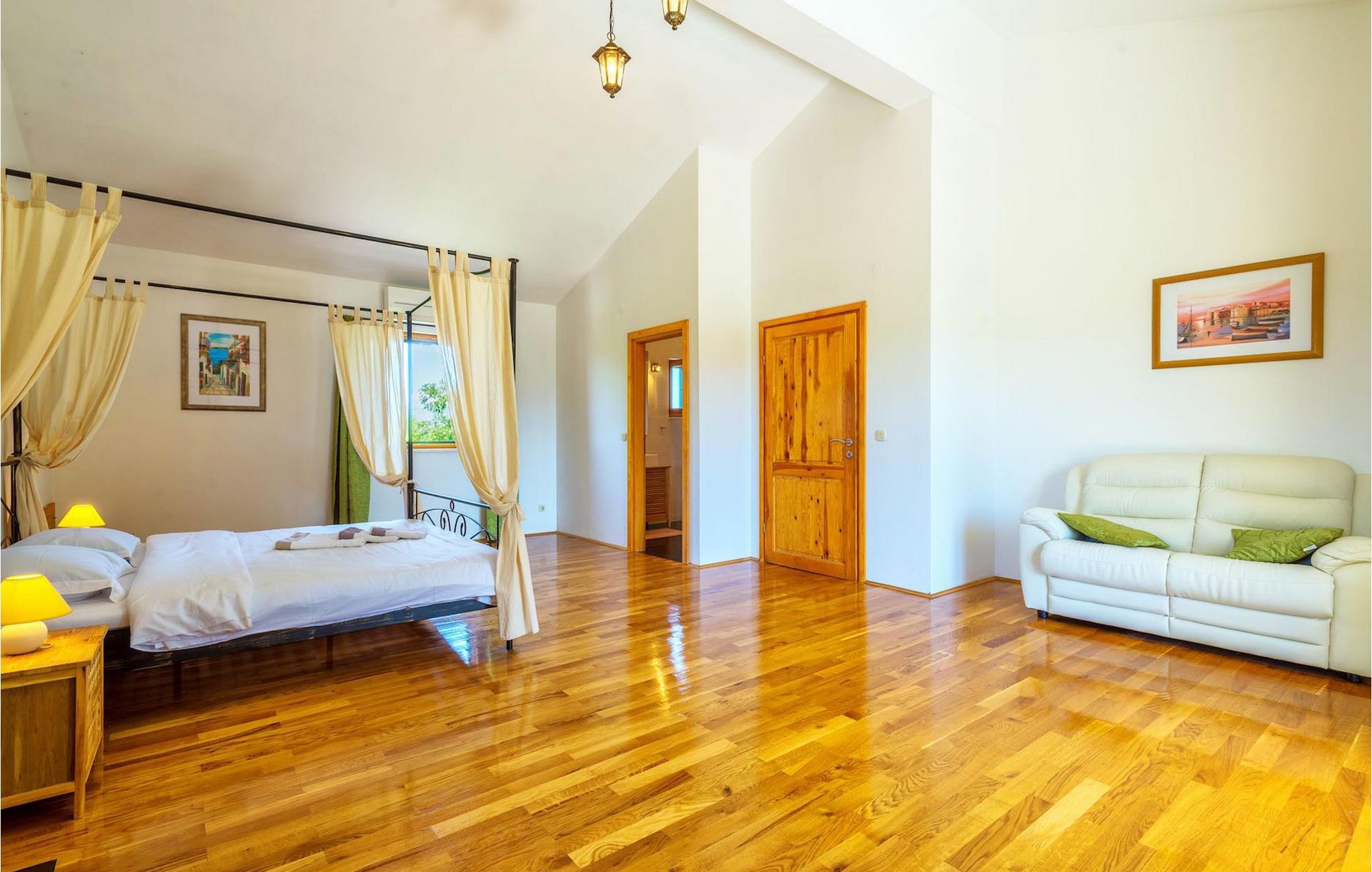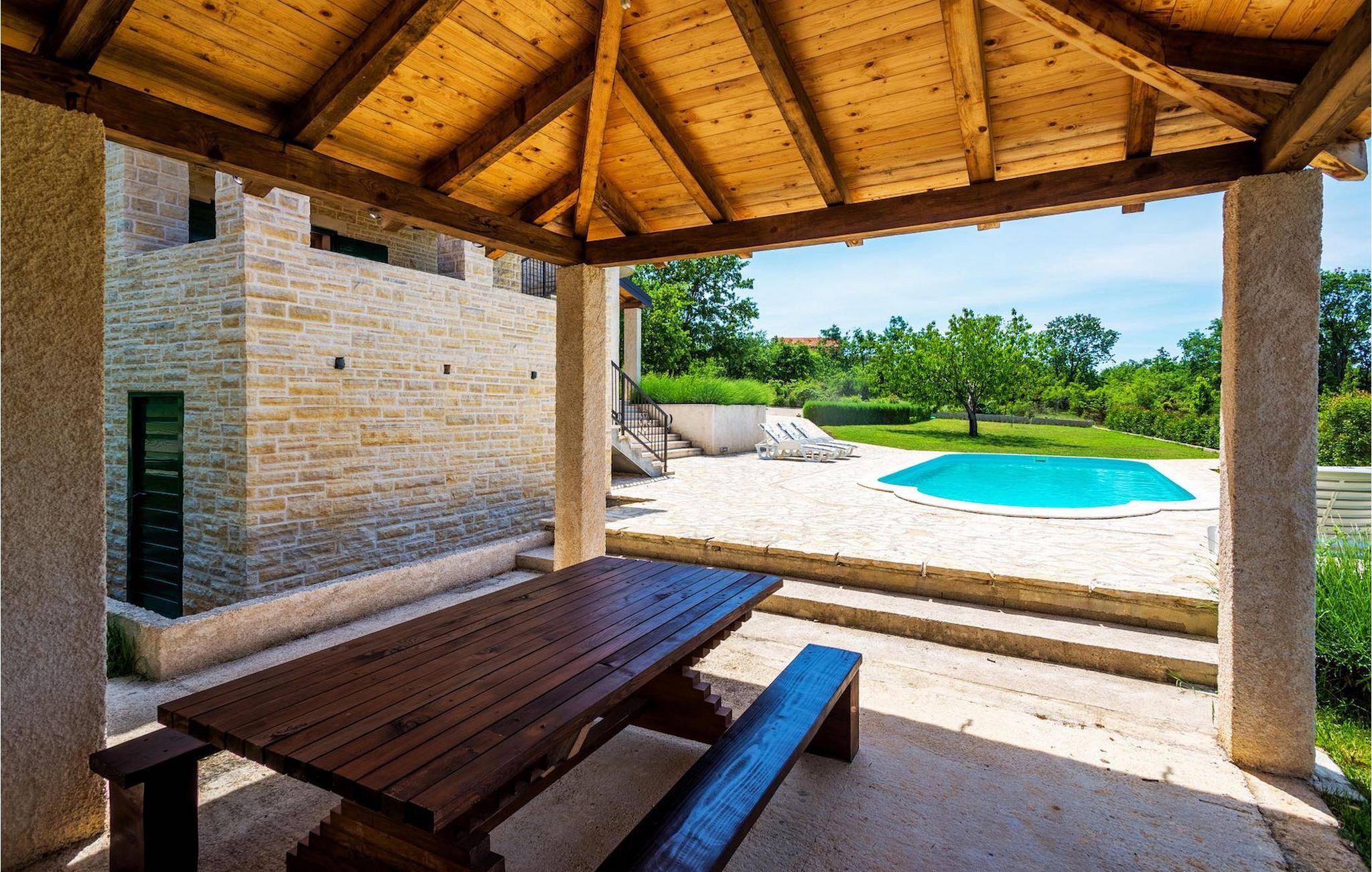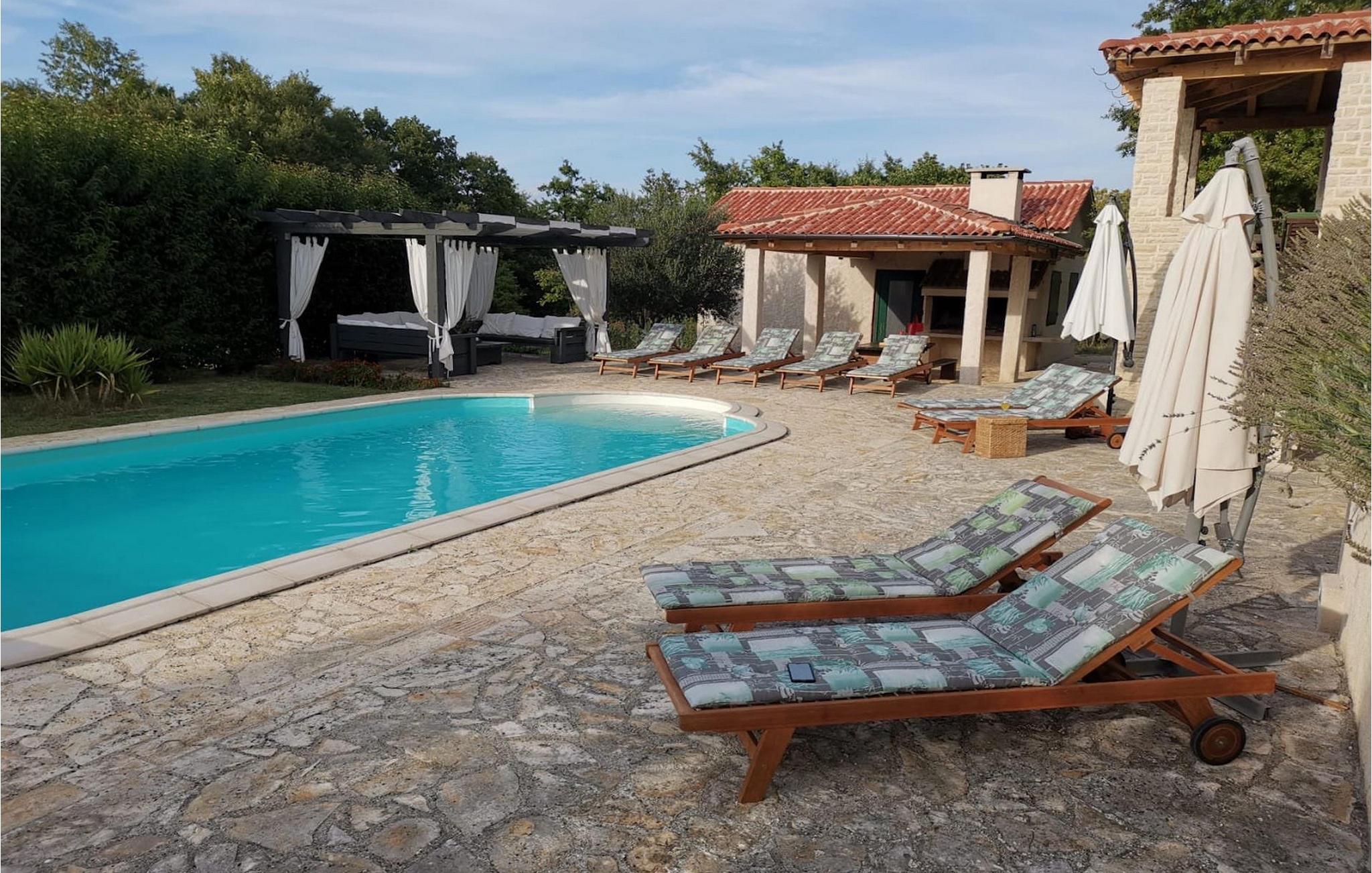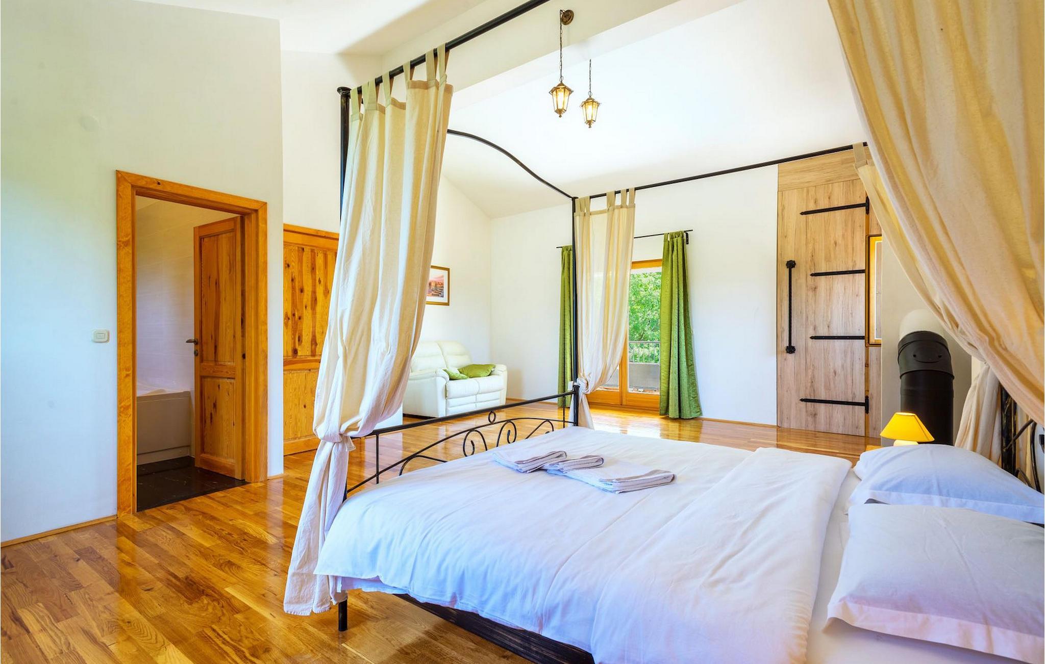 Villa Paradiso er velegnet til op til 10 gæster. Det ligger i baglandet af den smukke by Zadar. Mens byen har travlt i sommermånederne, er Villa Paradiso, som navnet siger, et ægte grønt og fredeligt paradis, der vil tilbyde dig den stilhed, du har brug for. Omgivet af talrige træer i sin store have skinner villaen som en diamant ud af det grønne. Foran det, vil du finde en god størrelse pool med liggestole og al-fresco spiseplads. Indvendigt er der 4 rummelige soveværelser, hver med eget badeværelse og dobbeltseng. To soveværelser er placeret på første sal, mens de to andre er i stueetagen, sammen med køkken, spiseplads og stue. Villaen har aircondition og vil tilbyde dig en vidunderlig ferieoplevelse i Dalmatien. Villa Paradiso er beliggende i en rolig landsby Lovinac, kort køretur fra Zadar, nær nationalparkerne Plitvice-søerne, Paklenica, Kornati-øerne og Krka.
