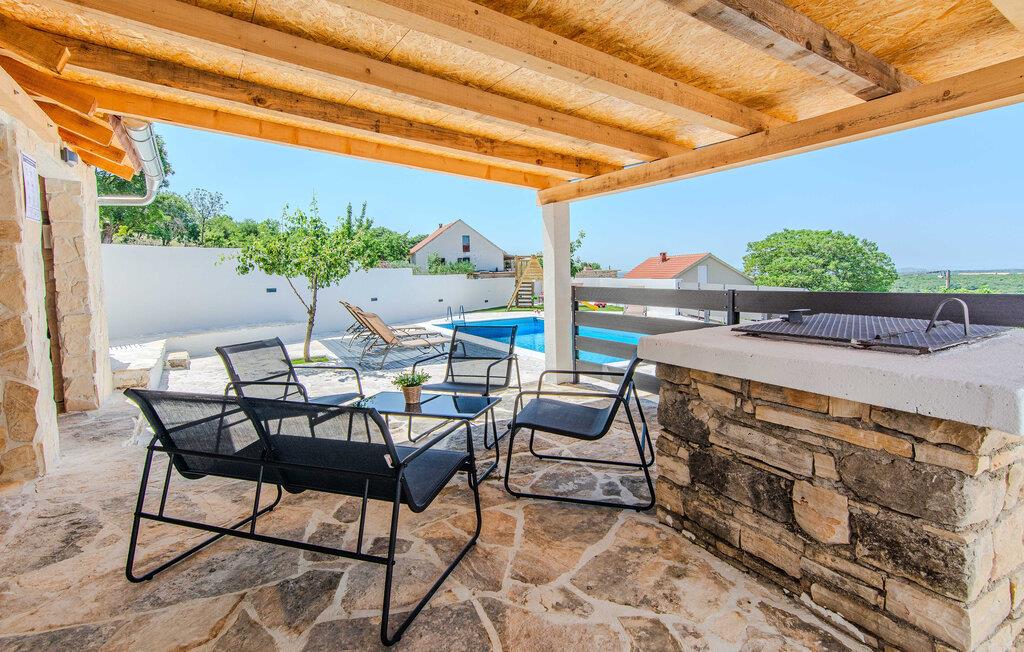 Tilbring afslappende dage i dette stilfulde feriehus med pool nær havet. Nyd jeres ophold i dette moderne og komfortable hus fyldt med faciliteter. Slap af i sofagruppen, mens I ser jeres yndlings-tv-serie, eller forkæl jeres familie eller venner med et hjemmelavet måltid. Spil derefter kort eller brætspil ved det store spisebord, og afslut aftenen med et glas vin. Tag en dukkert i poolen om morgenen, inden I starter dagen med en let morgenmad. Slap af med en kølig drink på liggestolene. Hvis I er klar til at blive aktiv igen, kan I spille bordfodbold, badminton eller fodbold. Der er udendørs klatrestativer til de små. Tag en tur til den historiske gamle bydel i Zadar, og oplev Havorglet og kunstinstallationen "Hilsen til solen". Vandr gennem imponerende kløfter og over grønne bakker i den nærliggende Paklenica Nationalpark. Slap af på regionens strande, eller tag en bådtur til øerne langs kysten for at opleve den dalmatiske kysts skønhed.
