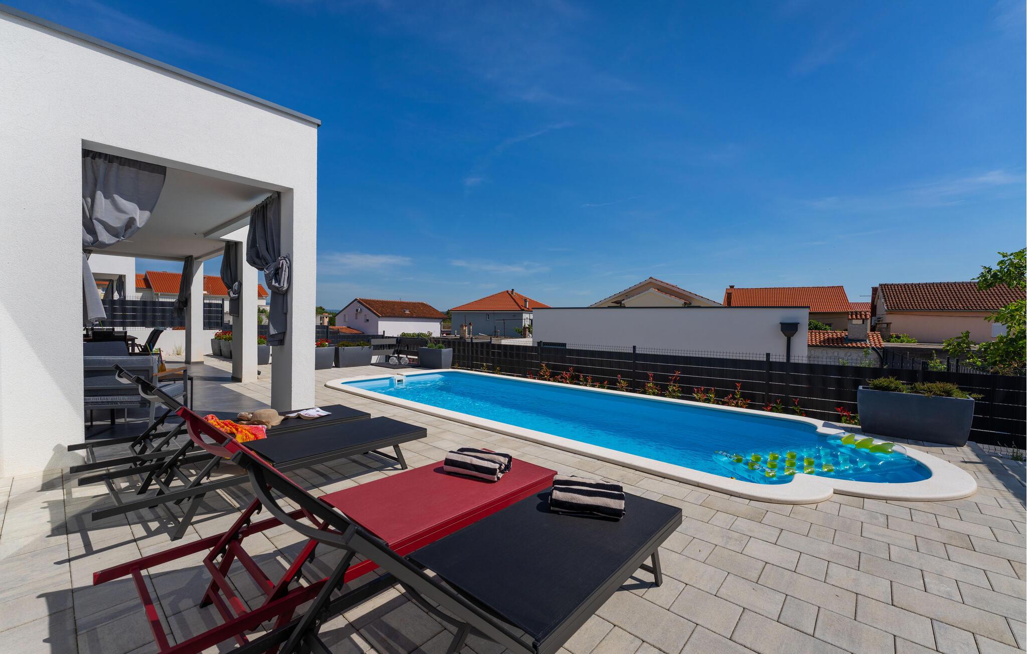 Nyd en solrig ferie i dette komfortable feriehus med pool.