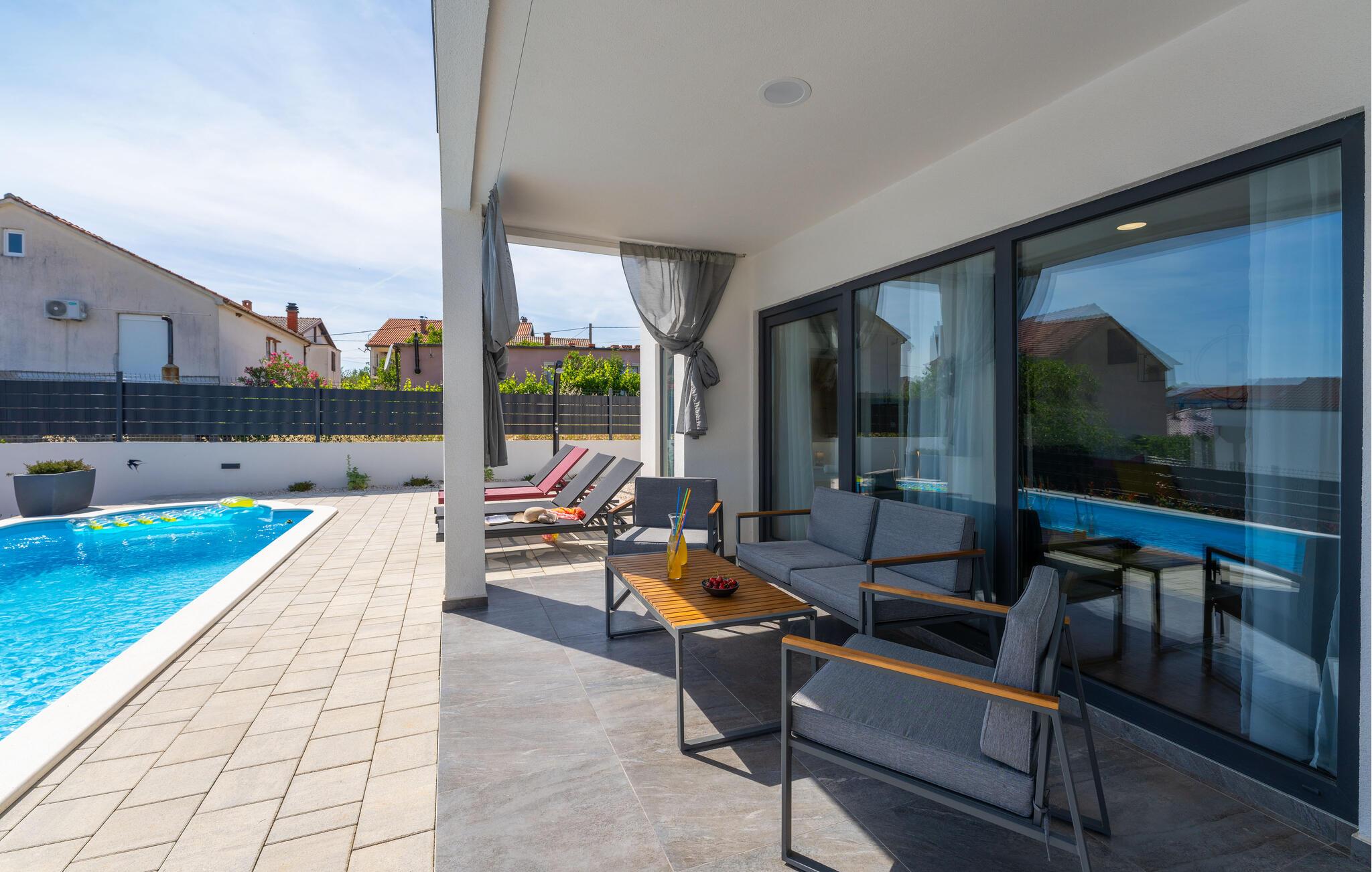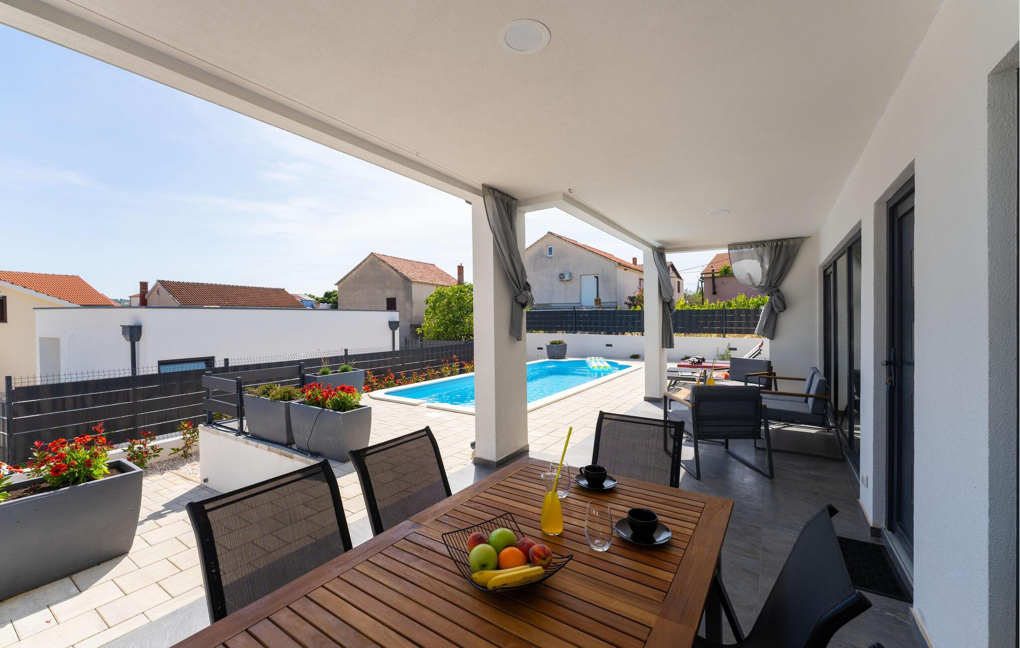 Vågn op lige efter I vågner, svøm afslappende baner i den smukke pool og server morgenmad på den skyggefulde terrasse. Slap af på de behagelige liggestole og tænd op i grillen på lune sommeraftener.