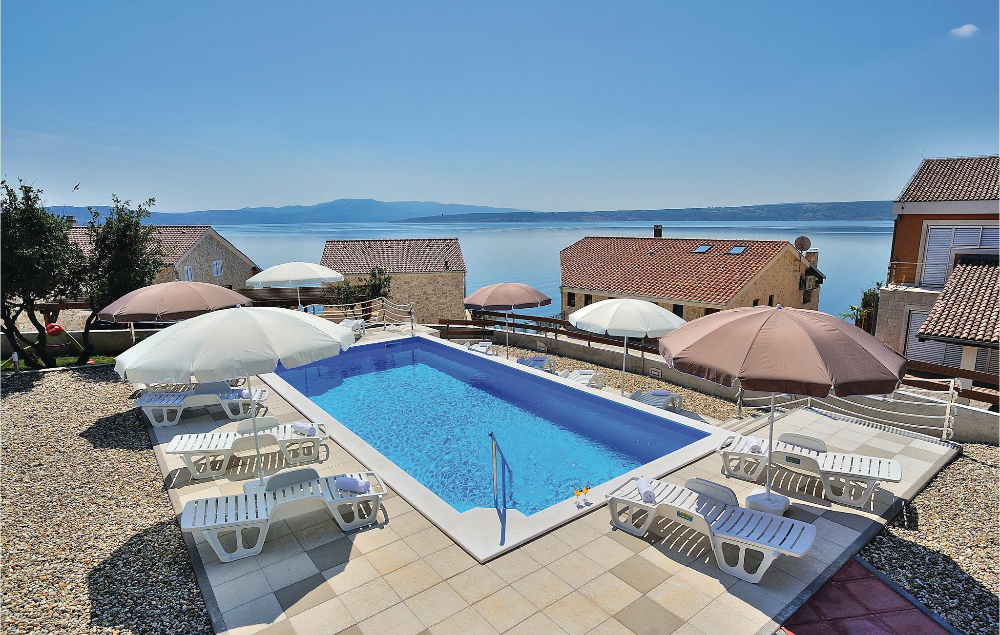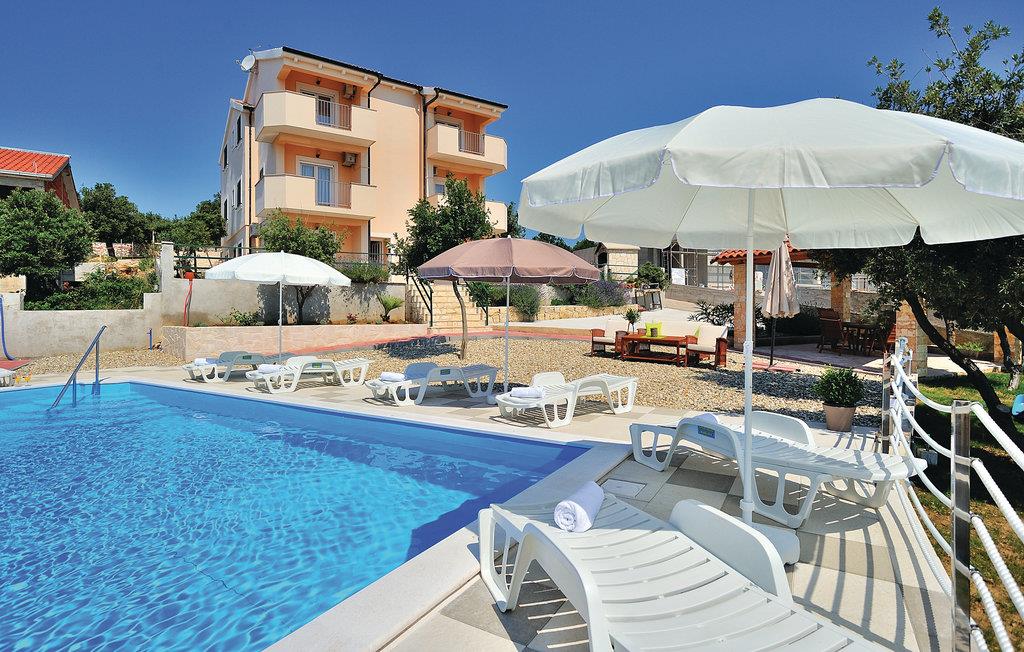 Fra disse ferielejligheder fører en kun 30 m lang gangsti til havet, så I nemt kan nå vandet. Indgangsdør, pavillon, grill, gynge og sandkasser og swimmingpool deler I med de andre gæster i huset. Fra altanen er der en skøn udsigt over havet og Velebitbjergene. Laveste loftshøjde i ferielejligheden CDS317 er 160 cm. En lille strand med liggestole og parasoller er udelukkende forbeholdt gæsterne i ferielejlighederne.