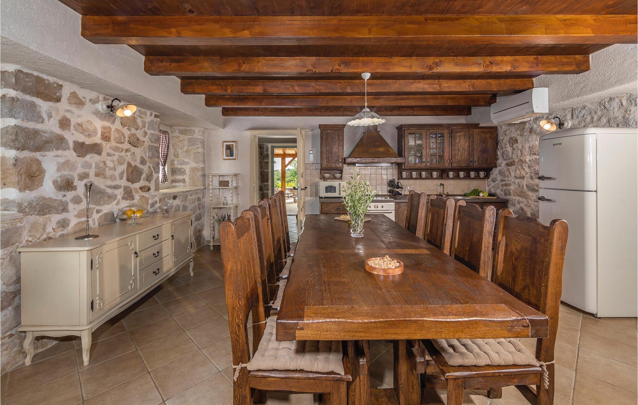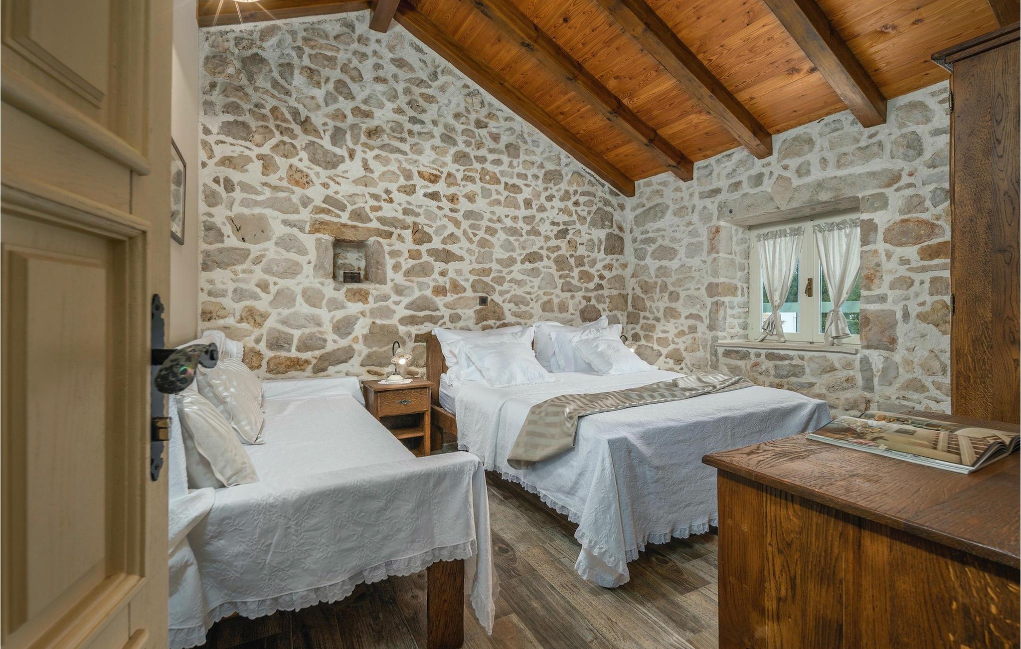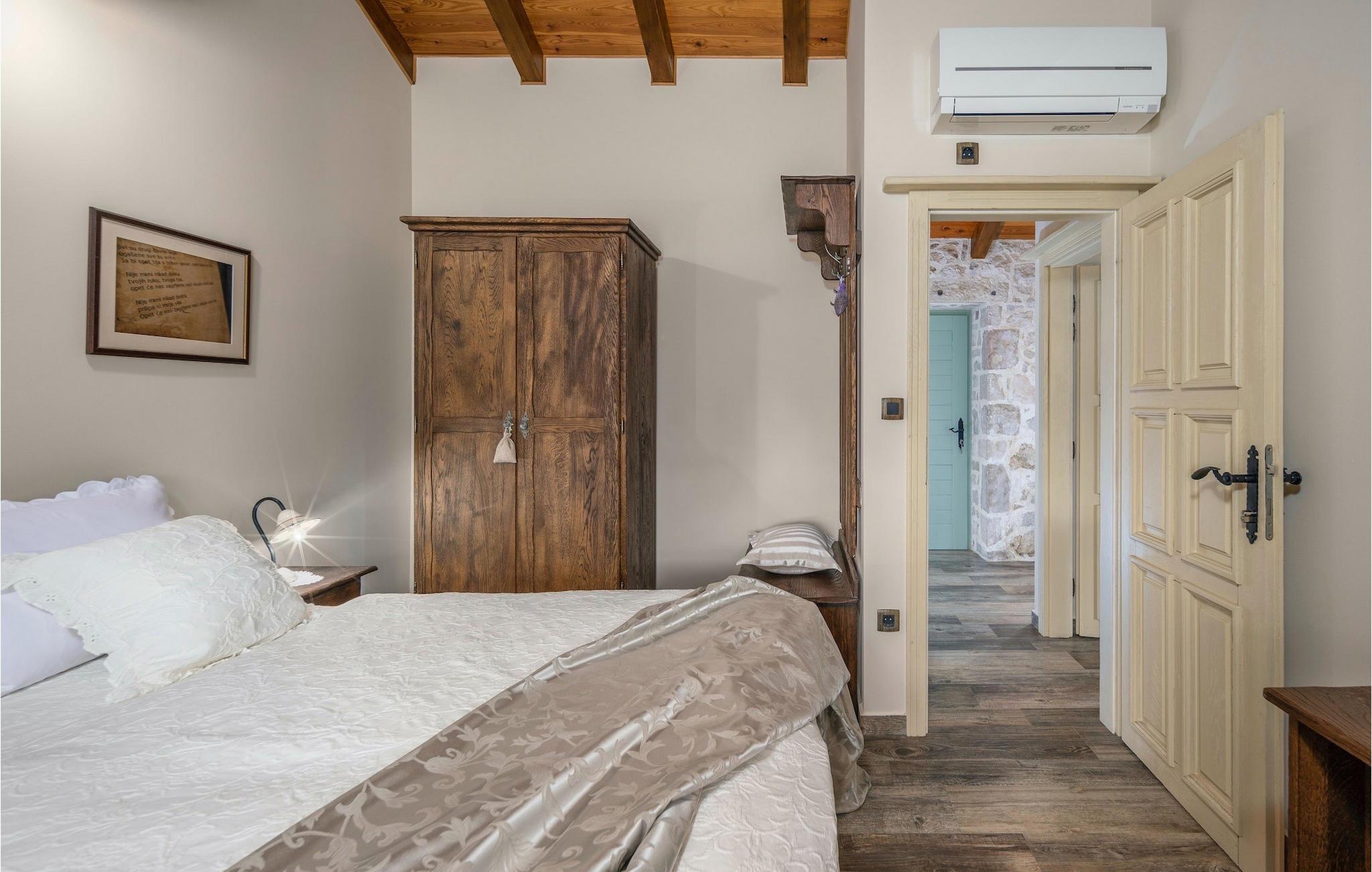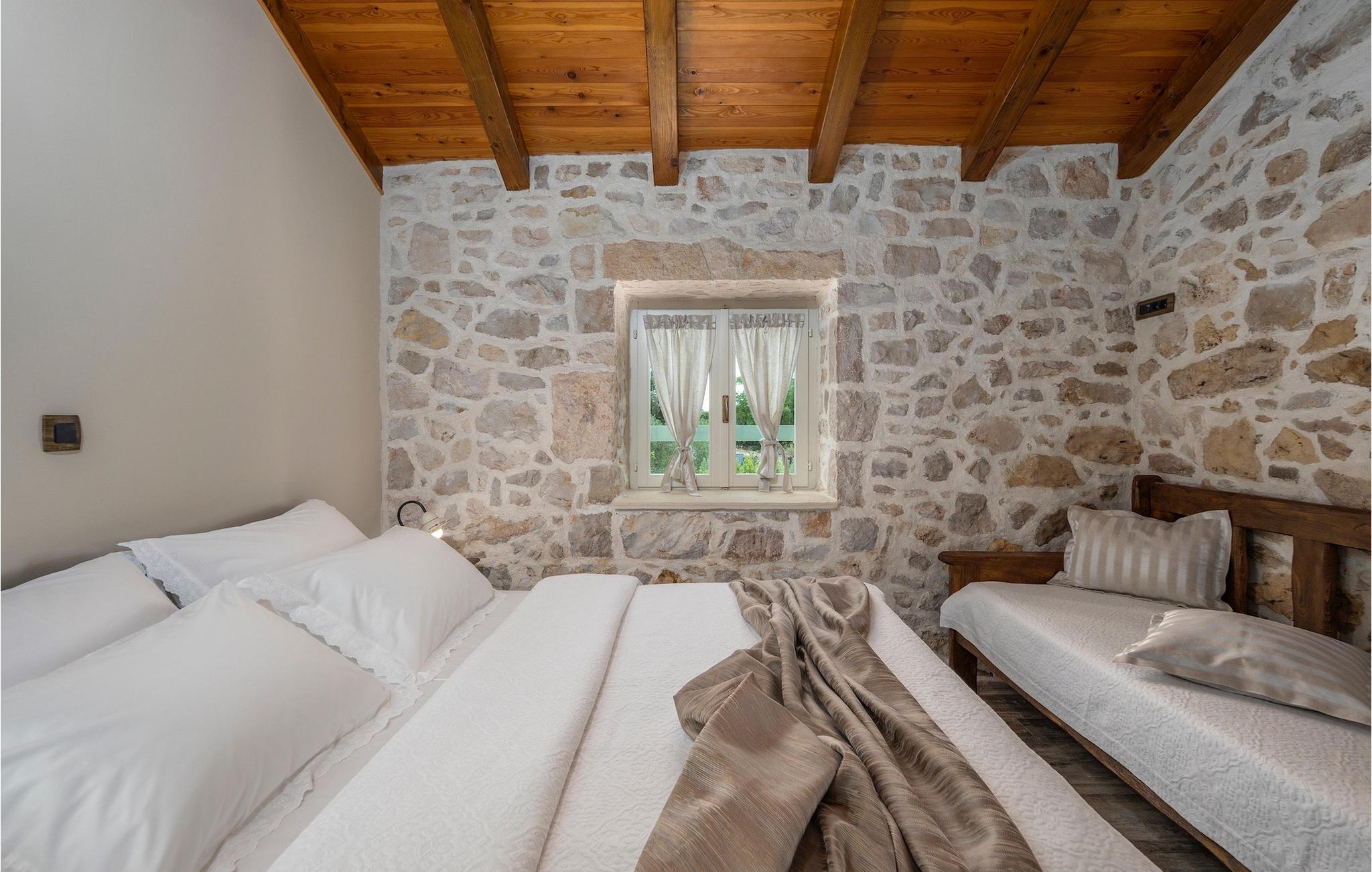 Denne smukke villa stammer fra 1821 og er et dejligt restaureret traditionelt dalmatisk hus. Beliggende i et fredeligt område, er denne villa ideel til en afslappende ferie. Villa Jerolim vil begejstre dig med sit lyse interiør indrettet i rustik stil. Det kan rumme op til 8 gæster og består af tre soveværelser placeret på øverste etage, hver med en dobbeltseng og aircondition. To af soveværelserne har også en ekstra seng til én person. Der er to interessant indrettede badeværelser, det ene med bruser og det andet med badekar. Der er et fuldt udstyret køkken til din rådighed i stueetagen, med en spiseplads til otte gæster, der åbner op til stuen.