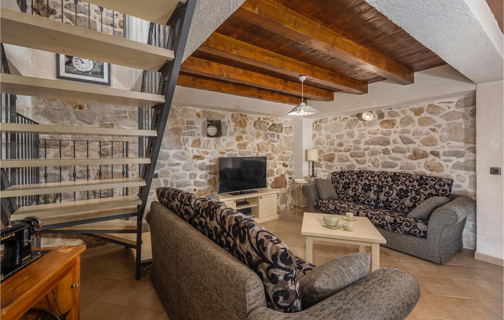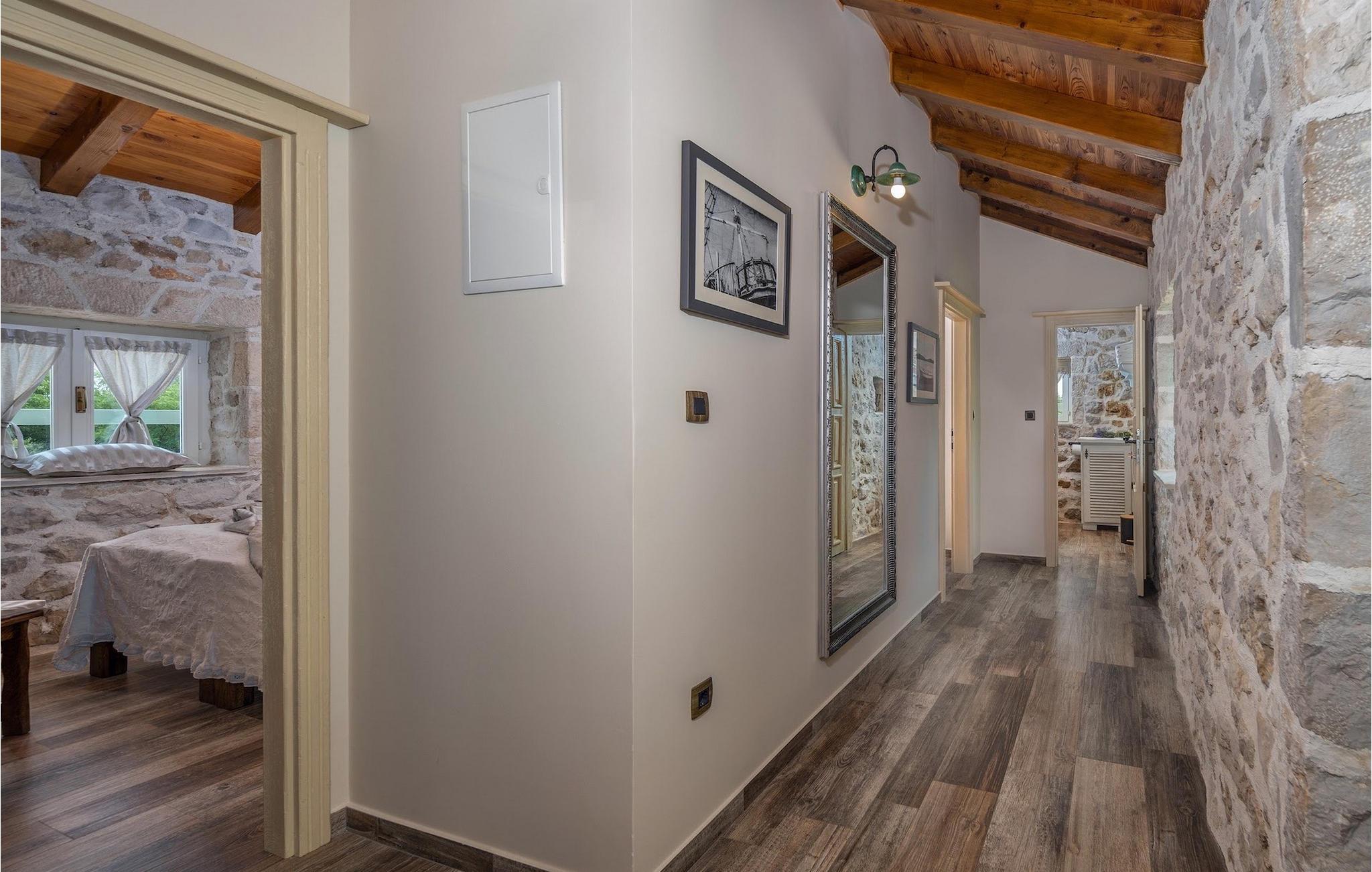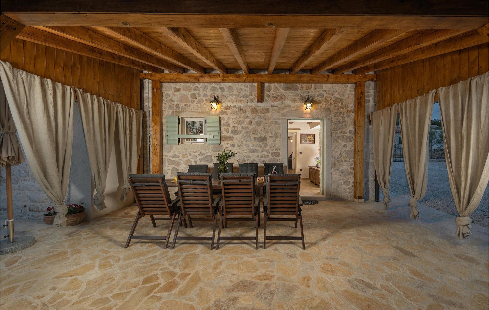 Denne smukke villa stammer fra 1821 og er et dejligt restaureret traditionelt dalmatisk hus. Beliggende i et fredeligt område, er denne villa ideel til en afslappende ferie. Villa Jerolim vil begejstre dig med sit lyse interiør indrettet i rustik stil. Det kan rumme op til 8 gæster og består af tre soveværelser placeret på øverste etage, hver med en dobbeltseng og aircondition. To af soveværelserne har også en ekstra seng til én person. Der er to interessant indrettede badeværelser, det ene med bruser og det andet med badekar. Der er et fuldt udstyret køkken til din rådighed i stueetagen, med en spiseplads til otte gæster, der åbner op til stuen.