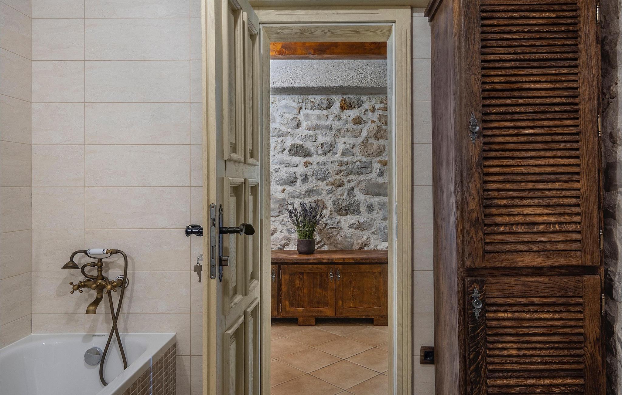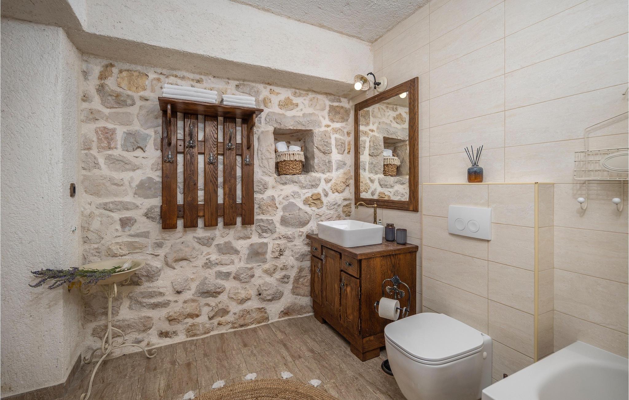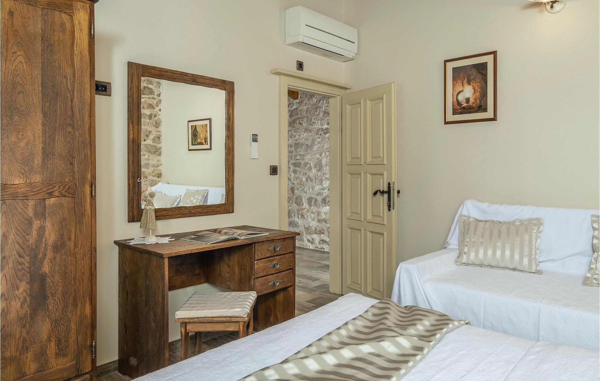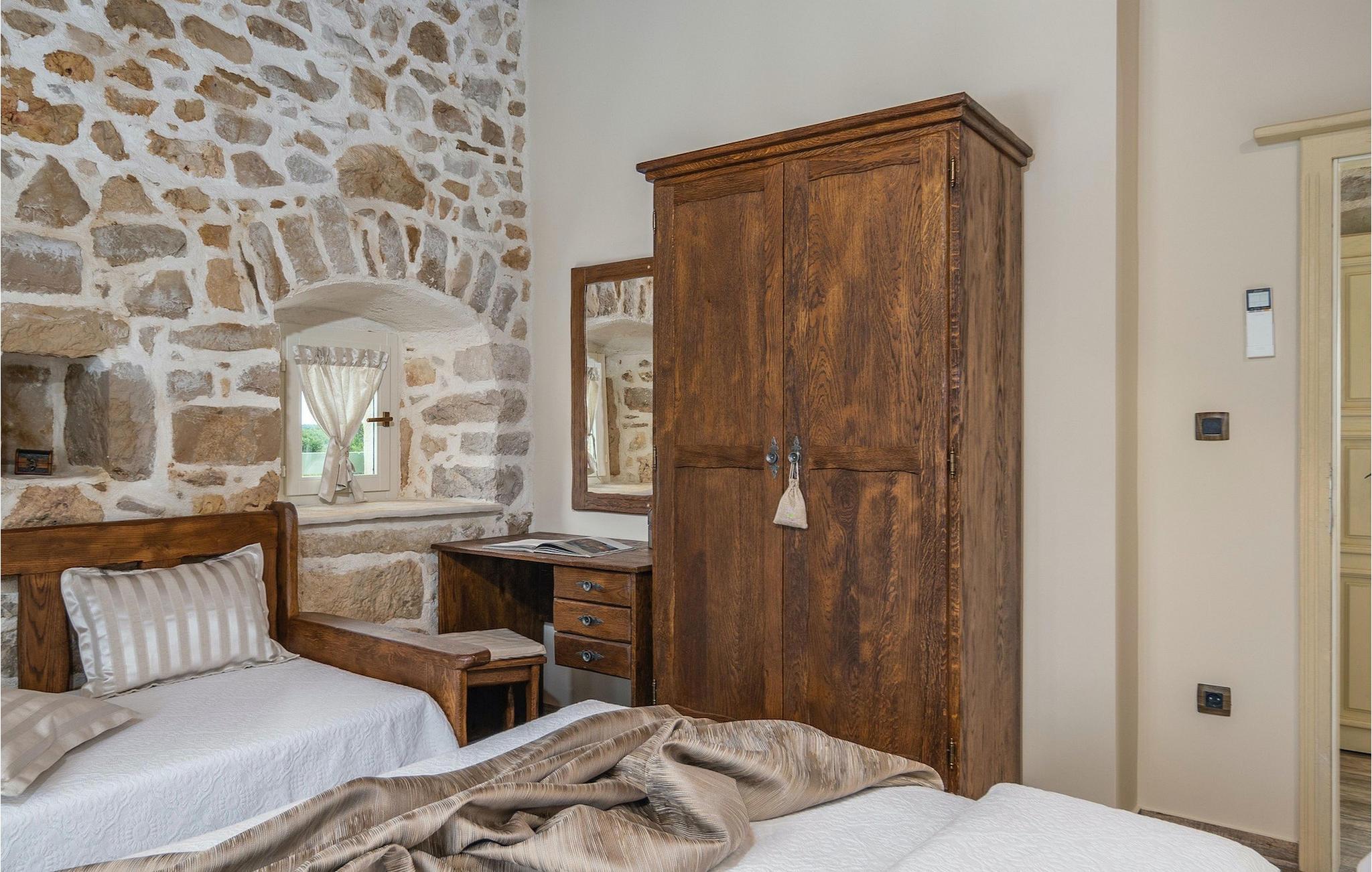 Denne smukke villa stammer fra 1821 og er et dejligt restaureret traditionelt dalmatisk hus. Beliggende i et fredeligt område, er denne villa ideel til en afslappende ferie. Villa Jerolim vil begejstre dig med sit lyse interiør indrettet i rustik stil. Det kan rumme op til 8 gæster og består af tre soveværelser placeret på øverste etage, hver med en dobbeltseng og aircondition. To af soveværelserne har også en ekstra seng til én person. Der er to interessant indrettede badeværelser, det ene med bruser og det andet med badekar. Der er et fuldt udstyret køkken til din rådighed i stueetagen, med en spiseplads til otte gæster, der åbner op til stuen.