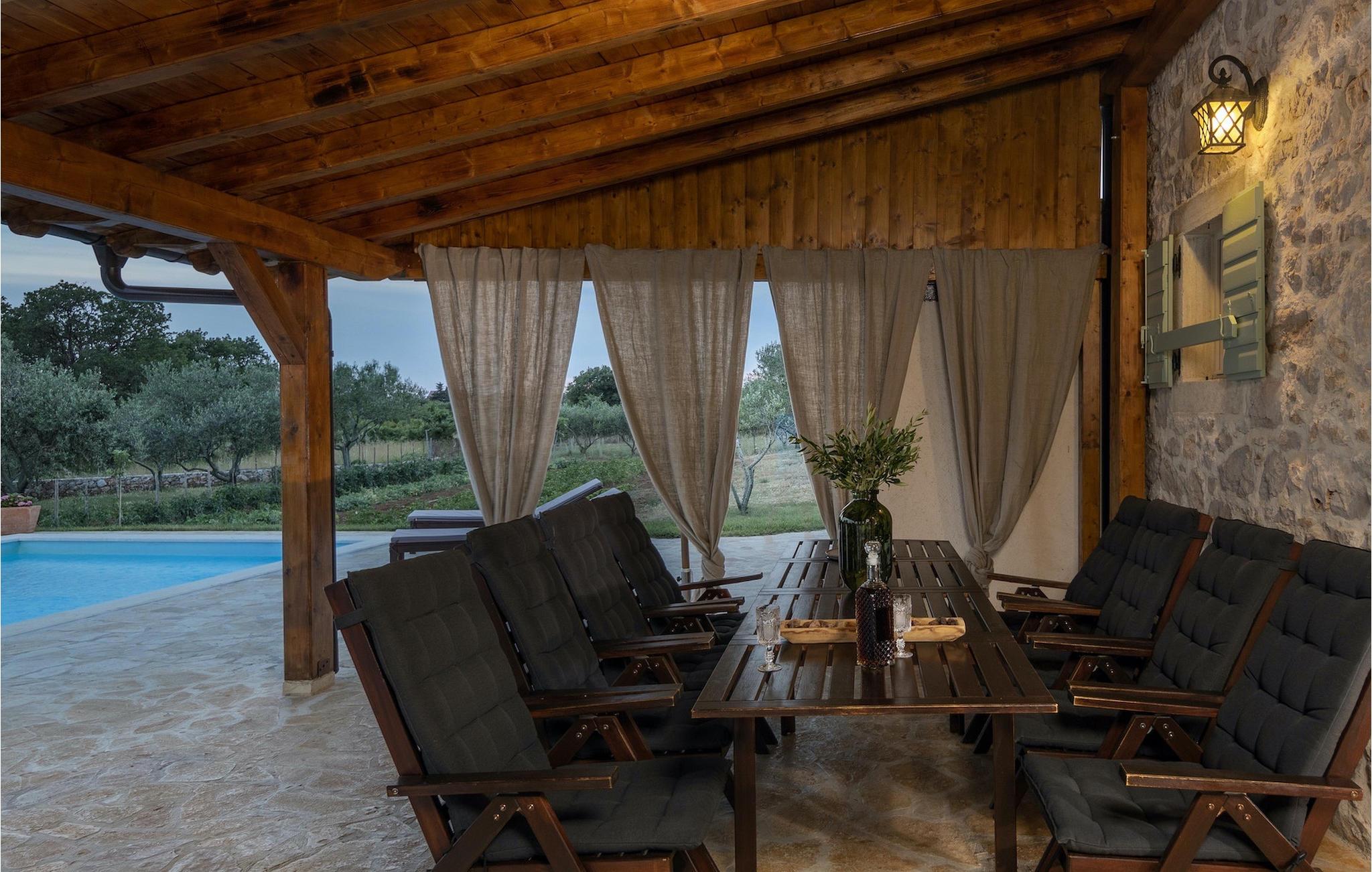 Villaen er beliggende på en 2000 m2 stor grund med privat pool og hyggelige liggestole, dejlig græsplæne med oliventræer og udendørs spiseplads, hvor du kan nyde dine måltider tilberedt på grillen. Der er også et traditionelt fællesrum (konoba) med et lille køkken, en stor pejs og spiseplads, der vil gøre din ferie komplet.Villa Jerolim ligger i et fredeligt område i Slivnica, nær Posedarje. Det er et roligt område, ikke overfyldt og ikke særlig beboet - perfekt til en afslappende ferie. Stedet er takket være den specifikke geografiske beliggenhed stille usædvanligt i forhold til de fleste steder på Adriaterhavskysten; du kan få adgang til kysten, uanset om du tager mod øst, vest eller syd. Den nærmeste bar, restaurant og butik ligger i landsbyen Slivnica. Et supermarked og andre faciliteter er i Posedarje, cirka 5 km fra villaen. Mindre end 3 km væk kan du nyde de smukke stenstrande i Slivnica. Hvis du foretrækker sand, er stedet at tage hen til strandene i Posedarje, 5 km fra villaen væk. Du bør benytte lejligheden og udforske villaens bredere omgivelser. Gå heller ikke glip af at besøge den lille historiske by Nin eller "hovedstaden" i regionen, Zadar.