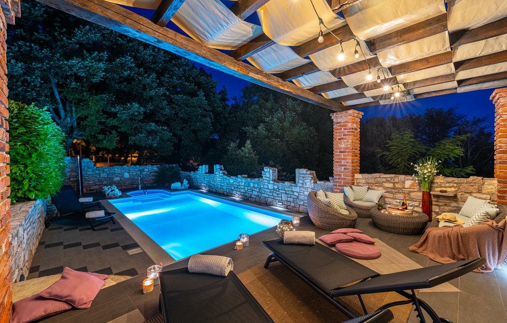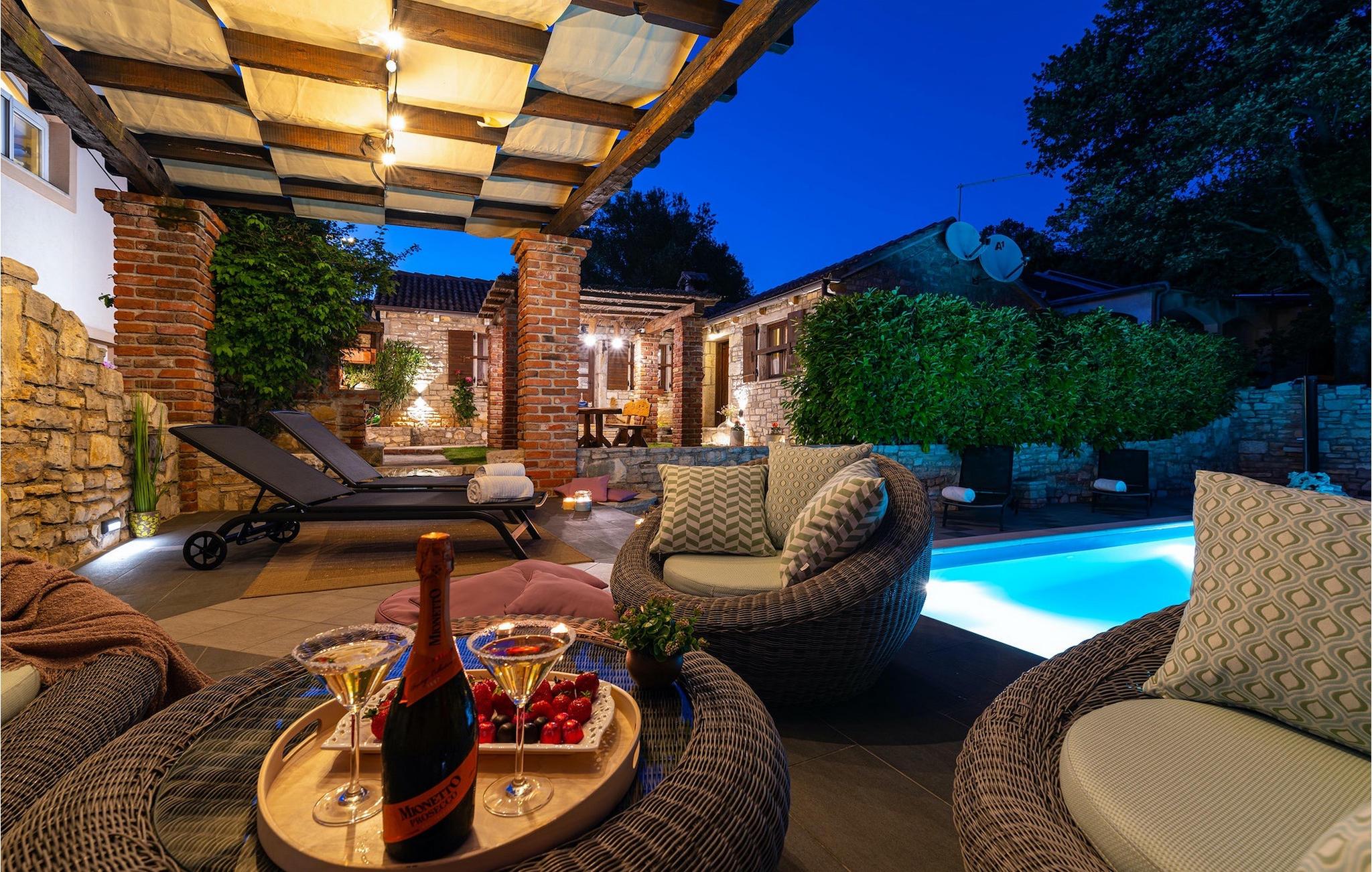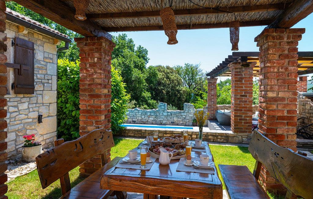 Den dejlige terrasse på Villa Gora har en attraktiv privat pool. Her kan du tage en dukkert og forfriske dig selv efter at have slikket solen på de komfortable liggestole og nydt en kold drink i hånden. Den skyggefulde lounge er det perfekte sted at se bølgerne blidt rulle ind i den fantastiske solnedgang eller nyde din første slurk kaffe om morgenen. På terrassen finder du også en skyggefuld spiseplads samt en kulgrill.