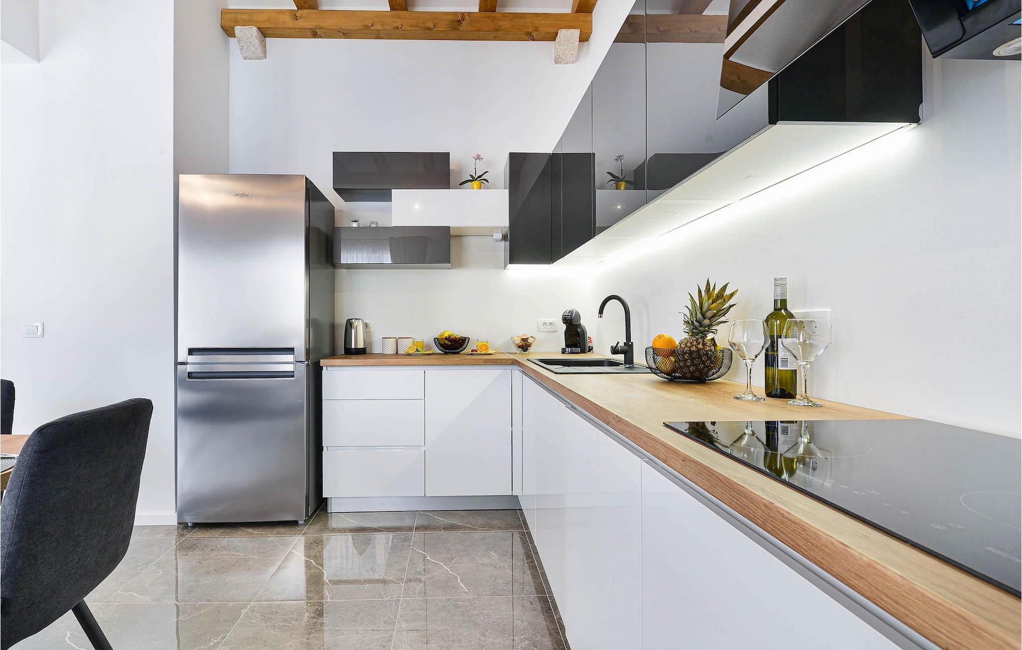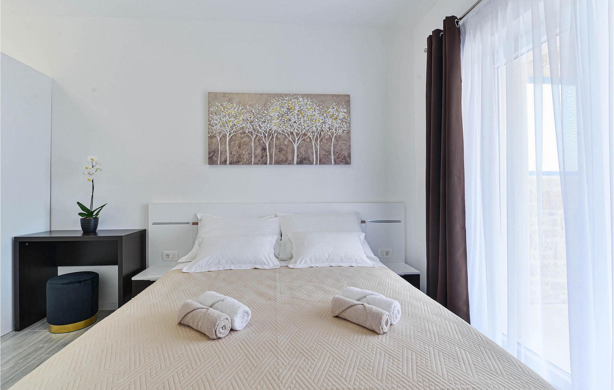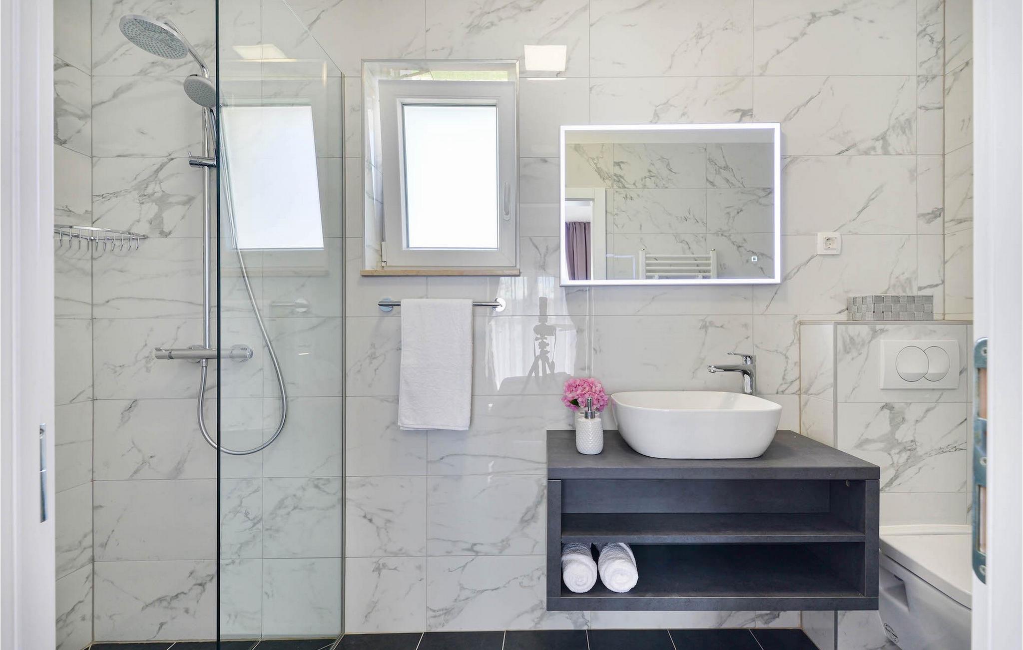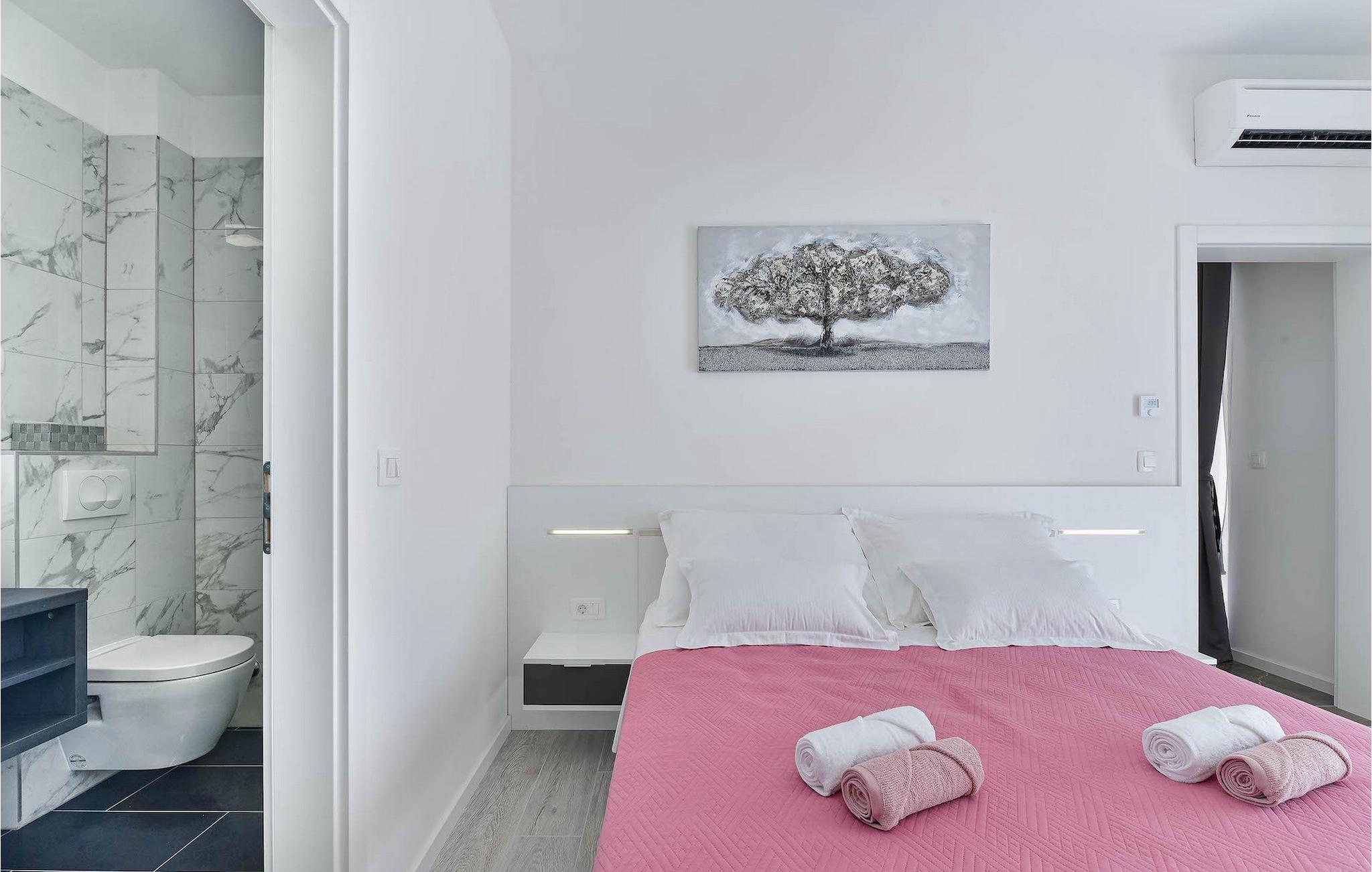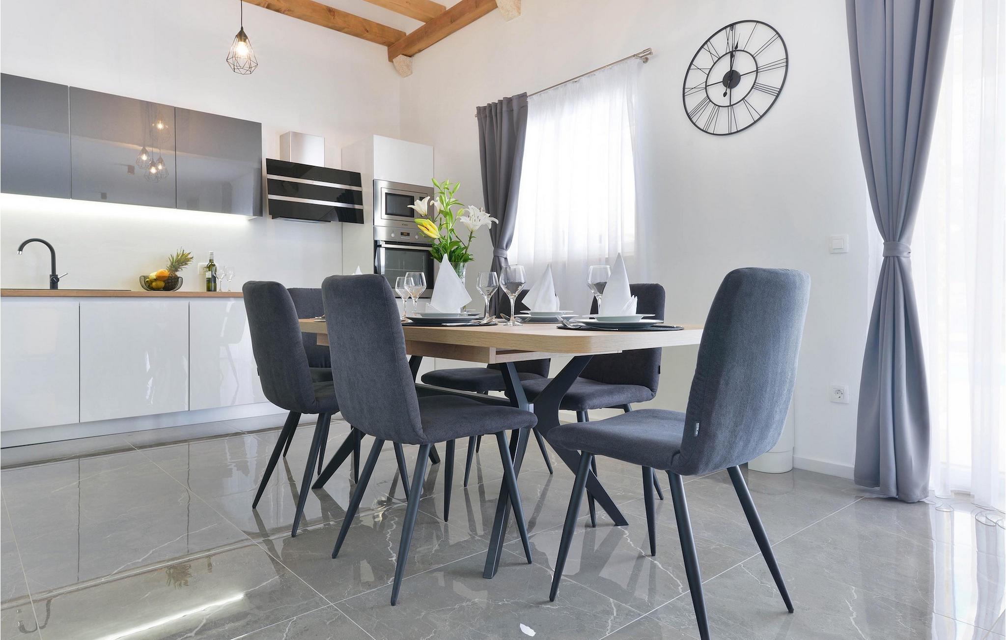 Hvis du leder efter en villa til en fredelig ferie, er Villa Banovi, et stenhus tæt på havet, det ideelle valg for dig. Den charmerende villa byder på tre soveværelser for op til otte gæster. På første sal i villaen er der to soveværelser. Begge værelser er rummelige, lyse og komfortable. Hvert værelse har aircondition, eget badeværelse, dobbeltseng, tv og udgang til balkonen. I stueetagen af villaen finder du et soveværelse med aircondition og eget badeværelse, en dobbeltseng og et tv. Stueetagen byder også på en stue med tv og en sofa, der kan rumme yderligere to personer. Stuen er forbundet med spisestuen og et fuldt udstyret rummeligt køkken i et åbent rum koncept. Hele dette rum har aircondition.