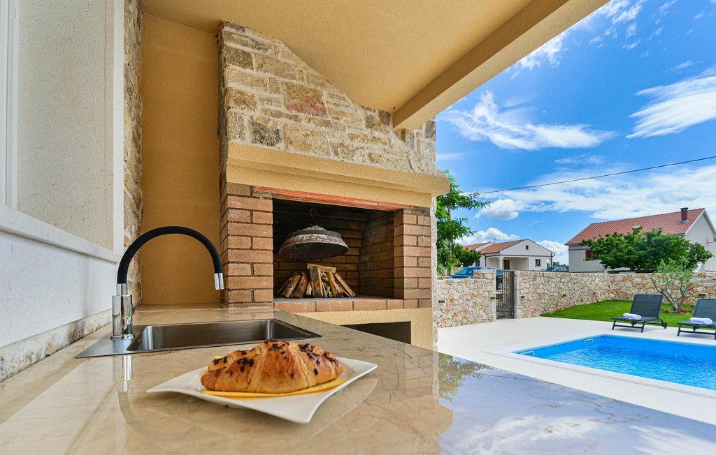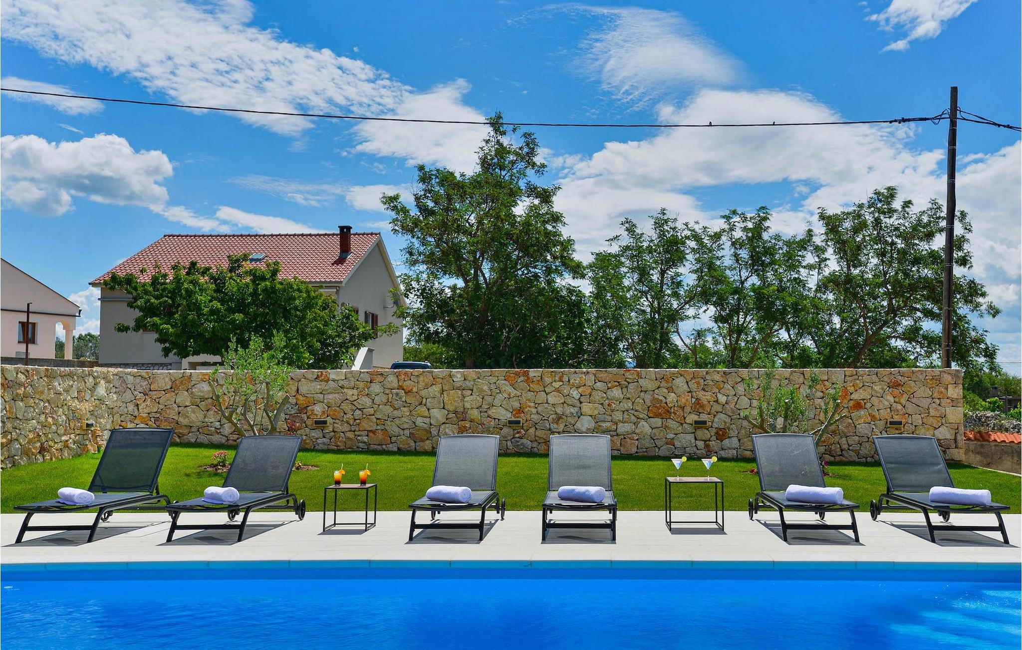 Ved siden af huset er der en overdækket terrasse med grill, hvor du kan tilberede lækre måltider. I villaens have er der swimmingpool og liggestole, hvor du kan slappe af med en bog eller en forfriskende drink, samt et spisebord. Ejendommen er fuldt indhegnet og har privat parkering til 4 biler. Book din bolig i Villa Banovi og tilbring en afslappende ferie med familie og venner.Villa Banovi er beliggende nær Posedarje i Zadars bagland. Udover det kulturelle og historiske tilbud byder Dalmatien på et unikt gastronomisk tilbud, ekstremt berømt i denne del af Europa. Hjemmelavet dalmatisk prosciutto og middelhavsblå muslinger er blot en del af det rige gastronomiske tilbud i denne region. Denne del af Dalmatien er også hjemsted for mange smukke nationalparker og naturparker. I dette område finder du 3 naturparker - Telašcica, Northern Velebit og Vrana Lake, samt 5 nationalparker - Paklenica, Plitvice, Kornati, Krka og Velebit, som gør Zadar til et af de bedste turistmål i Kroatien. Den berømte Alfred Hitchcock sagde engang, at den smukkeste solnedgang i verden er i Zadar. Benyt lejligheden til at besøge denne arkitektoniske perle ved Adriaterhavet og nyd den kulturelle og historiske rigdom i den gamle bydel. Gå ikke glip af Havorgelets naturlige symfoni og lysets spil ved Hilsen til Solen med en slurk af den berømte Zadar Maraschino - en yndlingsdrink for de lokale. I nærheden ligger øen Pag, berømt for sin Pag-ost, blonder og gamle olivenlunde.