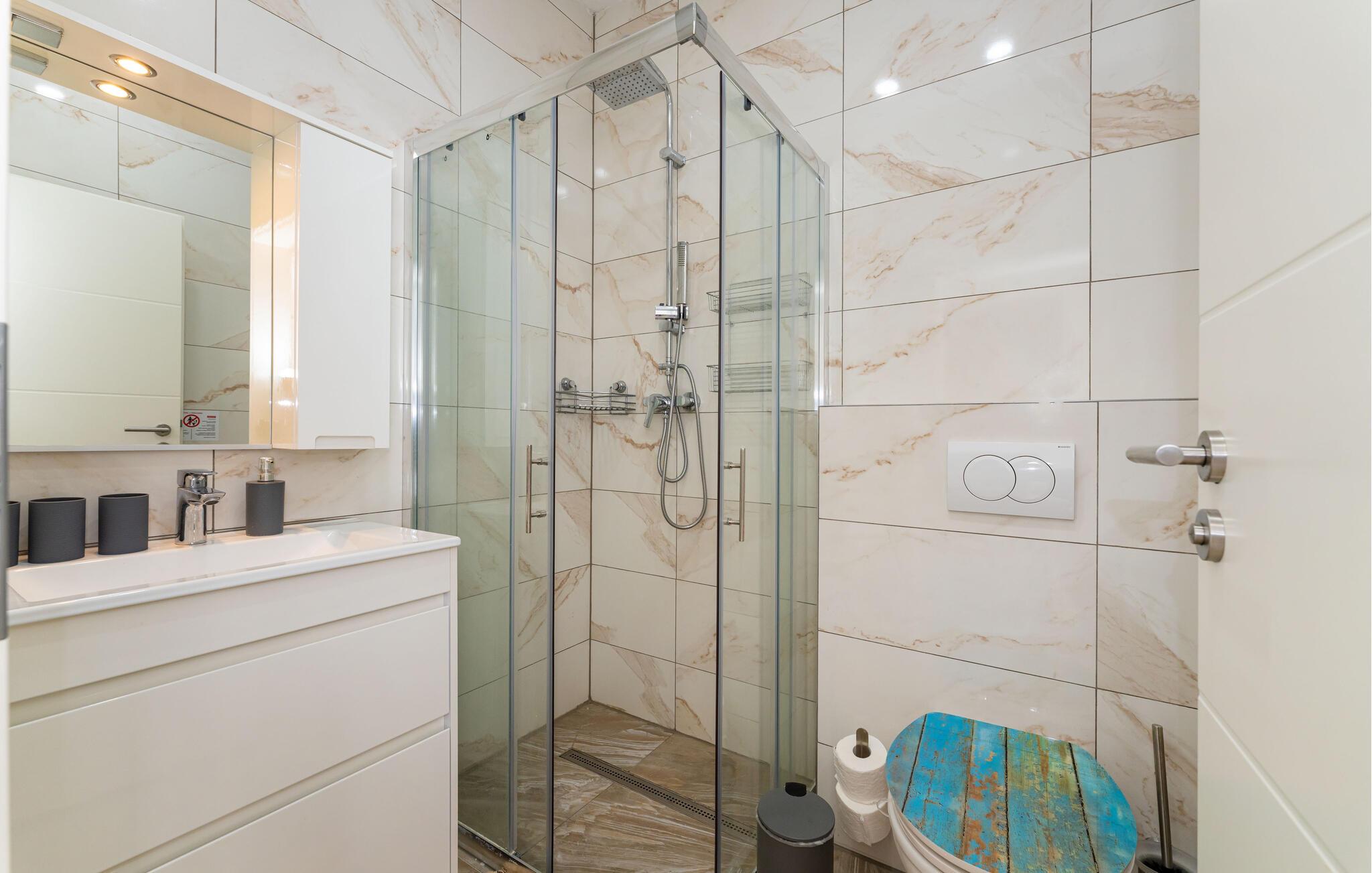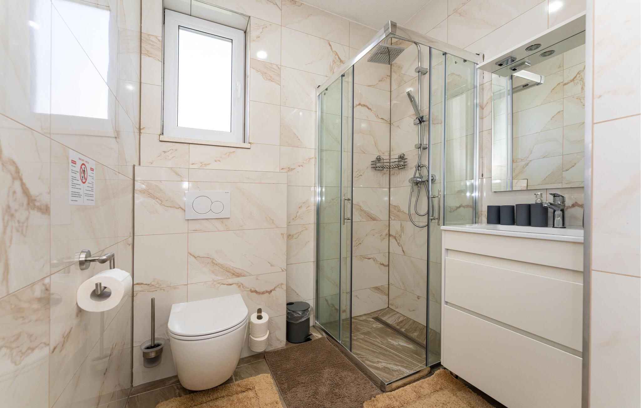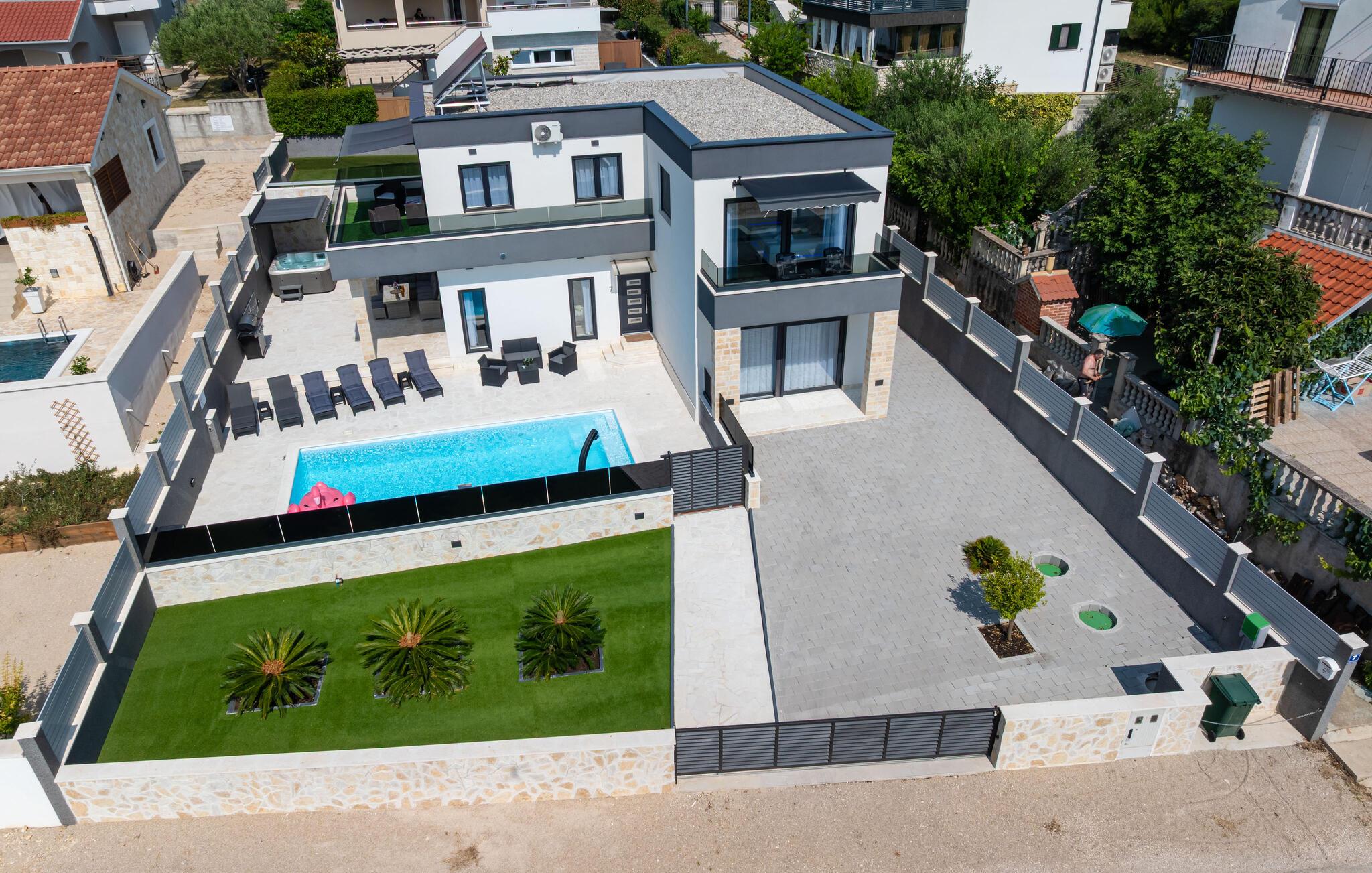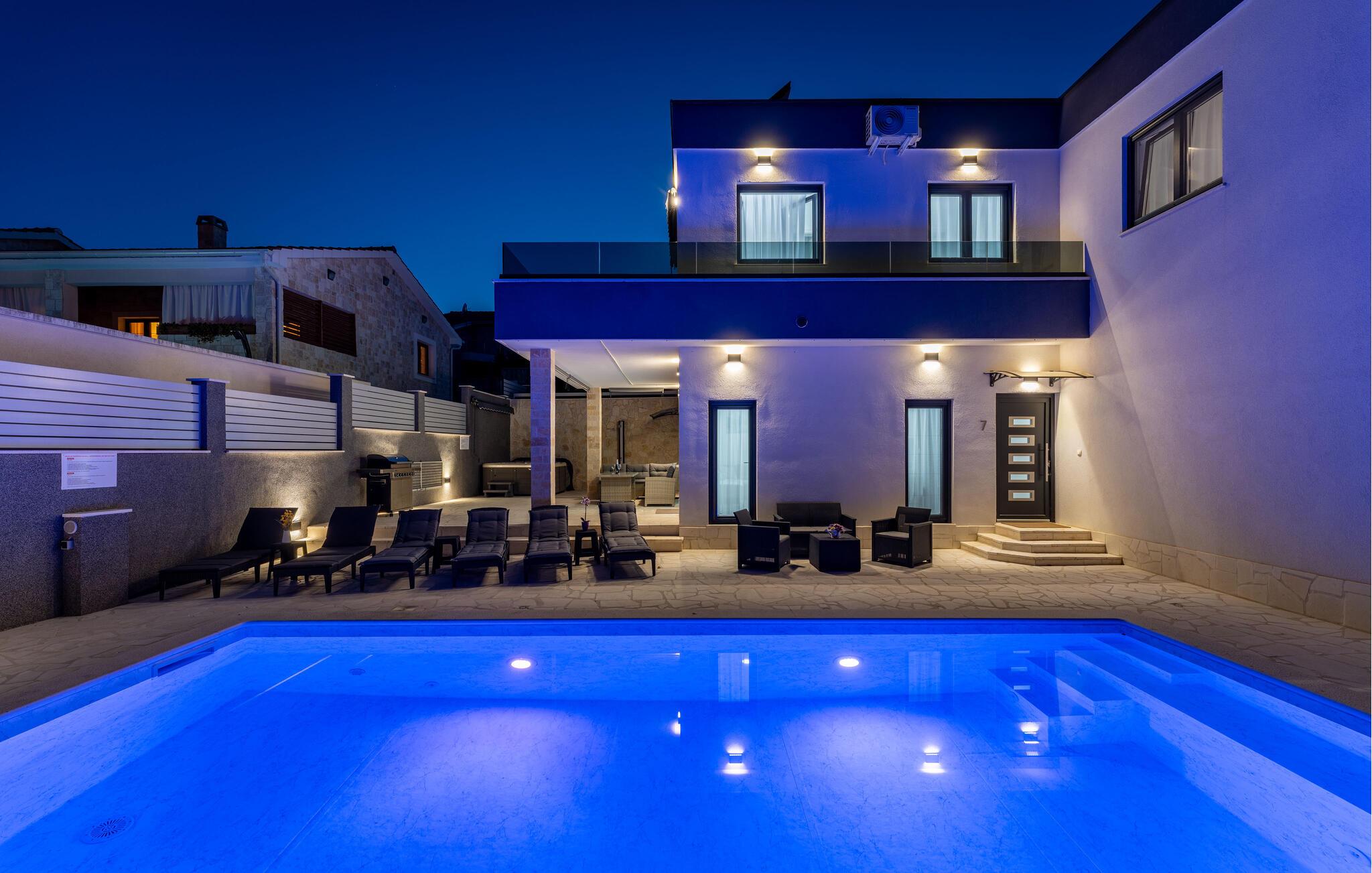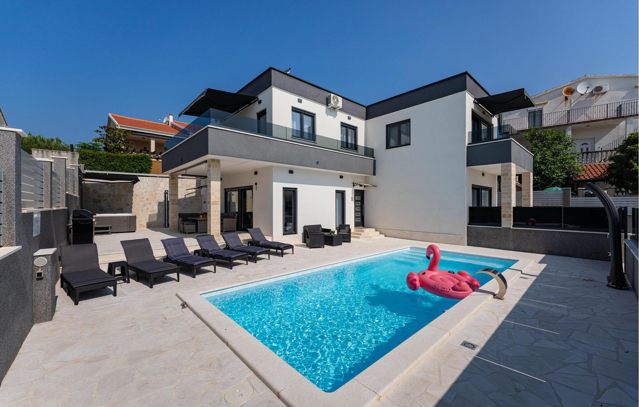 Denne rummelige villa vil forkæle jer med sit interiør med lækre kvalitetsløsninger og sin behagelige boligatmosfære. Fremstil kroatiske retter i det åbne køkken, mens I snakker med familien, og nyd stilfulde måltider ved det indbydende spisebord. Om aftenen kan I hygge jer sammen i den store sofagruppe og streame en spændende film.