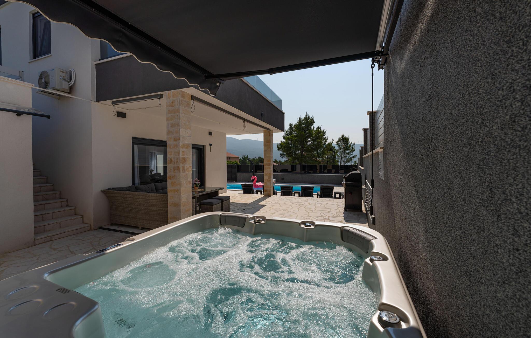 Nyd en luksuriøs ferie i dette moderne feriehus med pool, spabad og havudsigt.