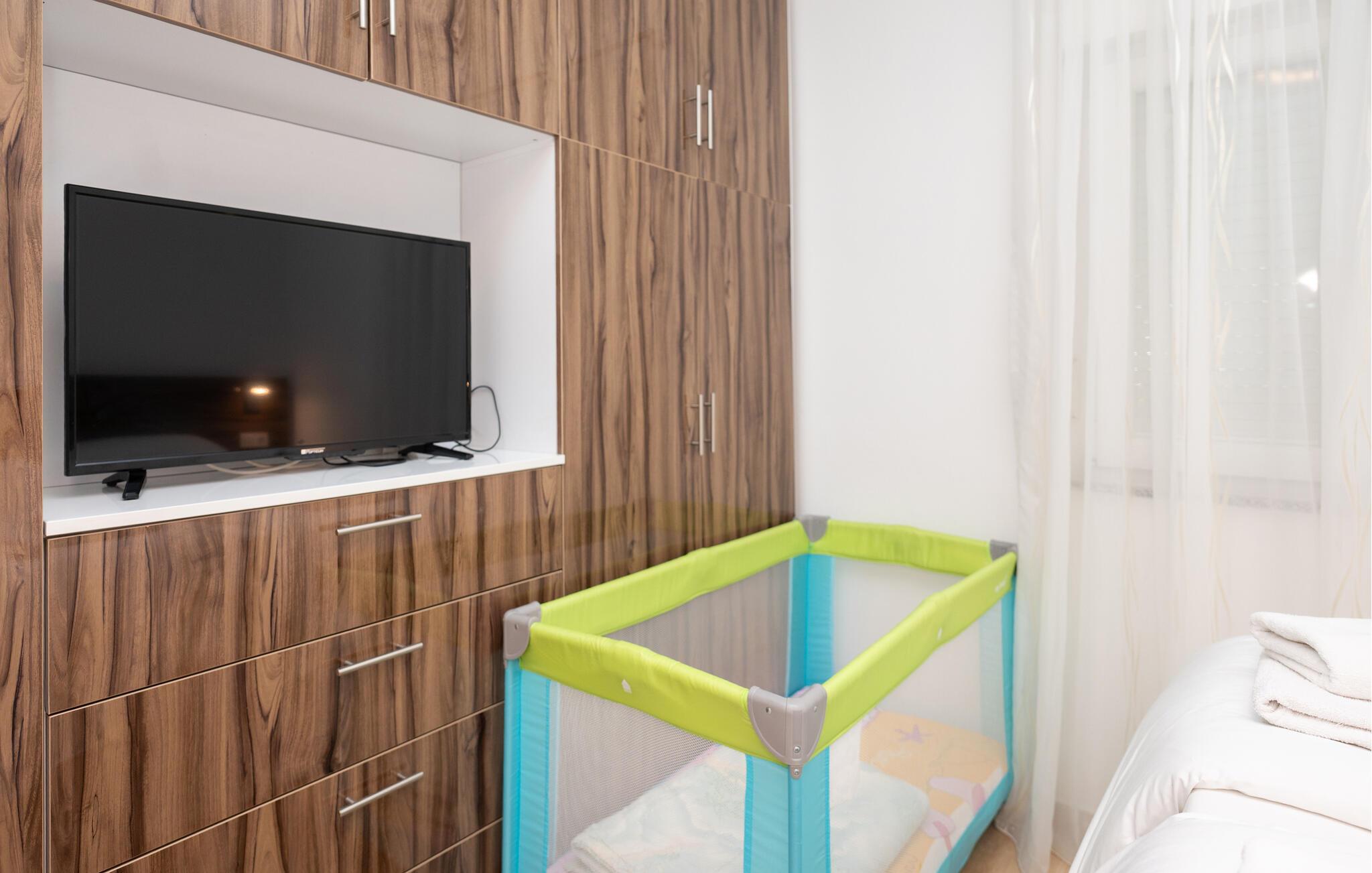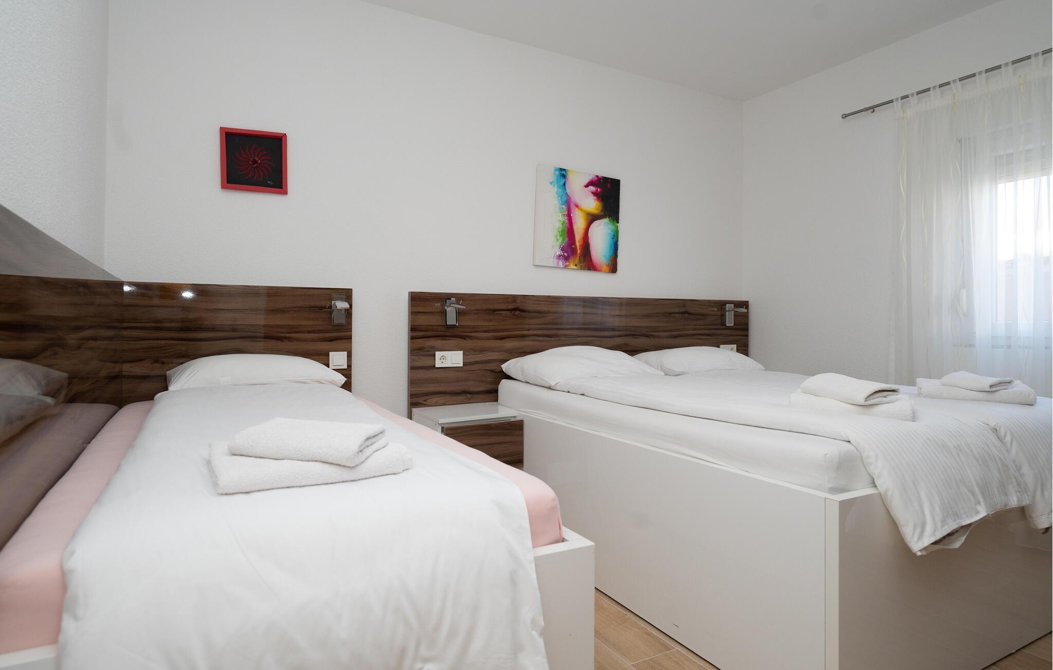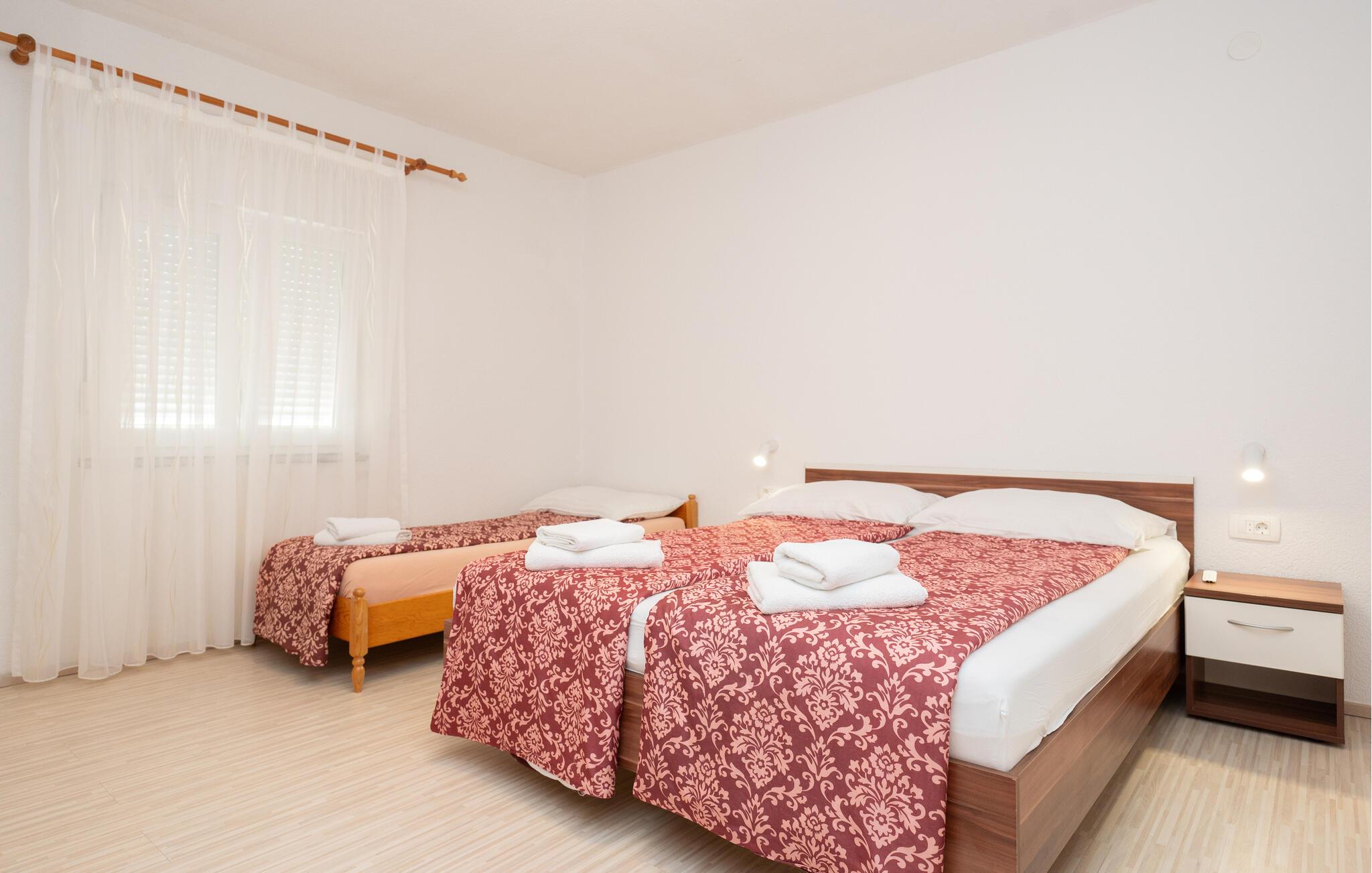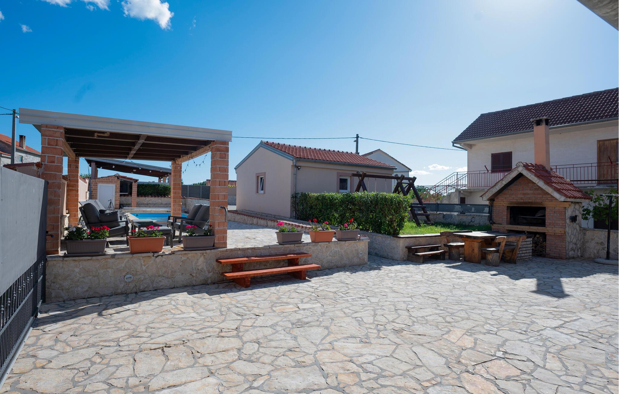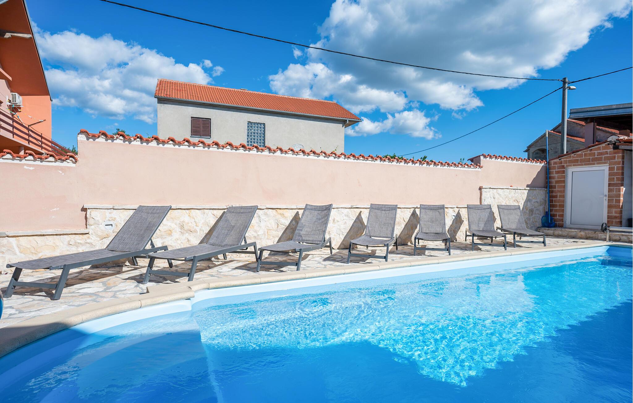 Tilbring en dejlig ferie i dette moderne feriehus med pool. Huset er perfekt, hvis I rejser med en stor familie eller en gruppe venner. Den lyse og indbydende atmosfære indbyder til afslappende timer med at spille kort, se tv eller nyde et hyggeligt måltid sammen. Tilbered lækre måltider i det moderne køkken, mens jeres yndlingsmusik spiller sagte i baggrunden. Spis morgenmad udenfor og nyd den fredelige atmosfære, mens I nyder jeres første kop kaffe. Tag en forfriskende dukkert i poolen og spil en omgang vandpolo. Mens børnene leger frit, kan I fordybe jer i jeres ferielæsning. Om aftenen inviterer den afslappede atmosfære jer til at afslutte dagen med en lækker grillfest og en flaske vin. I Pridraga kan I nyde de rolige strande, hvor I kan svømme i det azurblå Adriaterhav, solbade eller blot nyde atmosfæren. Udforsk det omkringliggende område med kyststier, afsondrede bugter og fantastiske udsigtspunkter på afslappende gåture. Tag desuden en tur til Zadar, hvor den historiske gamle bydel, lyden af Havorglet og middelhavsstemningen på promenaden skaber en vidunderlig feriestemning.