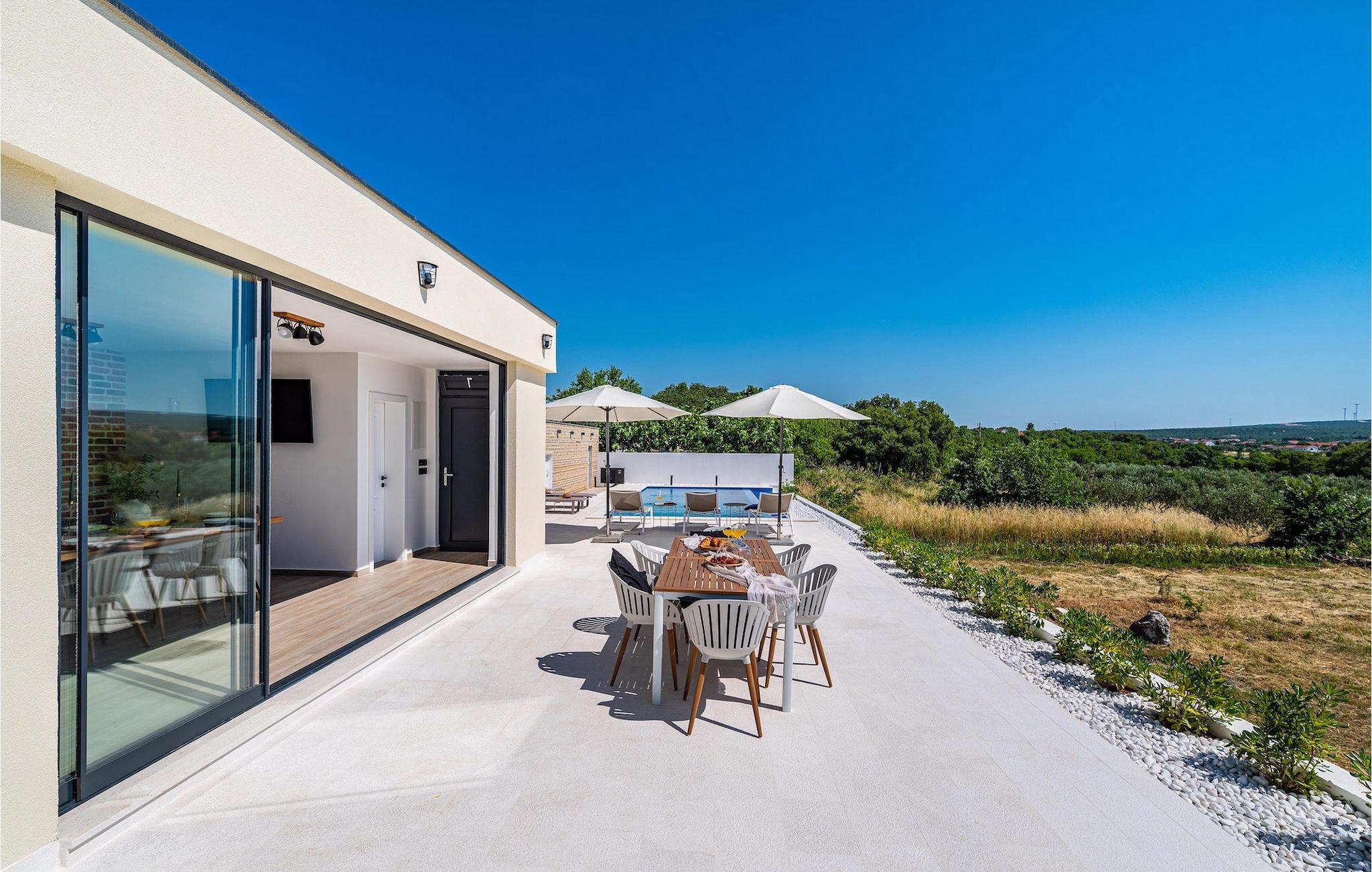 Moderne villa Mimi nær Zadar i smukke Dalmatien er ideel til familier, der ønsker en afslappende ferie tæt på alle faciliteter.