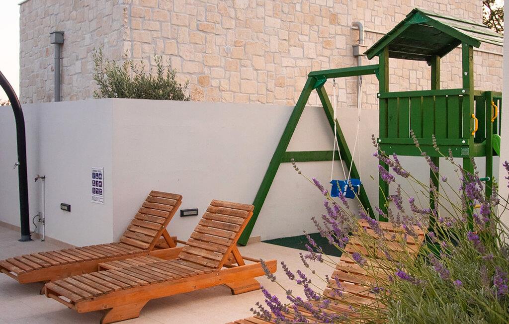 Slap af ved poolen og gør det behageligt på en af ??liggestolene med en kølig drink. Tag en forfriskende dukkert eller nyd et måltid i det skyggefulde siddeområde på terrassen. Den lille legeplads med rutsjebane tilbyder sjov og underholdning for børnene. Om aftenen kan I afslutte dagen med et glas vin og nyde den fredelige middelhavsatmosfære.