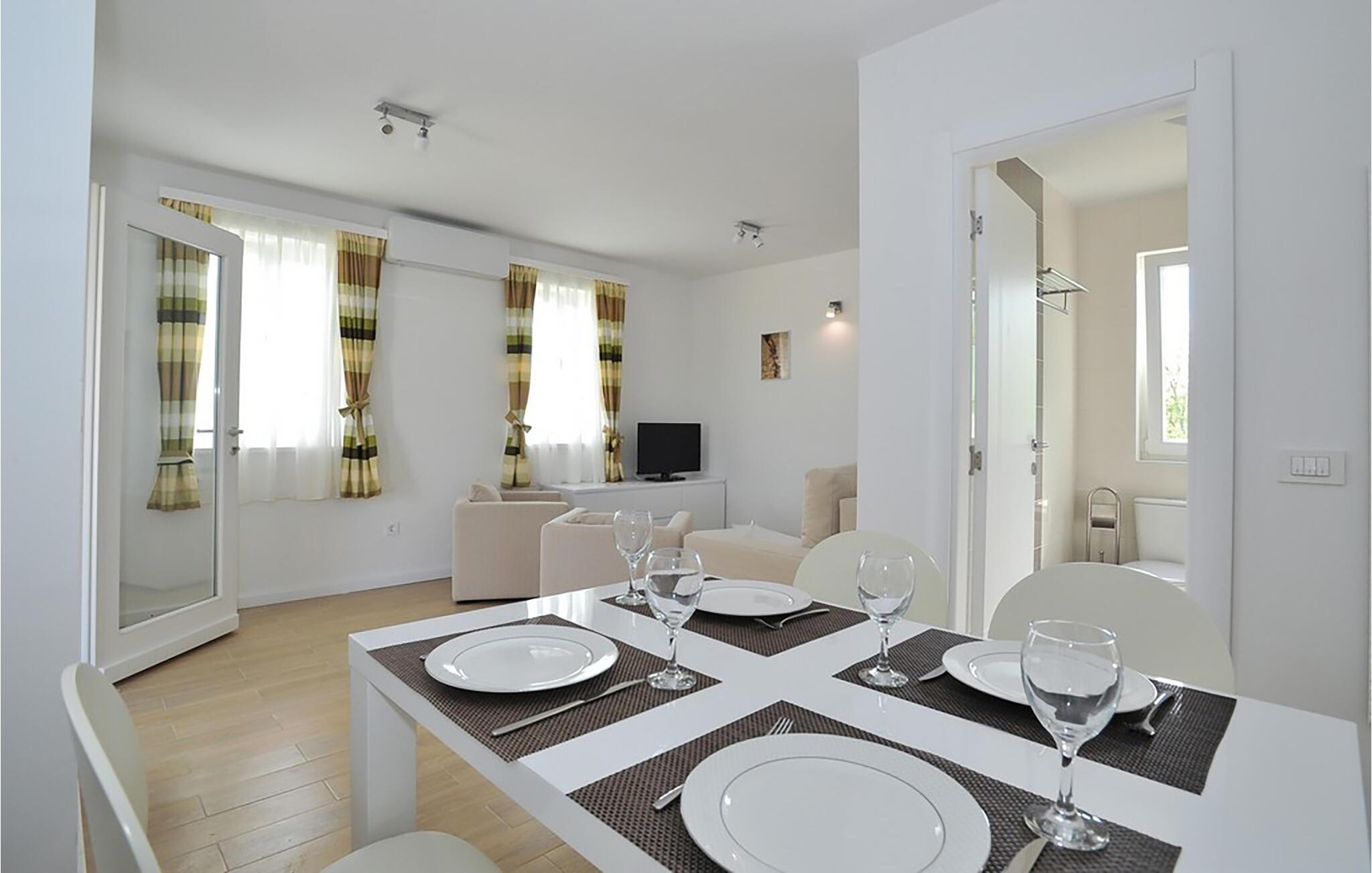 Nyd en solrig ferie i denne luksuriøse ferielejlighed med adgang til poolen. Kun få skridt fra stranden byder denne moderne lejlighed jer velkommen med sit komfortable og velholdte interiør. Tilbered jeres yndlingsretter med lokale råvarer, nyd harmoniske måltider ved det indbydende spisebord, og efter en solrig dag på stranden kan I slappe af på sofaen med et brætspil eller streame en god film. Jeres terrasse er det perfekte sted til en lækker morgenmad udenfor. Forfrisk jer selv i den fælles pool, lad jeres børn have det sjovt på den attraktive legeplads, og nyd en grillfest ved solnedgang. Udforsk den gamle bydel i Zadar med dens romerske ruiner, det berømte Havorgel og lysshowet "Hilsen til solen". Tag en bådtur til Kornati-øerne og nyd solen på de fine sandstrande i Privlaka. Tag på en kajaktur gennem den imponerende Zrmanja-flodkløft, oplev den charmerende by Nin med dens saltsydeværk og verdens mindste katedral, og stop ved en traditionel konoba.