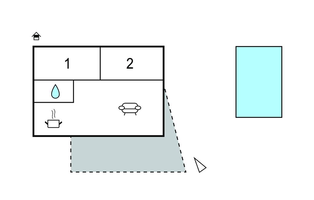 Opholdsstue/køkken 30m2 - 2 Sovepladser. (Sofa, madras eller lignende).