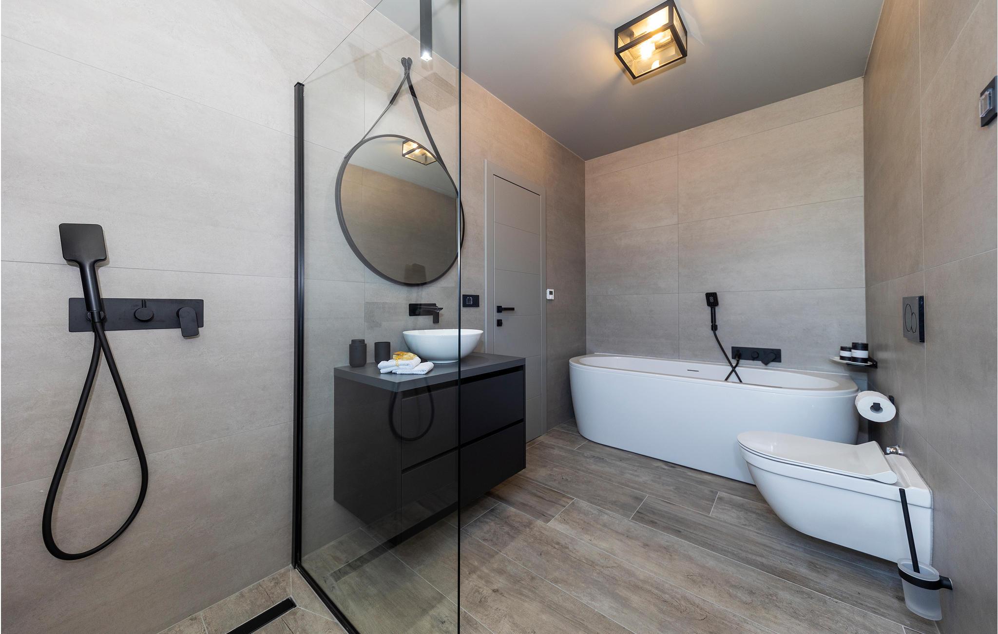 - WC. Varmt og koldt vand, Bruser og badekar