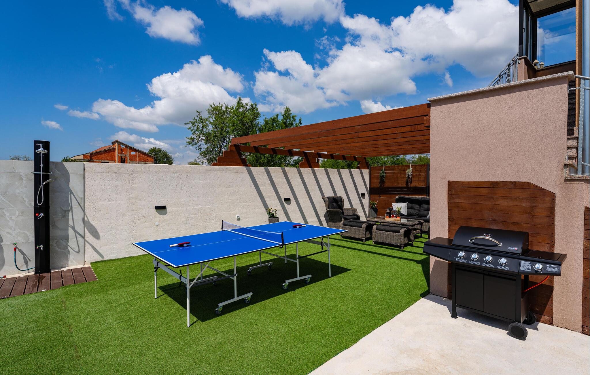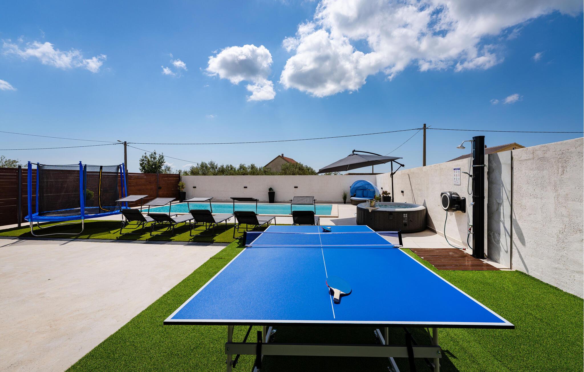 På den indhegnede grund vil børnene nyde adskillige legemuligheder, mens I genoplader batterierne på liggestolen og forfrisker jer i den skønne pool. Dediker tid til familien under en bordtennisturnering og læn jer tilbage med en god bog i loungen.