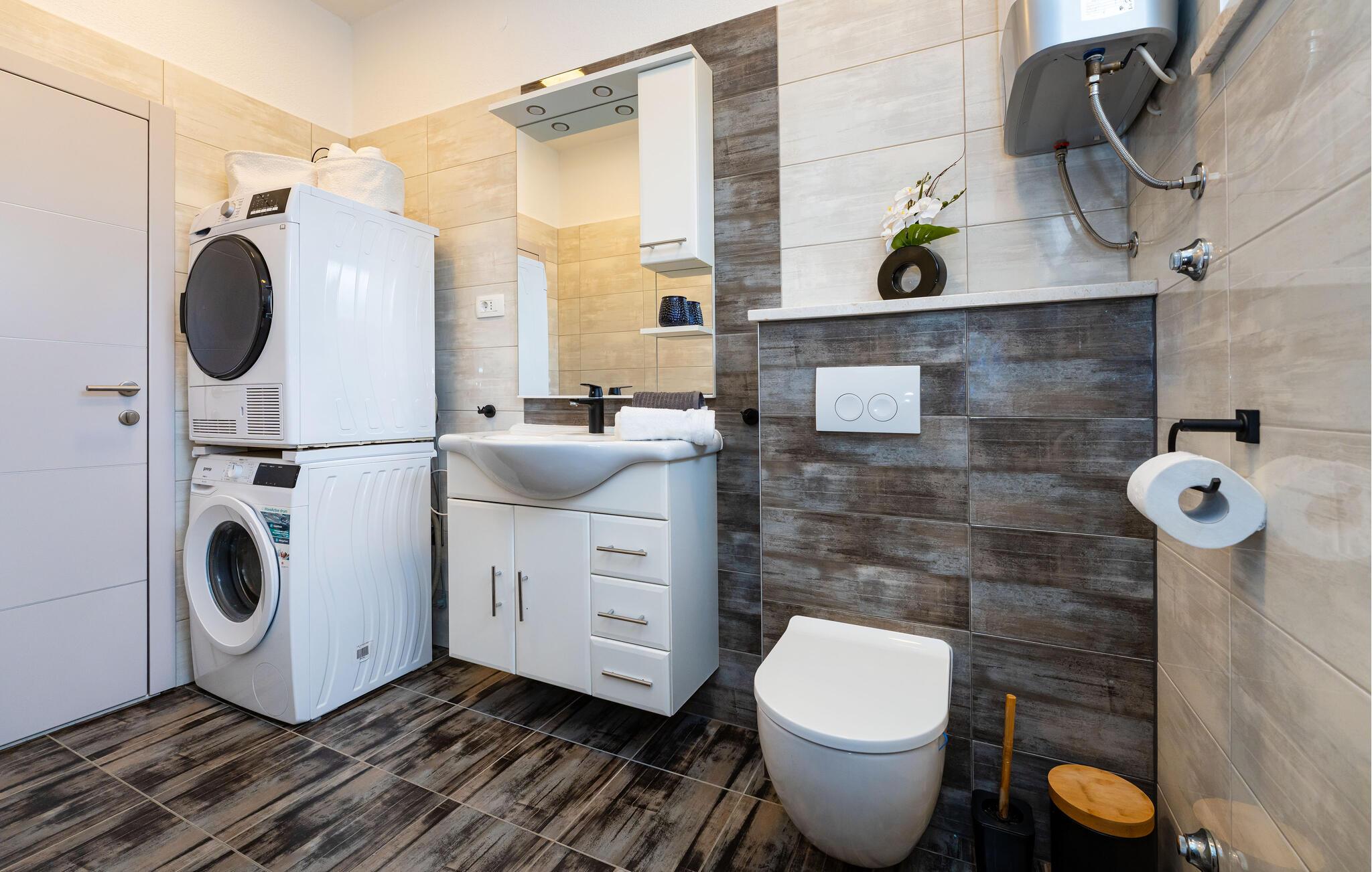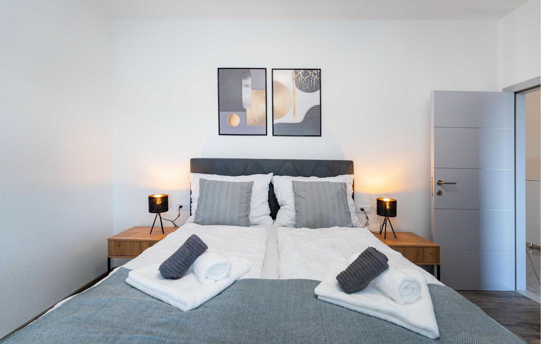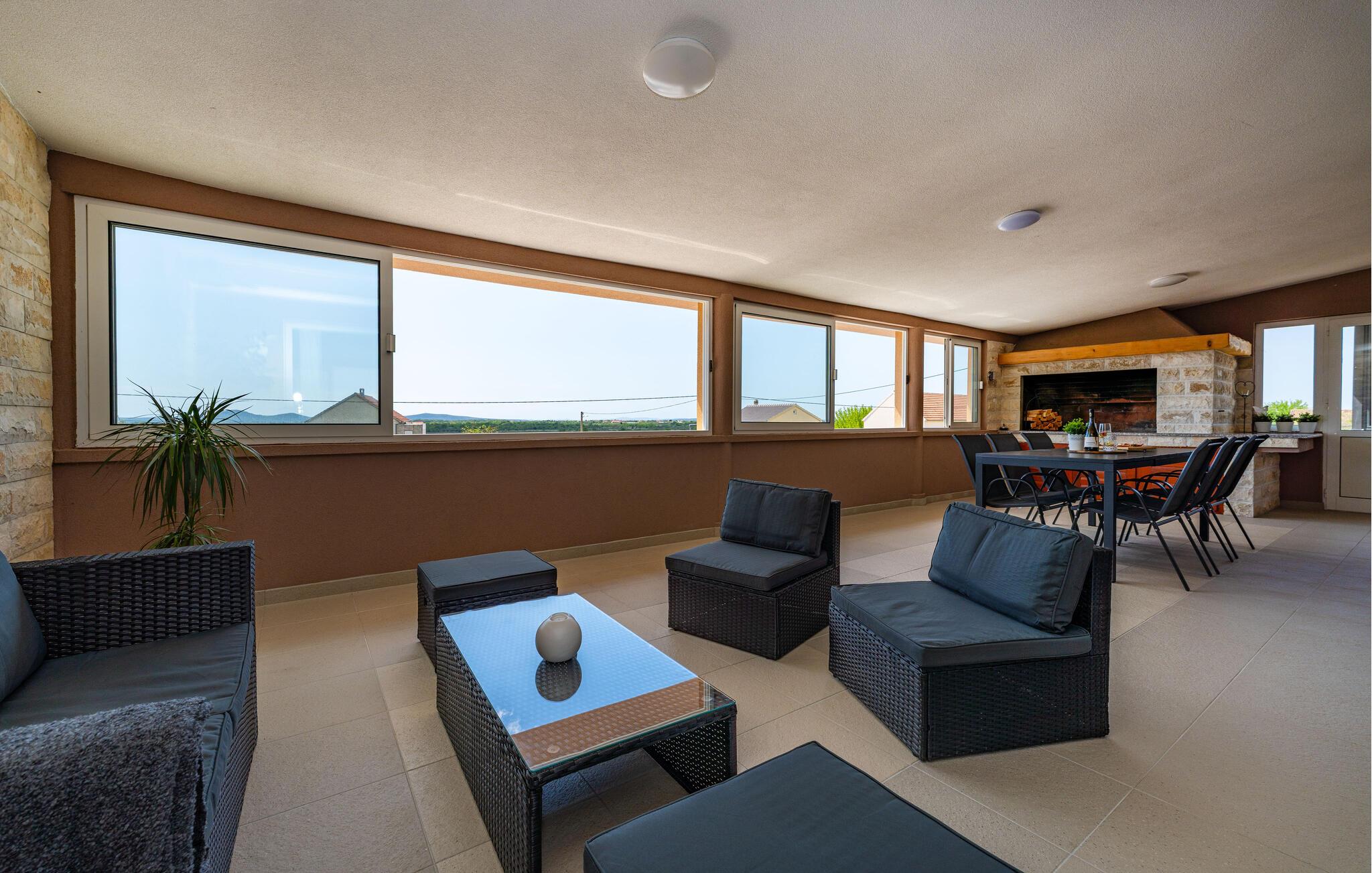 Dette rummelige og smagfulde feriehus forkæler hele familien med charmerende ekstraudstyr, der vil gøre jeres ferie til en behagelig og afslappende oplevelse. Nyd hyggelige måltider ved det stilfulde spisebord, snak over et glas vin i det indbydende grillområde, og stream en film, som alle nyder om aftenen, i det store sofaområde.