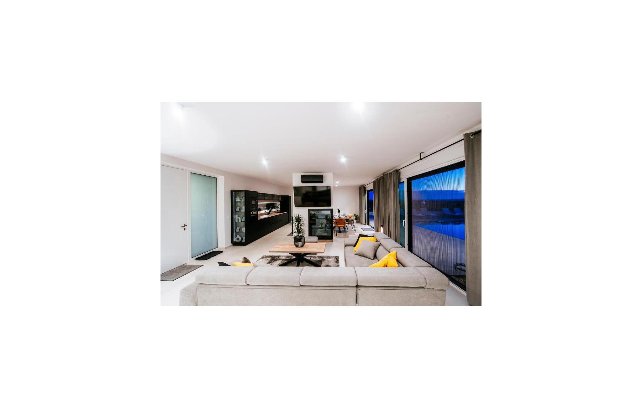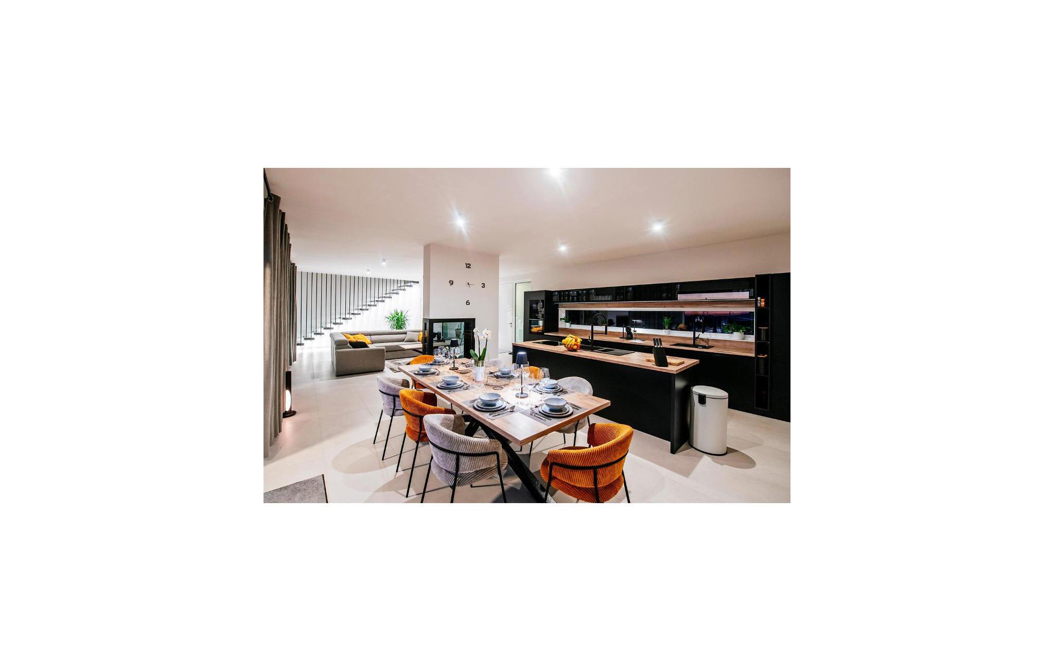 Denne moderne bolig byder jer velkommen med stilfuldt design og en elegant indrettet indendørsatmosfære. Tilbered kulinariske lækkerier i det åbne køkken, og nyd jeres fælles måltider i den indbydende spisestue. Slap af i den rummelige stue på den komfortable sofa, se en film, eller nyd den behagelige stemning med et glas vin.