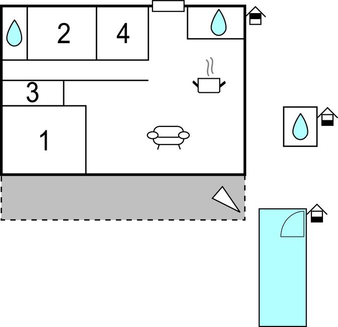 Opholdsstue/køkken - 1 Soveplads. (Sofa, madras eller lignende).