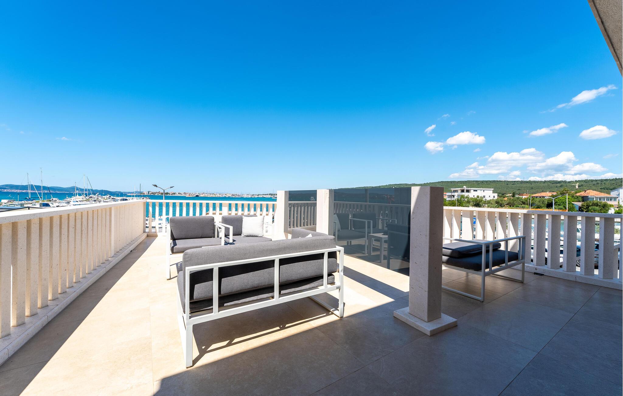 Nyd solen på terrassen med en fantastisk udsigt, og afslut jeres dejlige ferie med afslapning under åben himmel.