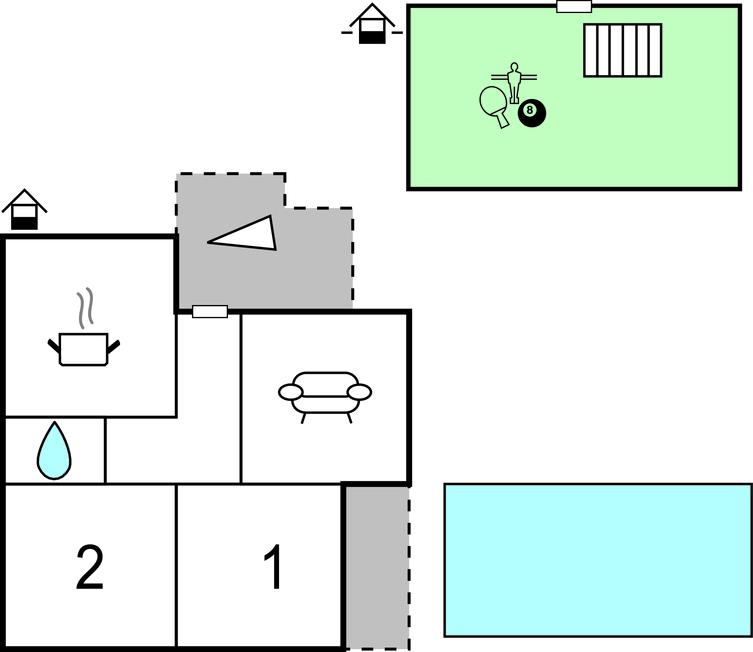 Opholdsstue - 2 Sovepladser. (Sofa, madras eller lignende).