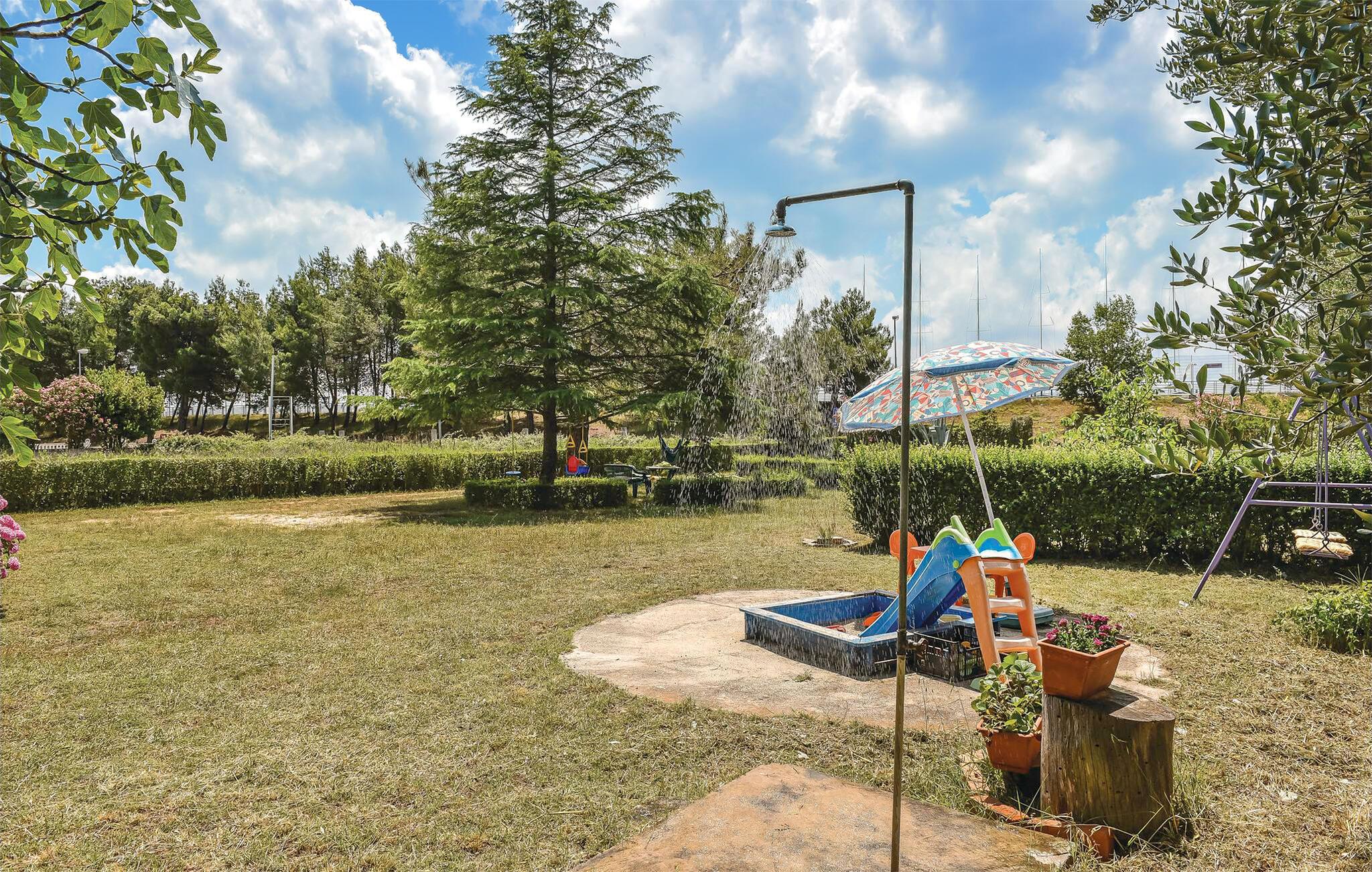 Med denne lejlighed får I en bekvem base nær gode bademuligheder og restauranter. Den nærmeste strand (grus) ligger kun 150 meter fra lejligheden, hvilket gør dejlige badeture nemt tilgængelige og uforpligtende. Stå op og spis morgenmad på terrassen, pak strandtasken og trask afsted mod det skønne badevand! Om aftenen kan I spise på restaurant i byen og gå en smuk tur langs vandet til en fortryllende solnedgang. Eller I kan blive hjemme og tilberede et lækkert feriemåltid selv på fællesgrillen. Den store sø indbyder til flotte gåture langs vandkanten, og har I børn, så er der en legeplads ganske få skridt fra lejligheden.