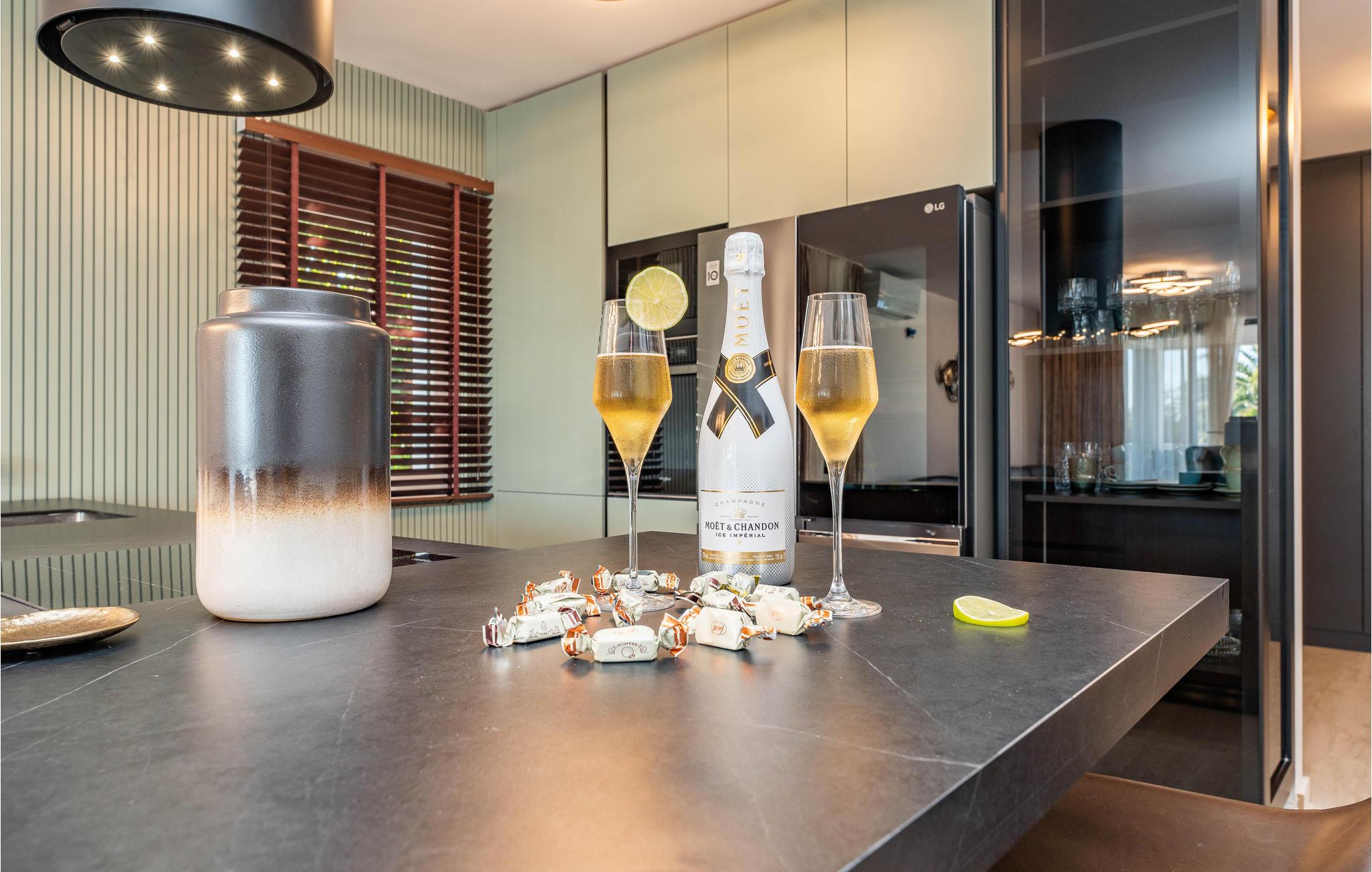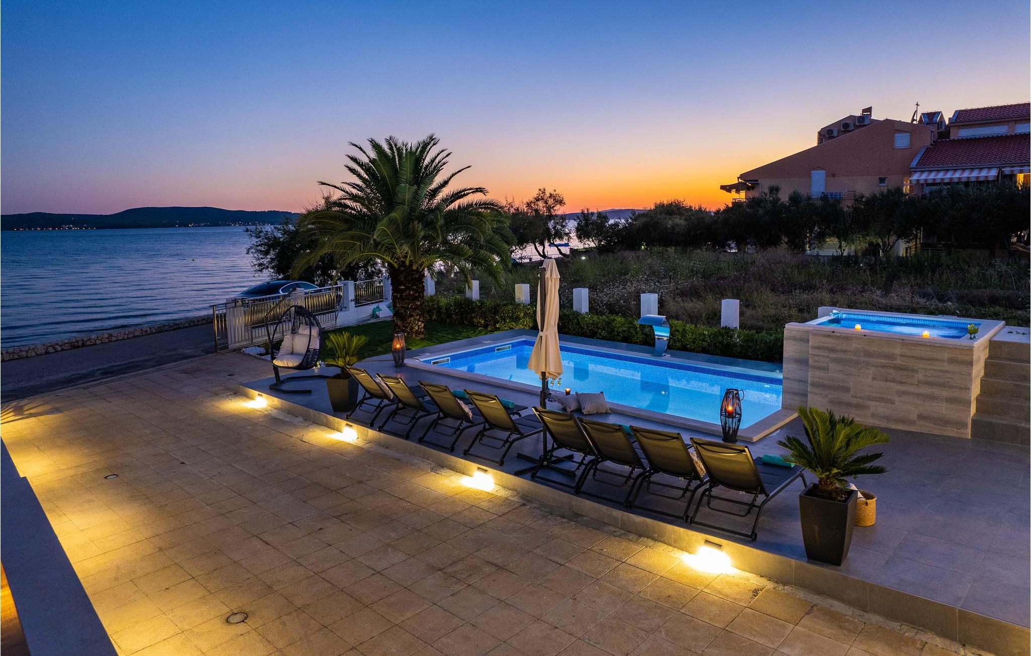 Gør jeres drømme til virkelighed og hold en dejlig ferie med ekstra høj komfort lige ved havet. Husets smagfulde indretning lover jer en helt særlig boligoplevelse. Bløde, varme farver og møbler af høj kvalitet fuldender huset. Nyd afslappende nætter i de komfortable soveværelser, hvor I vågner op til en dejlig havudsigt. Snup en bog fra læsehjørnet med udenlandsk litteratur på 1. sal og læs på altanen. Spis morgenmad sammen med jeres familie på terrassen om morgenen og tag derefter en dukkert i poolen, spabadet eller havet. Denne geniale beliggenhed garanterer ren afslapning.