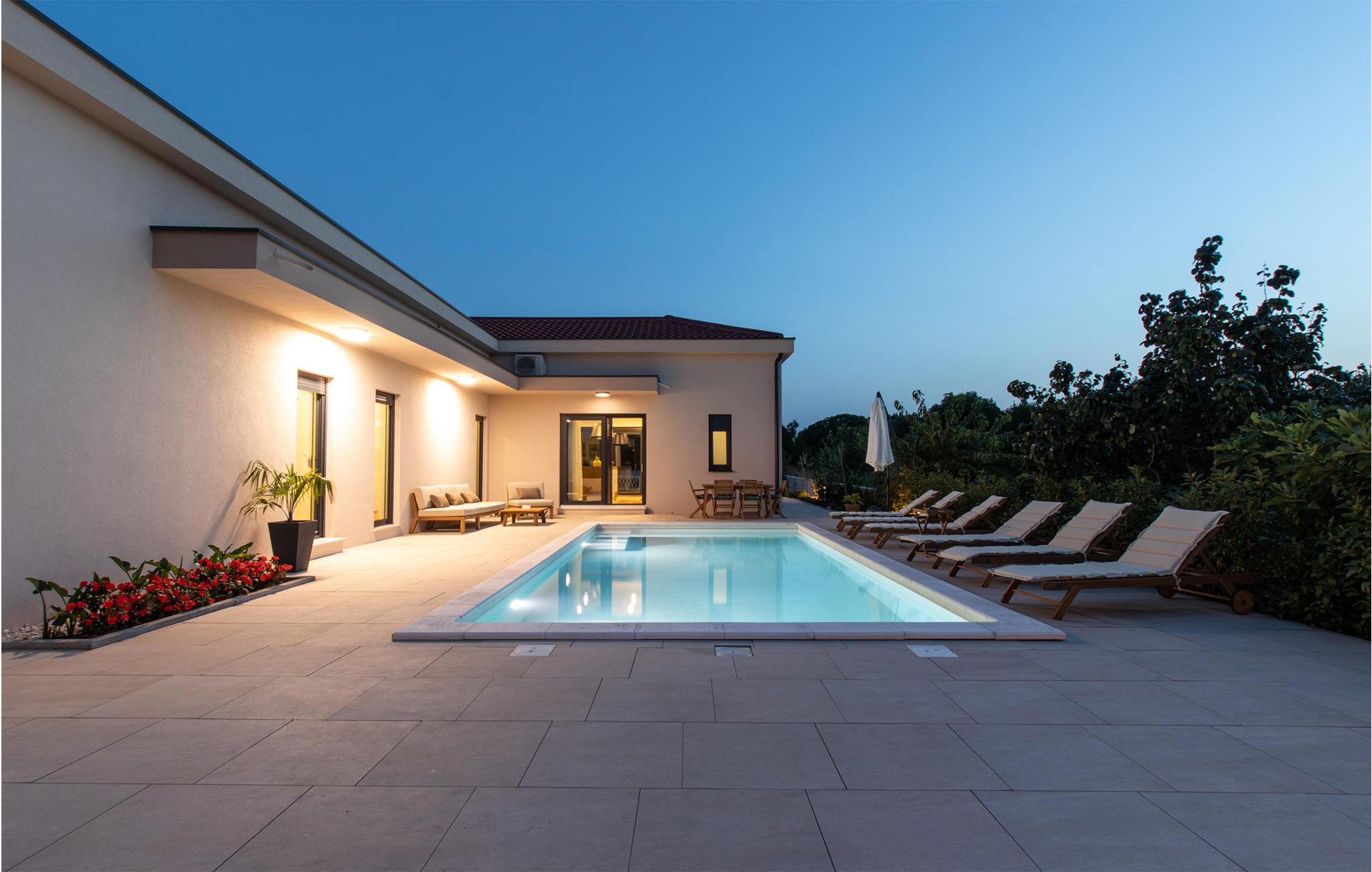 Dette moderne og store feriehus med swimmingpool byder velkommen nær en smuk stenstrand. Dette smukke hus er en sand oase af fred og afslapning. Med et højt niveau af komfort og smagfuld indretning kan du finde dig godt tilpas her og nyde dine feriedage fuldt ud i huset i stueetagen. Hobbykøkkener kan svinge deres kogeskeer i det moderne køkken og se dine børn lege ved spisebordet. I kan også glæde jer til haven med legehus og swimmingpoolen, som indbyder til at bade, plaske rundt og solbade. Nyd et lejrbål om aftenen og kig op på stjernehimlen. Gå til stranden og nyd havet og solen, gåafstand til restauranter og shopping. Besøg den fortryllende by Zadar, hvis historiske gamle bydel udfolder sin særlige charme i aftentimerne, når den smart placerede belysning bader væggene i et blødt lys. Vend hjem udhvilet og med mange gode oplevelser!