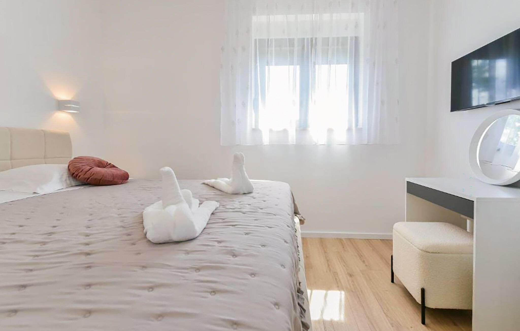 Gå den hyggelige tur til stranden og nyd det klare vand og den afslappede atmosfære i Zadar-Sukošan. Tilbring fredelige timer ved havet, svøm i Adriaterhavet eller hold en picnic på stranden. Oplev byens marina, caféer og restauranter, alt sammen perfekt til en afslappende pause. For en forandring af tempoet kan I tage en tur til den nærliggende by Zadars historiske gamle bydel og livlige promenade.