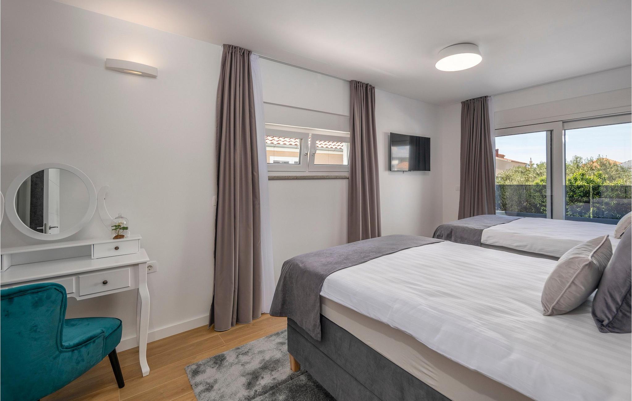 Udnyt det brede udvalg af fritids- og kulturelle aktiviteter i Sukosan. Gå en tur gennem den historiske gamle bydel i Zadar med dens romerske ruiner, det berømte Havorgel og skulpturen "Hilsen til solen", og tag en bådtur til Kornatiøerne, hvor I kan svømme og snorkle i krystalklart vand. Solbad på de blidt skrånende sandstrande, prøv vandsportsgrene som kitesurfing eller stand-up paddleboarding, og prøv dalmatiske specialiteter på farverige markeder eller i traditionelle taverner.