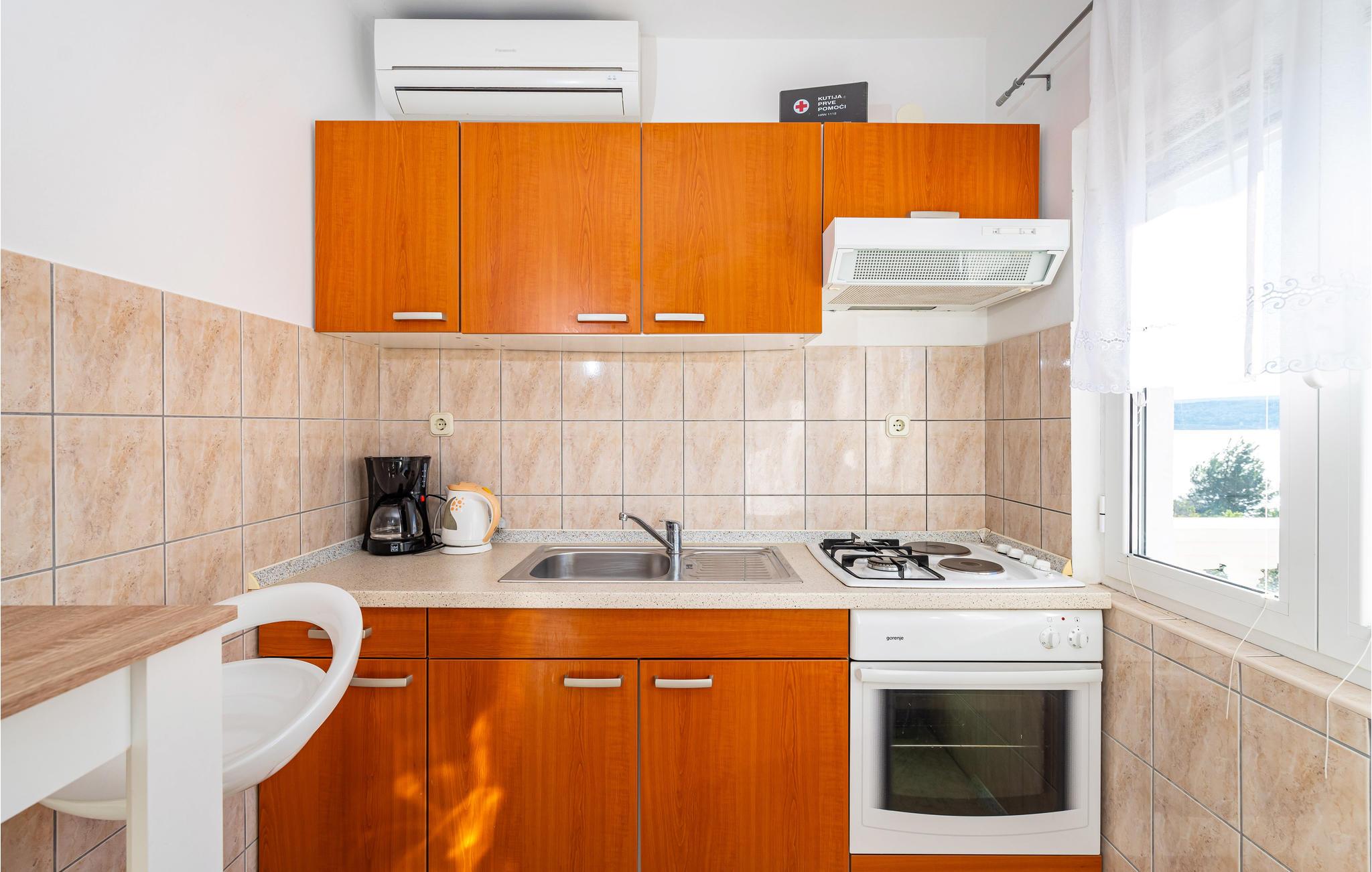 I denne smagfuldt og moderne indrettede bolig er I kun få skridt væk fra vandet. Fra den rummelige terrasse kan I nyde den friske luft og udsigten til den klare blå sø på alle tider af dagen og solbade i fred og ro. I husets gårdhave er der en fælles grill, hvor I kan tilberede en lækker grillmiddag til jeres familie. Nyd de varme aftentimer på Balkan.