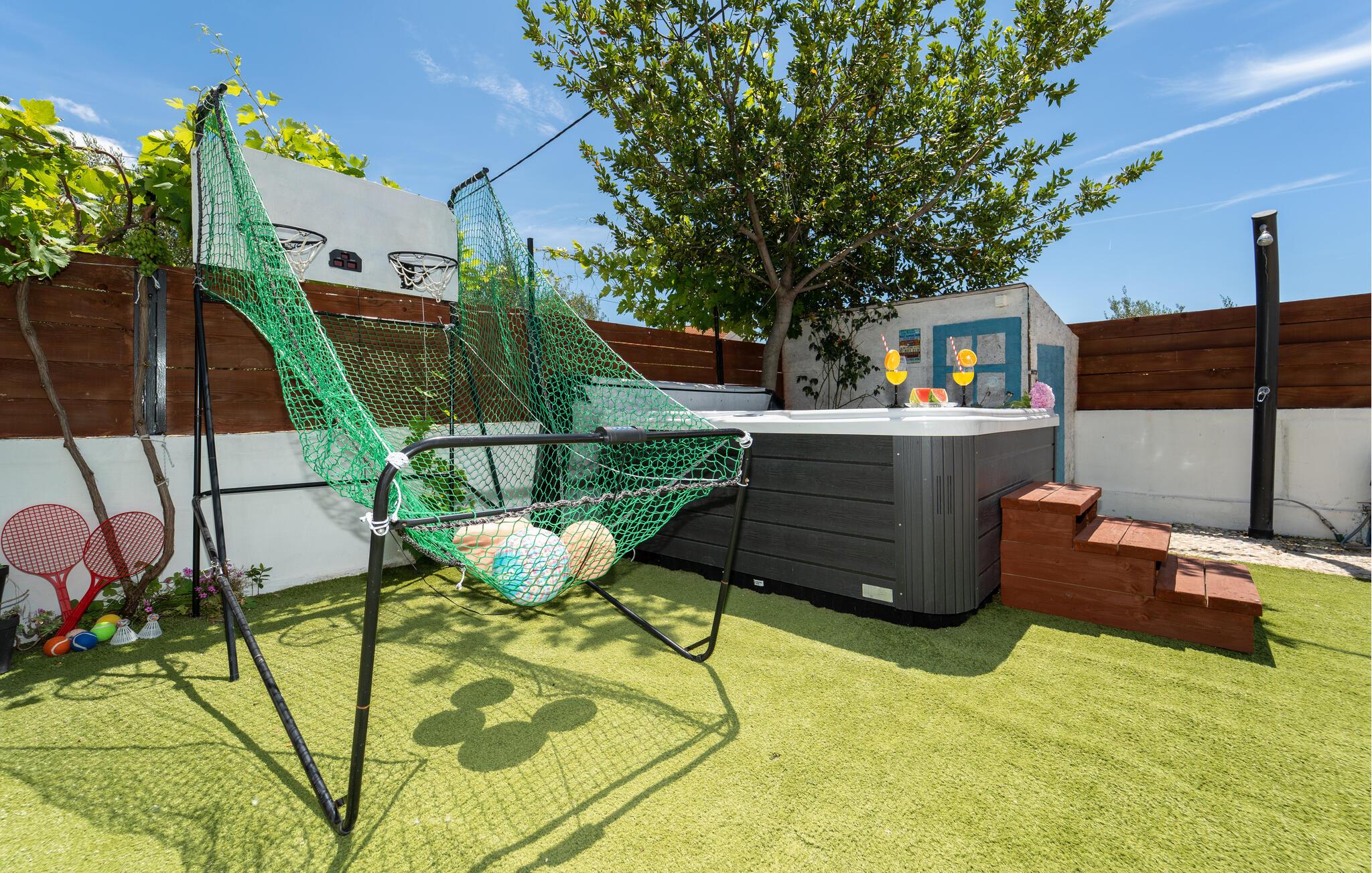 Denne komfortable feriebolig med swimmingpool, hvortil en udendørs trappe fører til, ligger i den lille by Tinj, ved siden af Biograd.