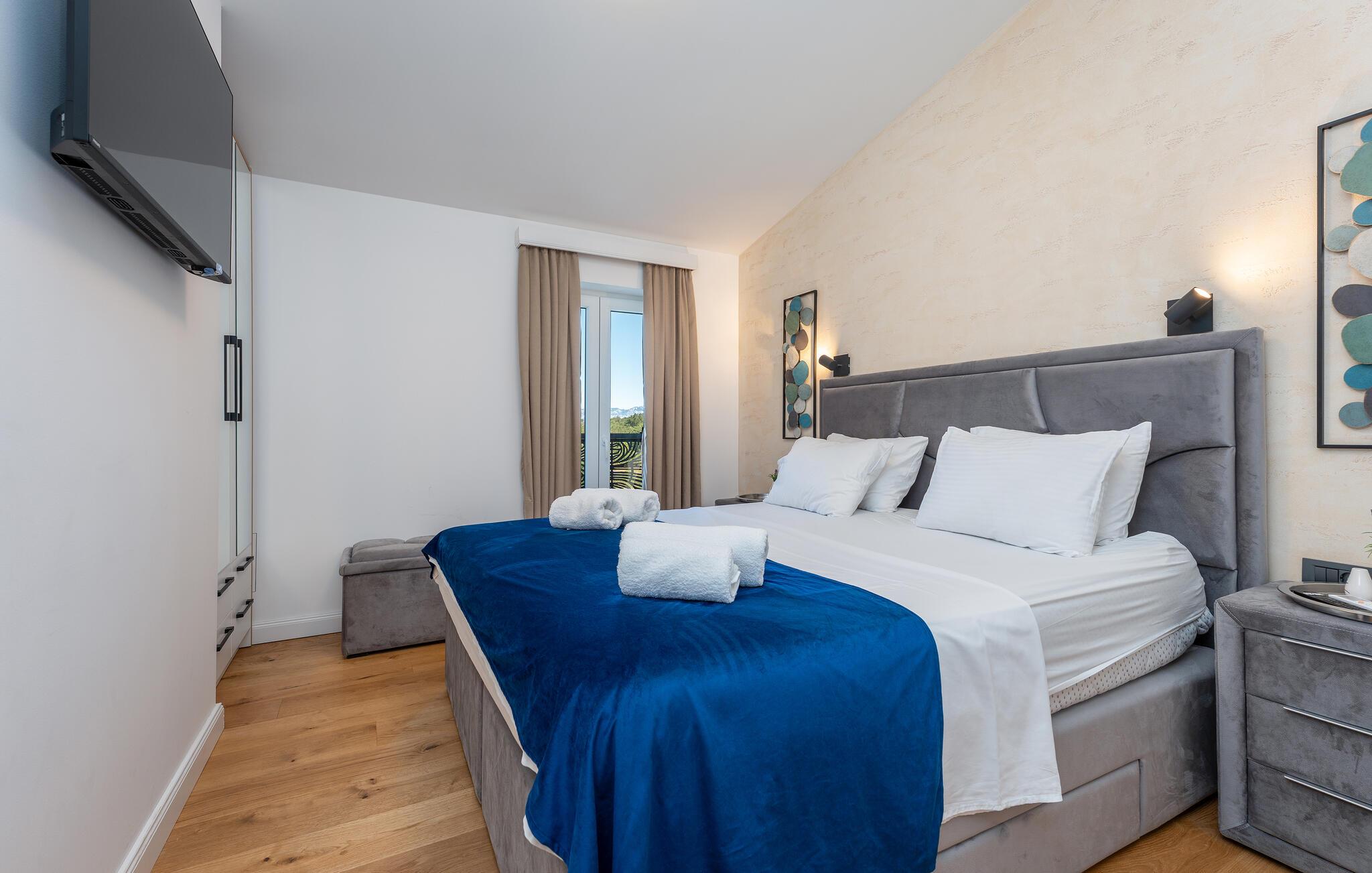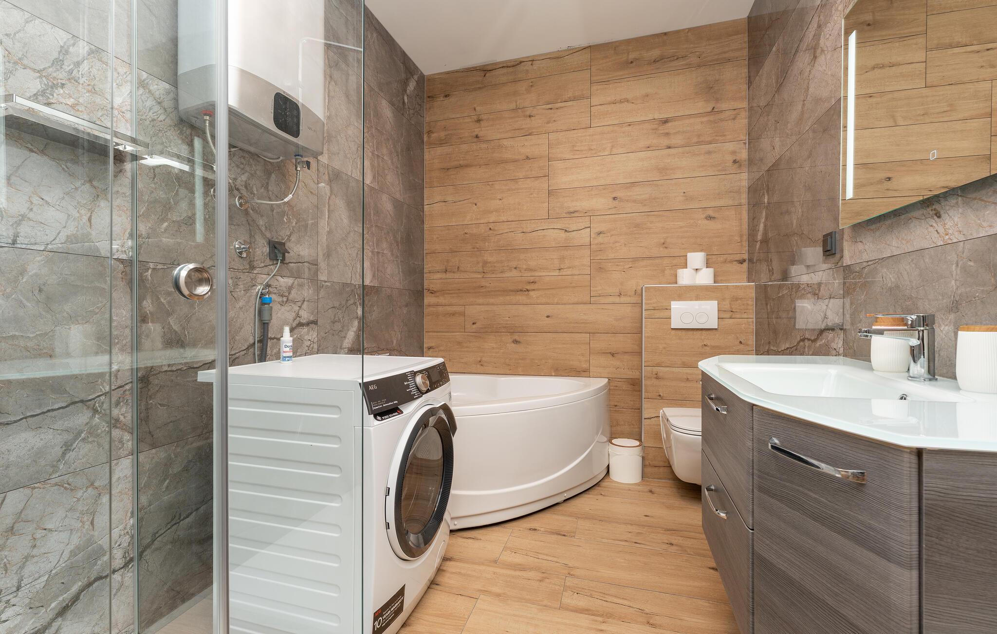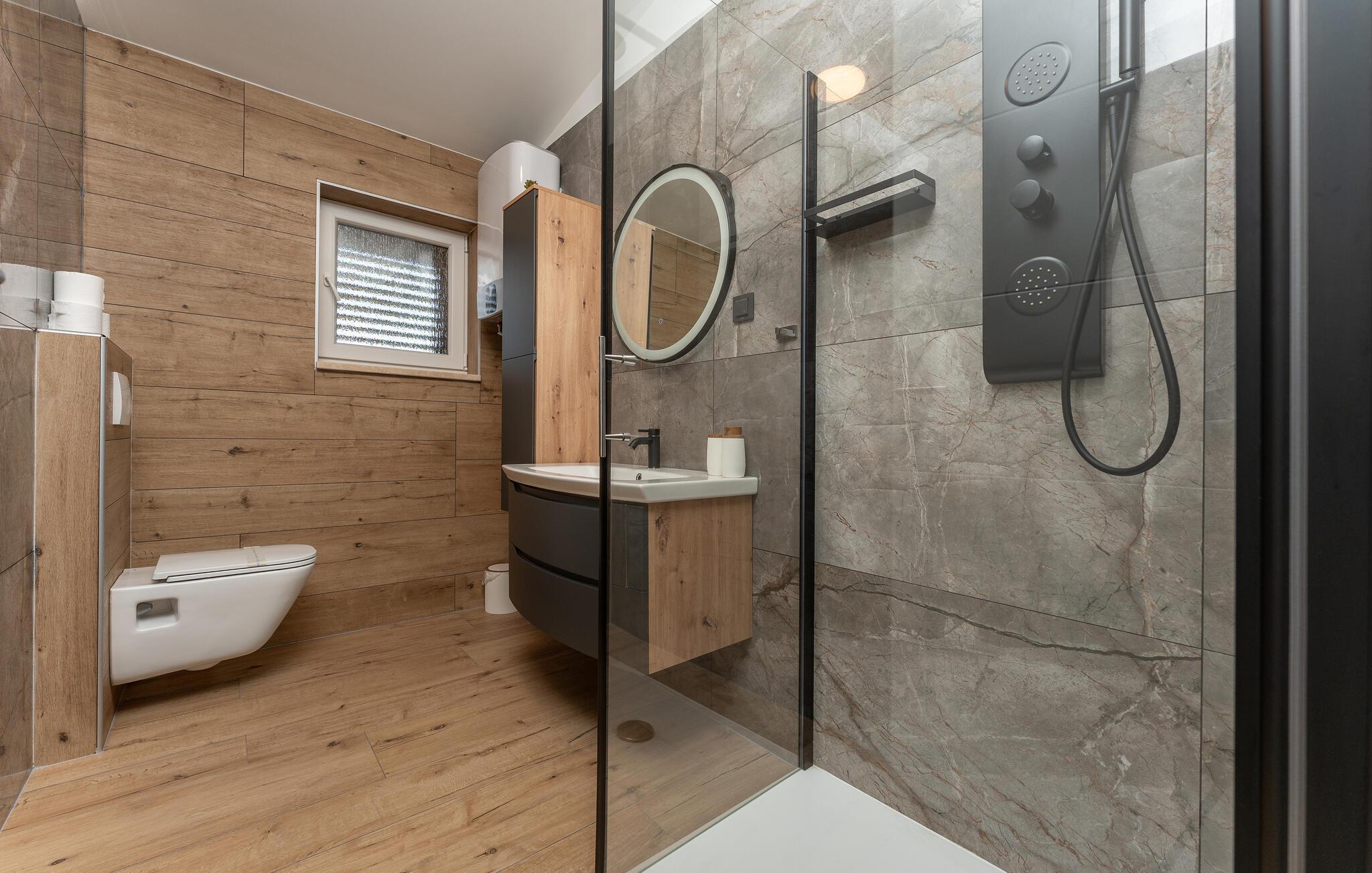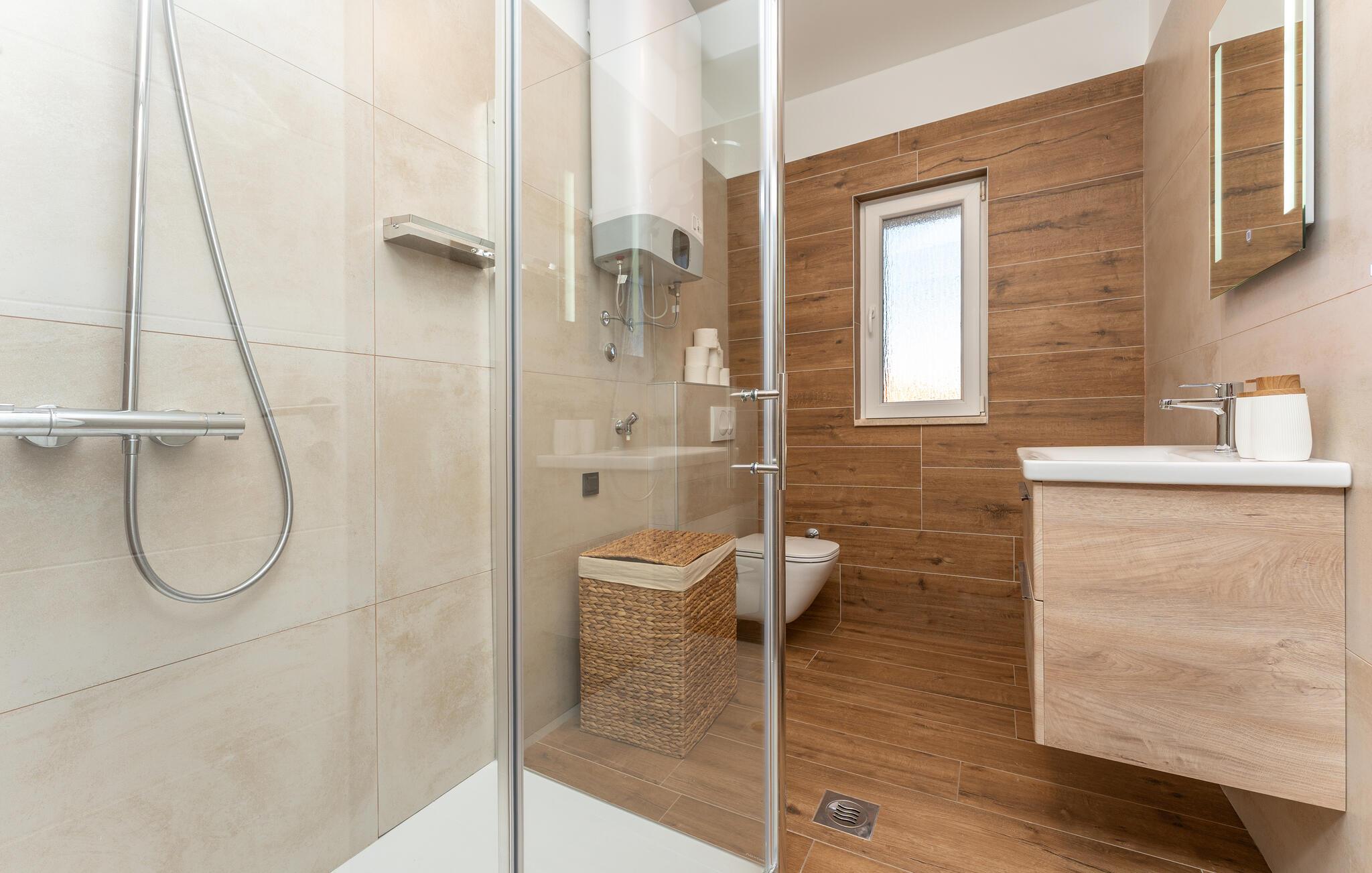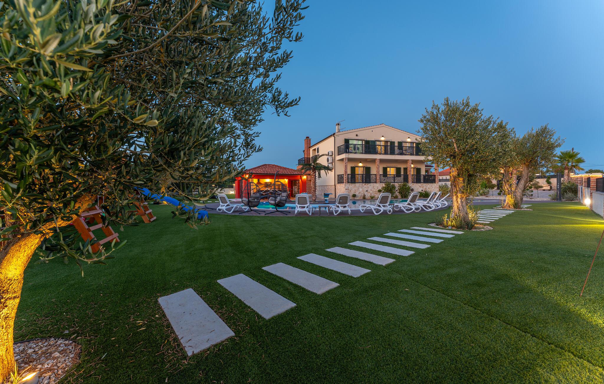 Oplev uforglemmelige ferier i dette stilfulde feriehus med pool nær havet. Dette elegant møblerede hus imponerer med et livligt farveskema, lyse værelser og en smuk træfinish. Hyg jer sammen i den indbydende sofagruppe, nyd afslappende timer med musik, eller tilbring en hyggelig filmaften sammen. Hvis I leder efter motion, kan I opbygge jeres udholdenhed og styrke i fitnessrummet. Start dagen med et par baner i den store pool eller en omgang vandpolo. Lad eftermiddagen passere i fred på en liggestol eller med en god bog, mens jeres børn morer sig på legeplads udenfor. Om aftenen kan I samles under den overdækkede terrasse til et lækkert måltid og nyde et glas fin kroatisk vin. Tag en tur til en af regionens smukke strande, hvor I kan nyde sol, hav og ren afslapning. Oplev de rolige omgivelser i Visocane på gåture eller cykelture gennem det dalmatiske landskab. Udforsk den historiske by Zadar med dens romerske monumenter, det unikke havorgel og den livlige atmosfære i den gamle bydel. Afslut dagen på en afslappet måde med en hyggelig middag og regionale specialiteter.
