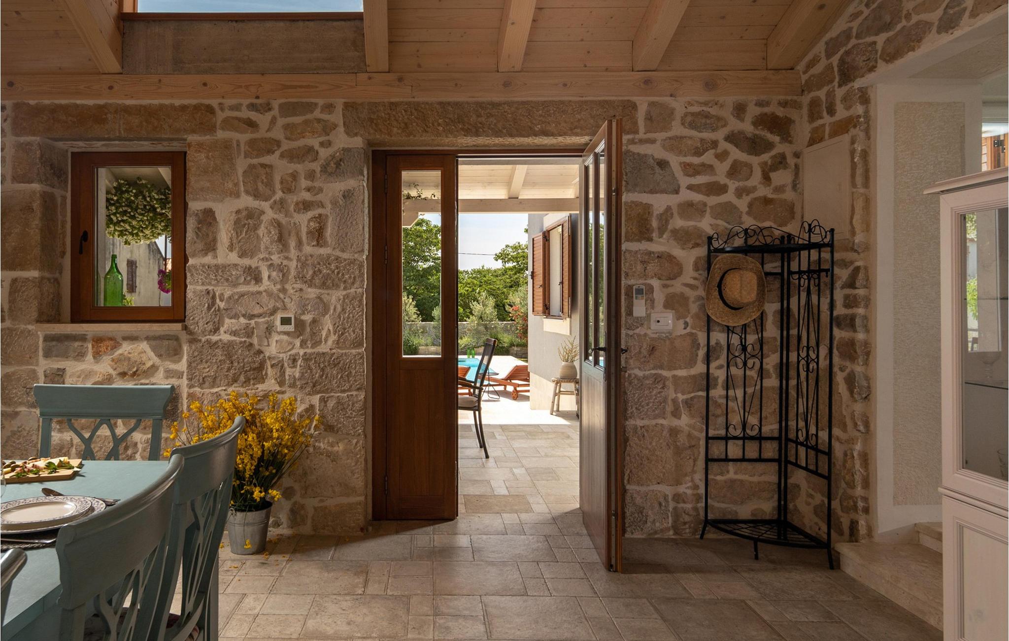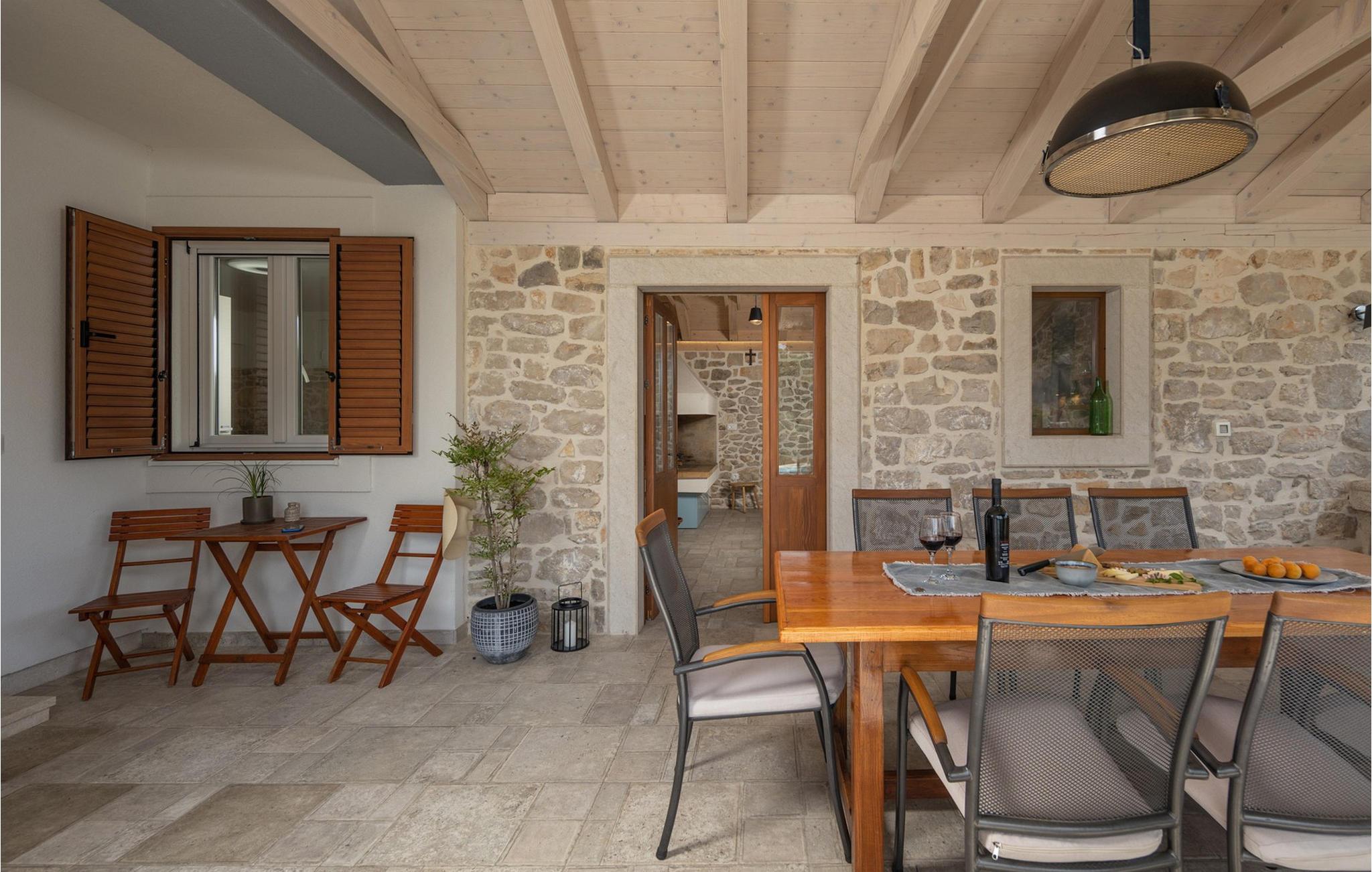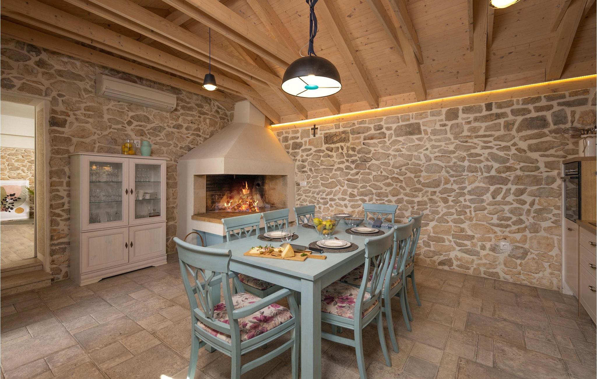 Den rummelige og luksuriøst indrettede stenvilla Bandela er det ideelle sted at slappe af og forynge krop og sjæl, da den tilbyder rigelig plads til at nyde den eventyrlige atmosfære med en stor familie eller en gruppe venner. Glæd jer til harmoniske måltider ved det indbydende spisebord, sjove spilleaftener med venner, snak i den hyggelige stue med et glas vin ved pejsen eller streaming af en god film, som alle vil nyde.