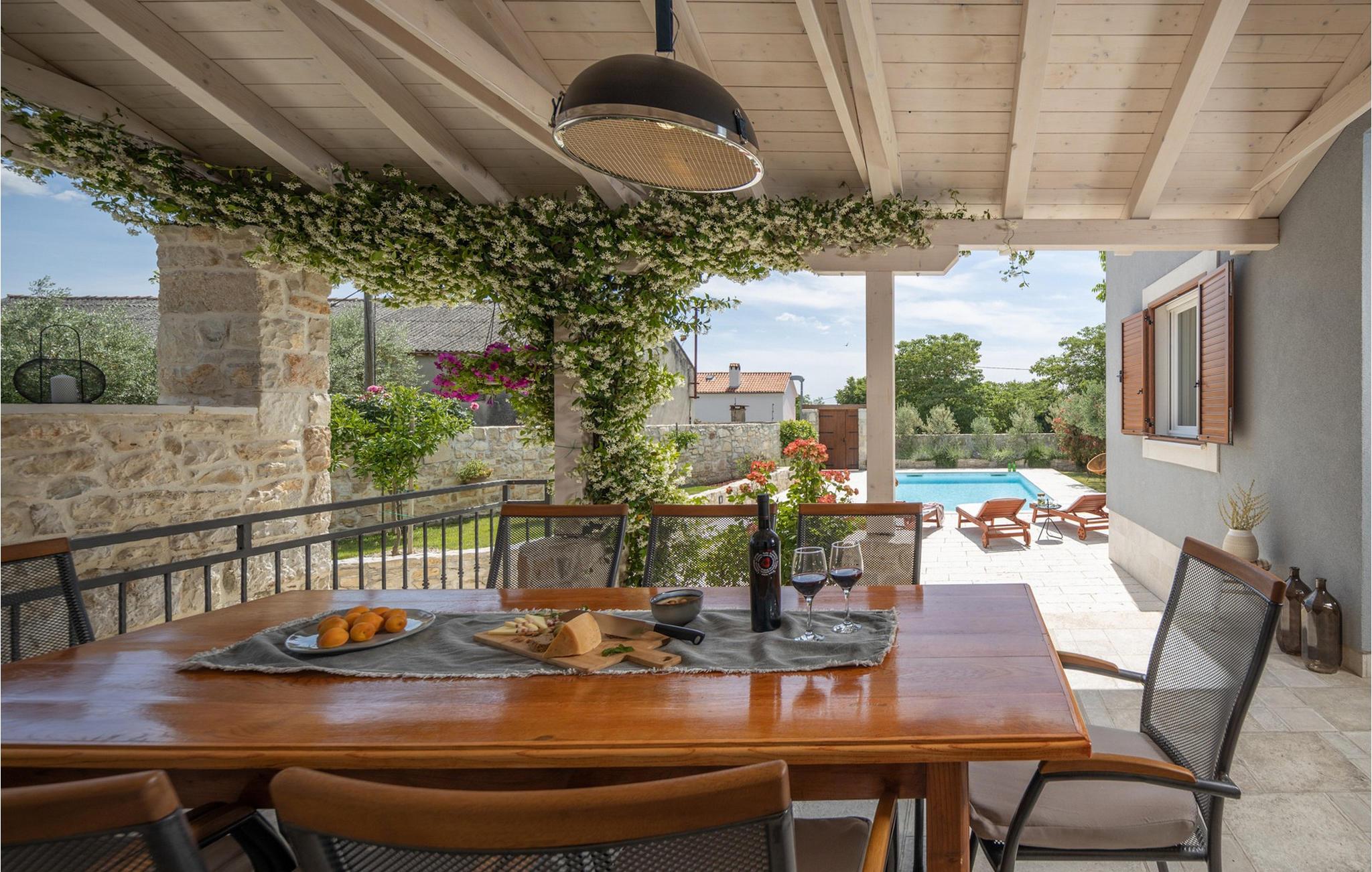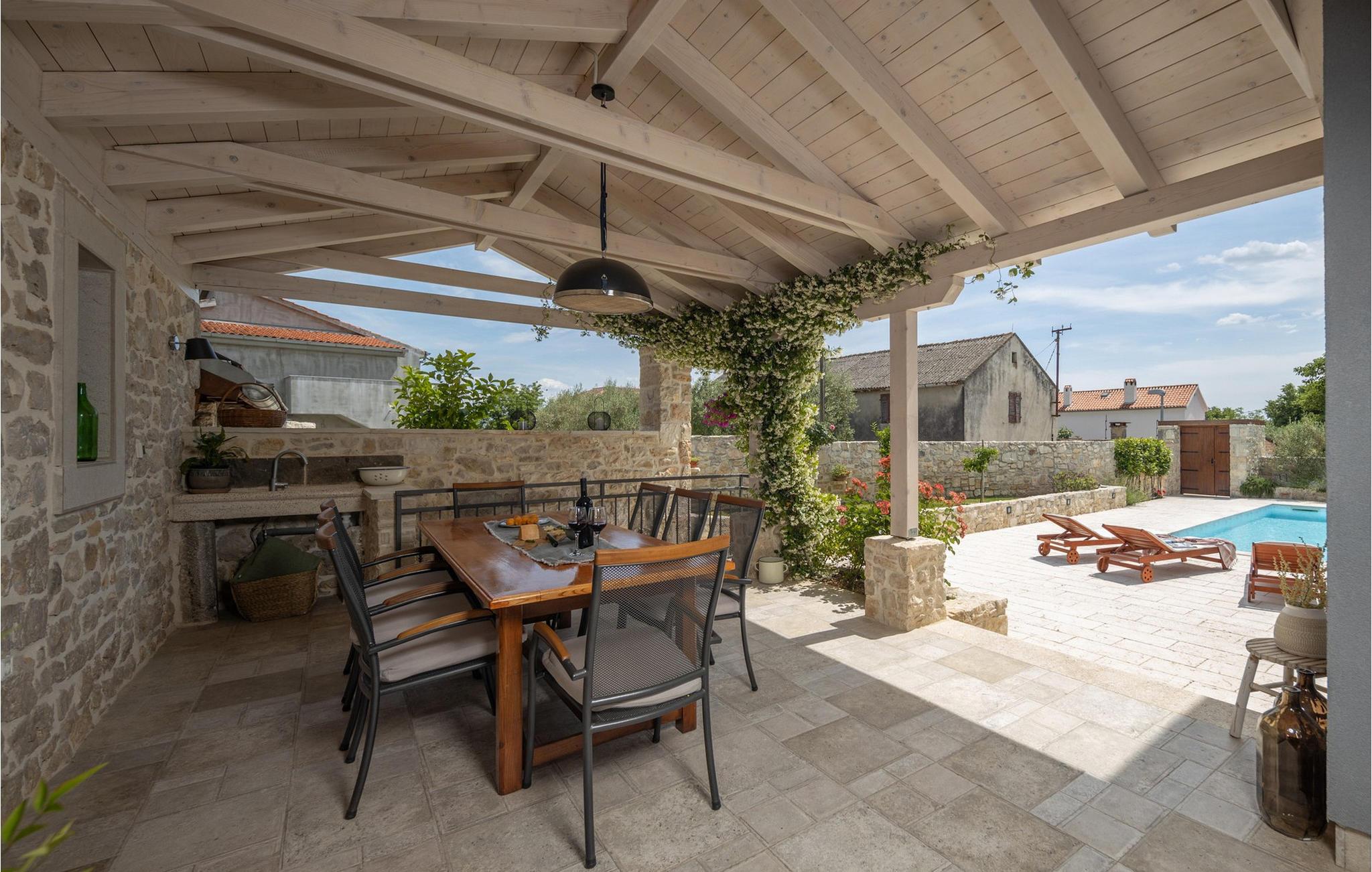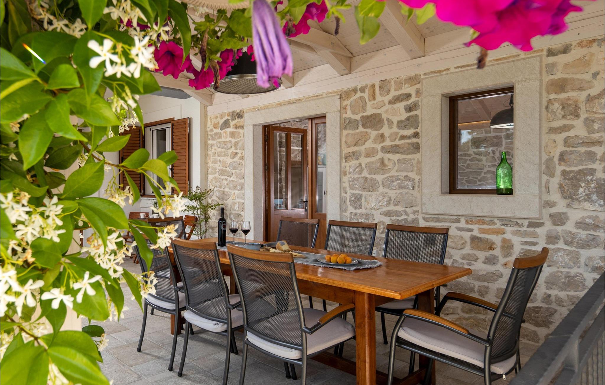 Den rummelige og luksuriøst indrettede stenvilla Bandela er det ideelle sted at slappe af og forynge krop og sjæl, da den tilbyder rigelig plads til at nyde den eventyrlige atmosfære med en stor familie eller en gruppe venner. Glæd jer til harmoniske måltider ved det indbydende spisebord, sjove spilleaftener med venner, snak i den hyggelige stue med et glas vin ved pejsen eller streaming af en god film, som alle vil nyde.